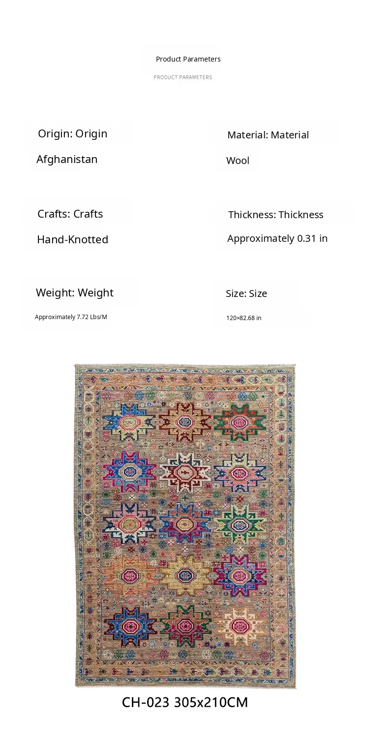 Exquisite Afghan Imported Handwoven Carpet - Premium Quality, Eco-Friendly, Formaldehyde-Free, Ideal for American Living Rooms