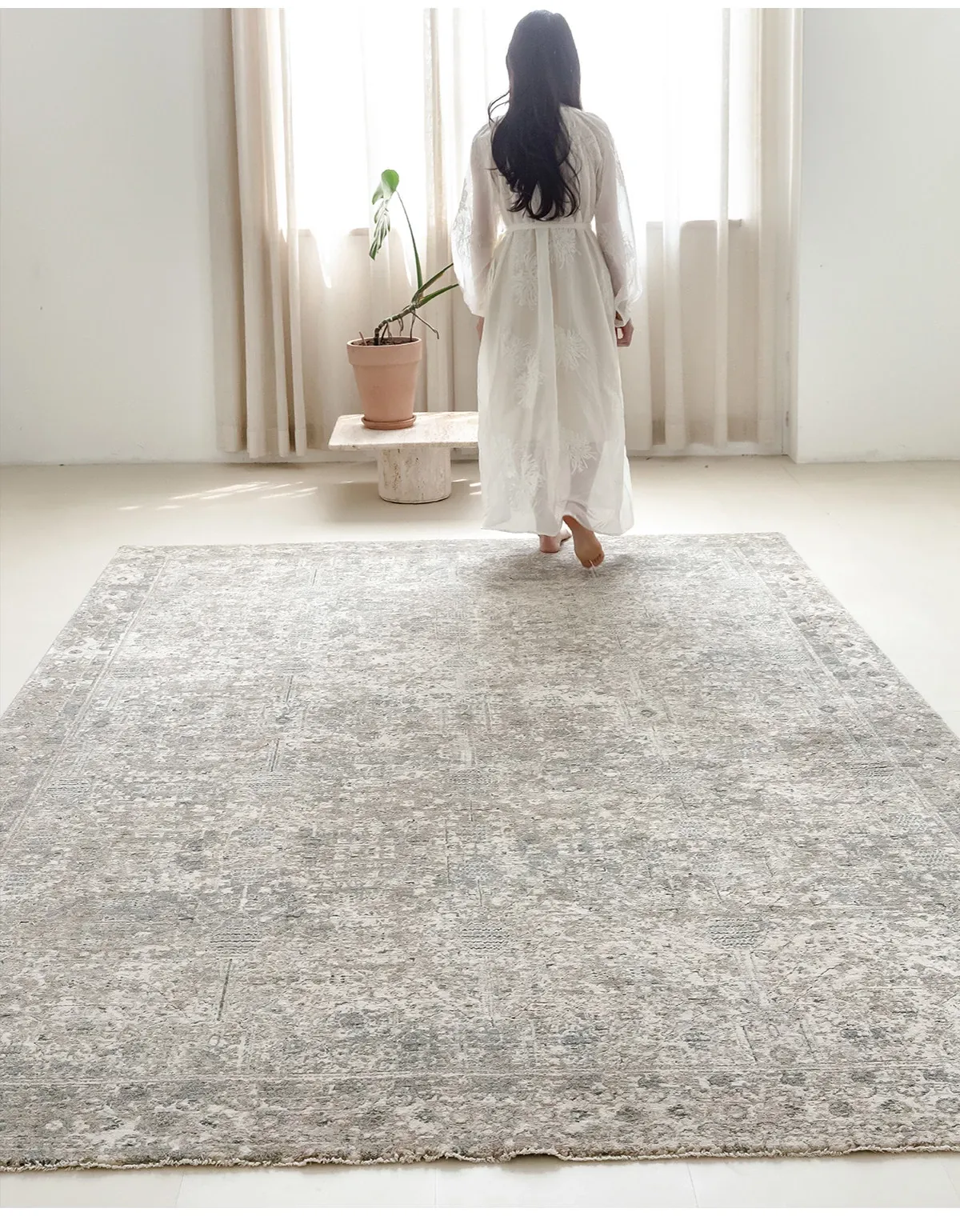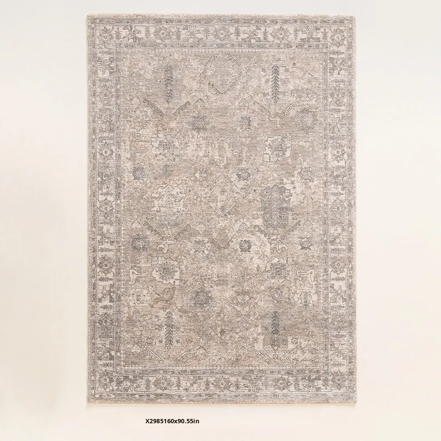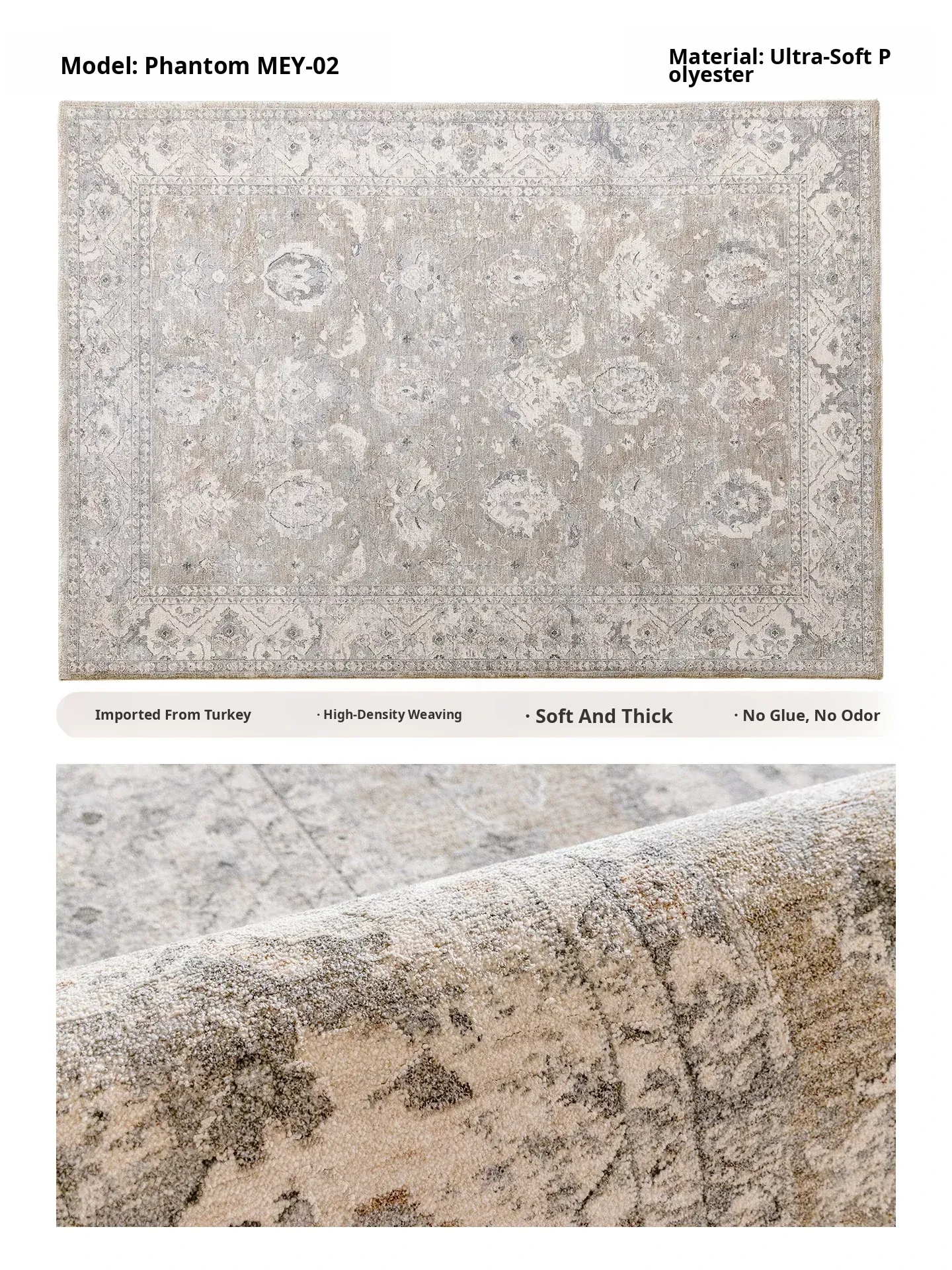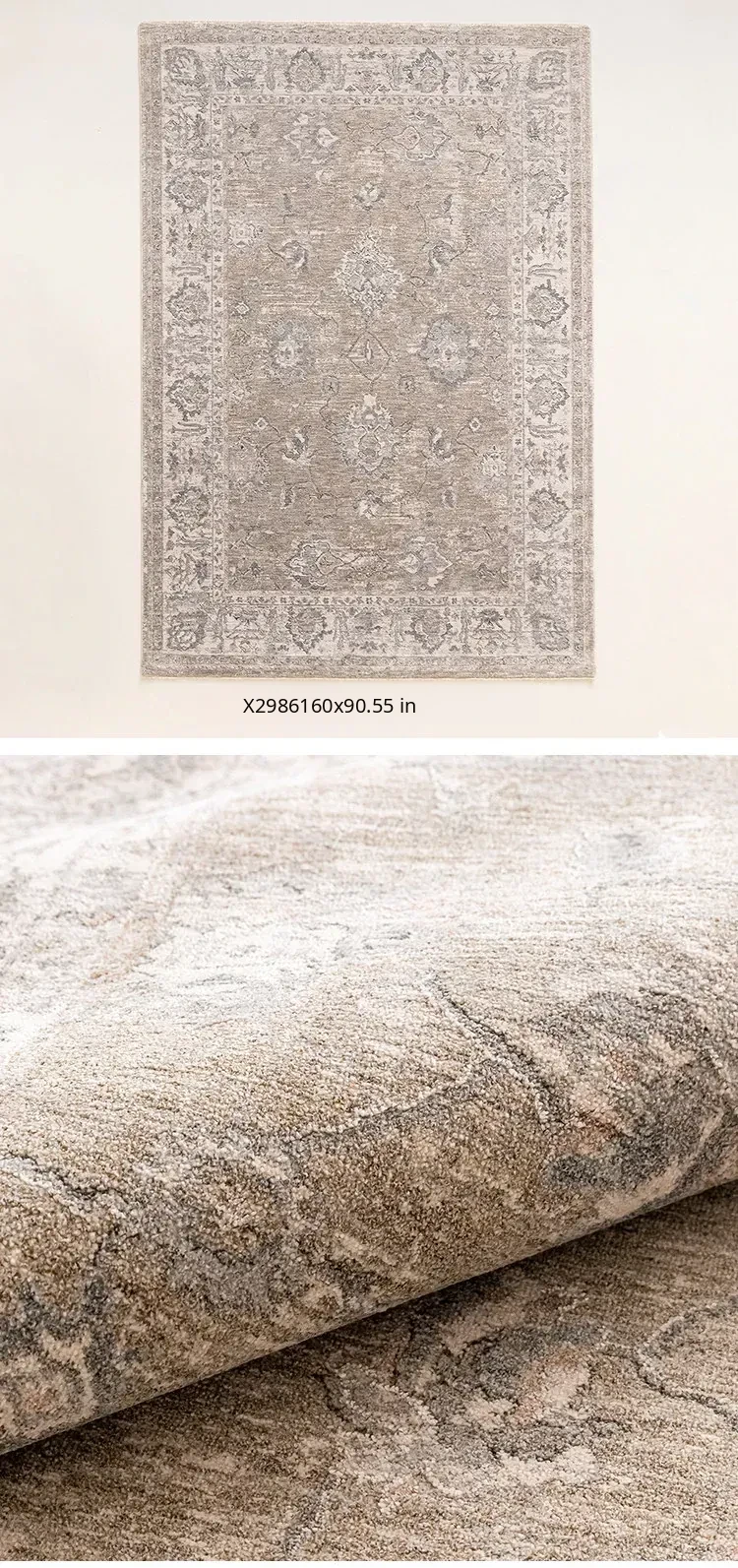Exquisite Vintage Blue French Rug - Handwoven Turkish Design for Living Room, Embracing American Persian Retro Style Without Glue