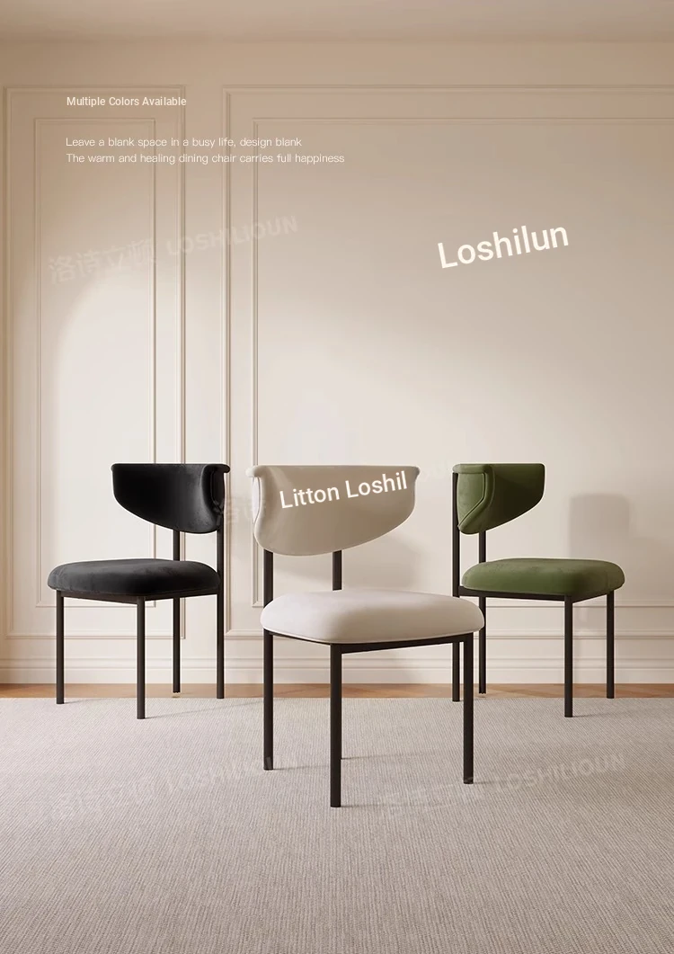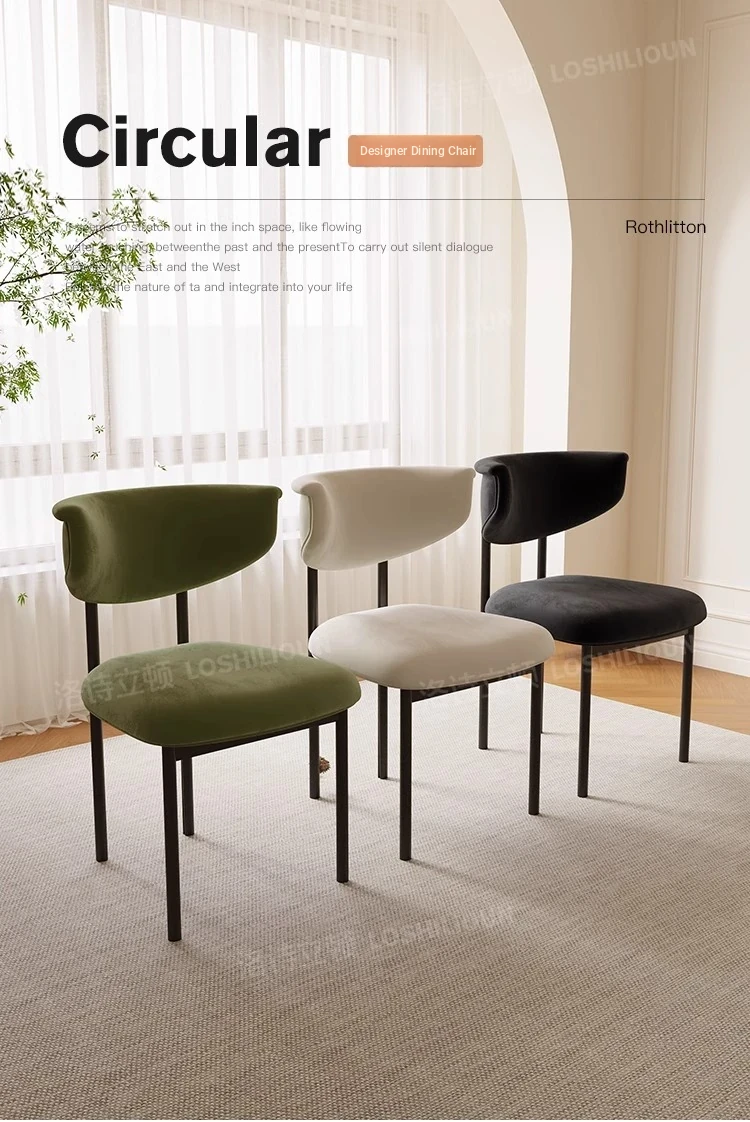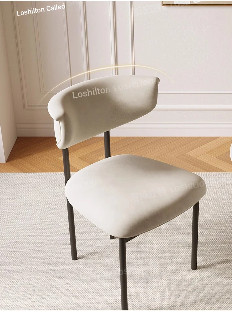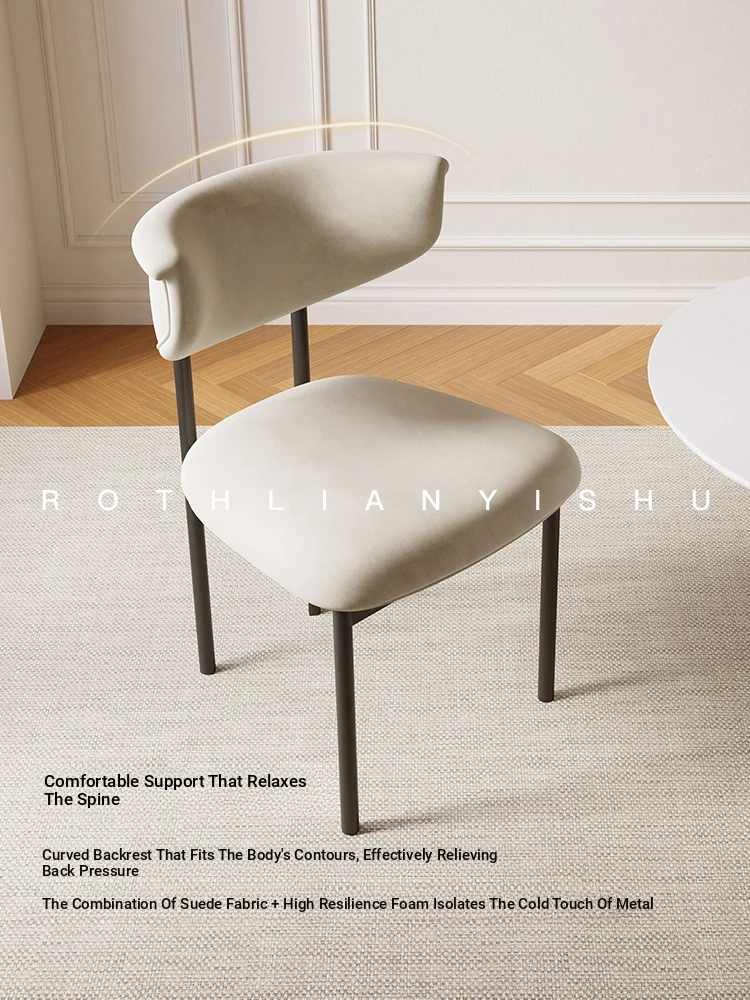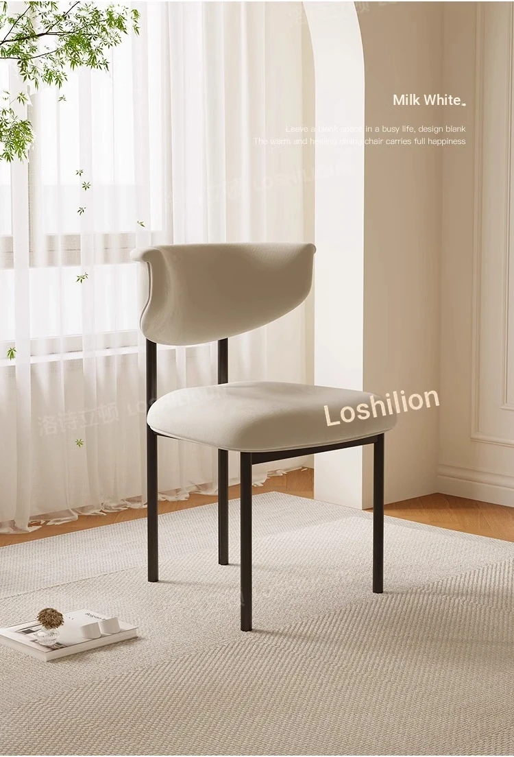 French Cream Dining Chair - Modern Minimalist Design for Home, Luxury Dining Room, Italian Inspired Makeup Stool with Backrest, Perfect for Elegant Spaces.