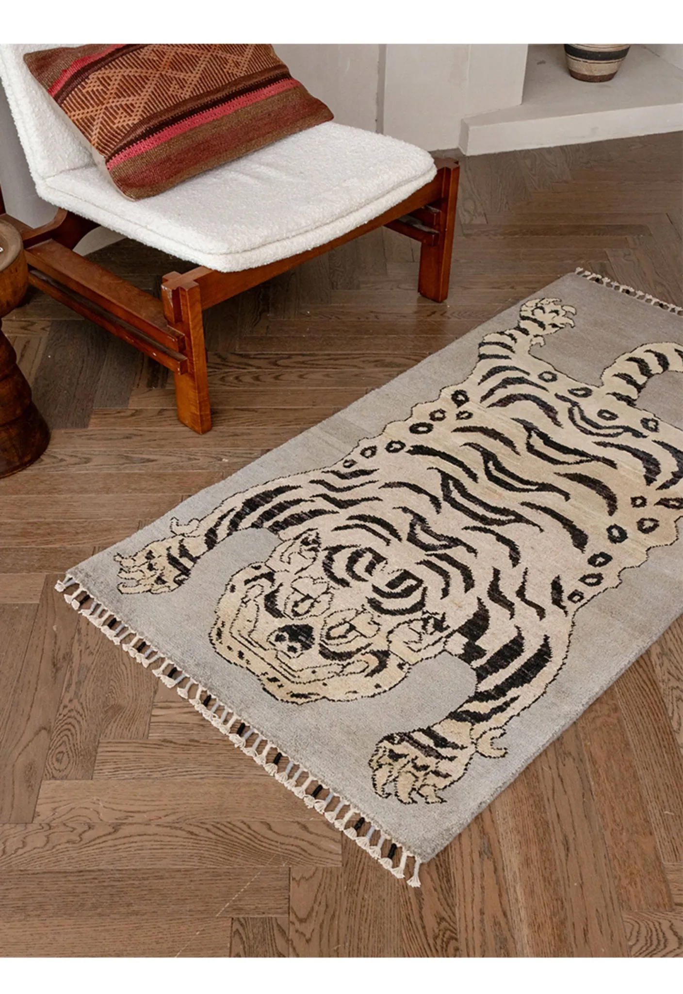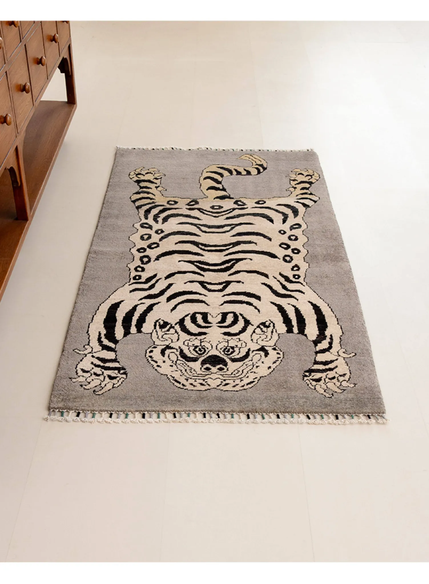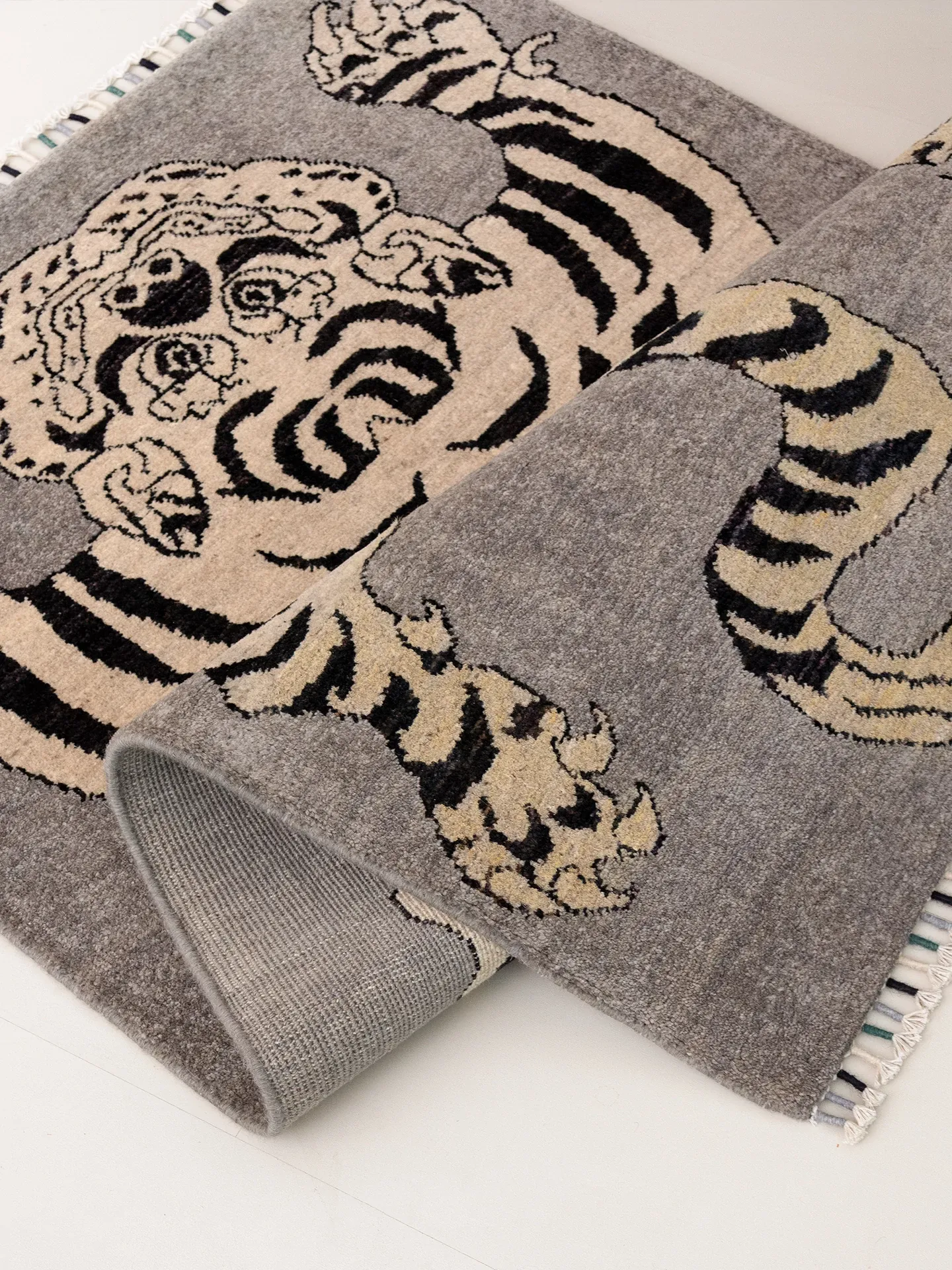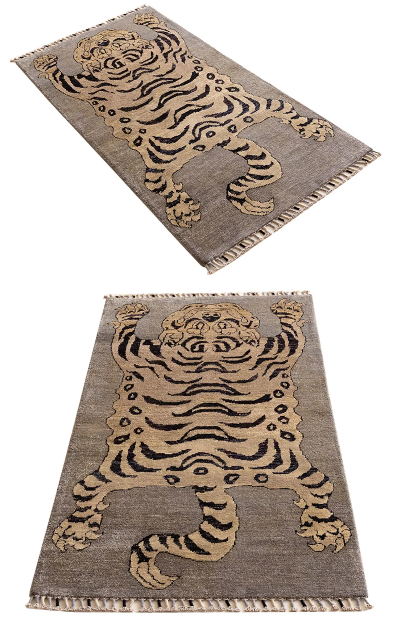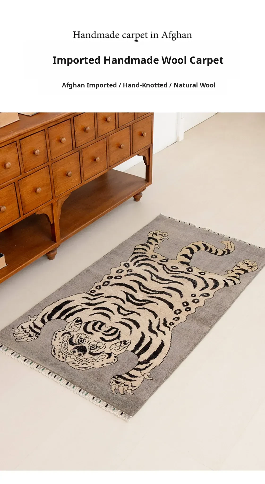 Handcrafted Afghan Gray Wool Carpet - Ethnic Style Tapestry for Living Room and Hallway with Majestic Tiger Design - Add a Touch of Artistry to Your Home Décor!