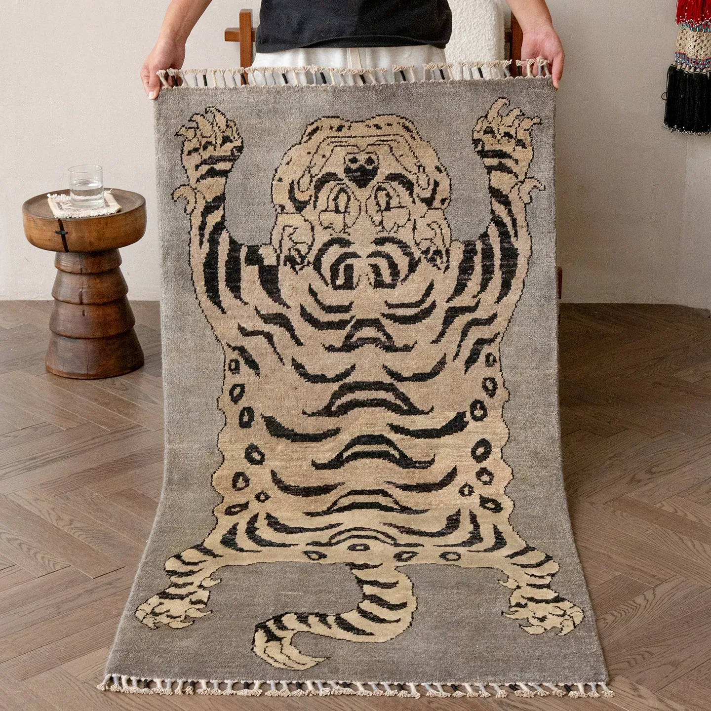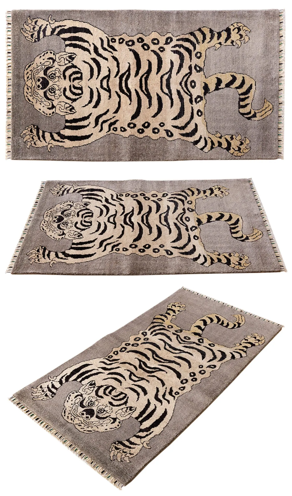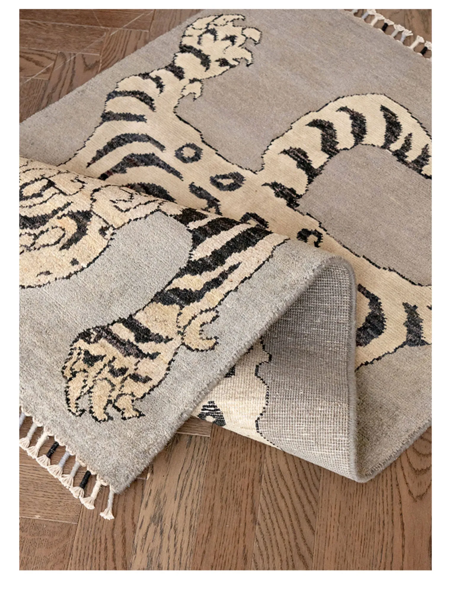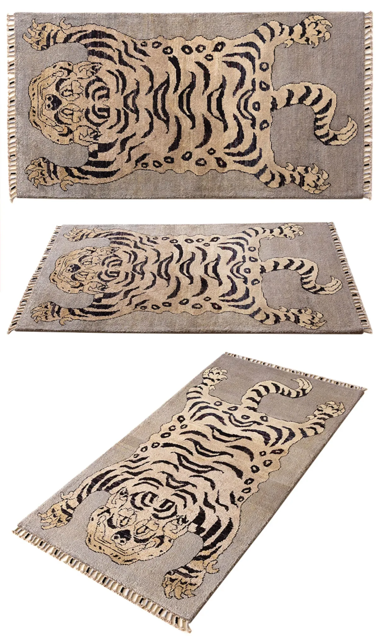 Handcrafted Afghan Gray Wool Carpet - Ethnic Style Tapestry for Living Room and Hallway with Majestic Tiger Design - Add a Touch of Artistry to Your Home Décor!