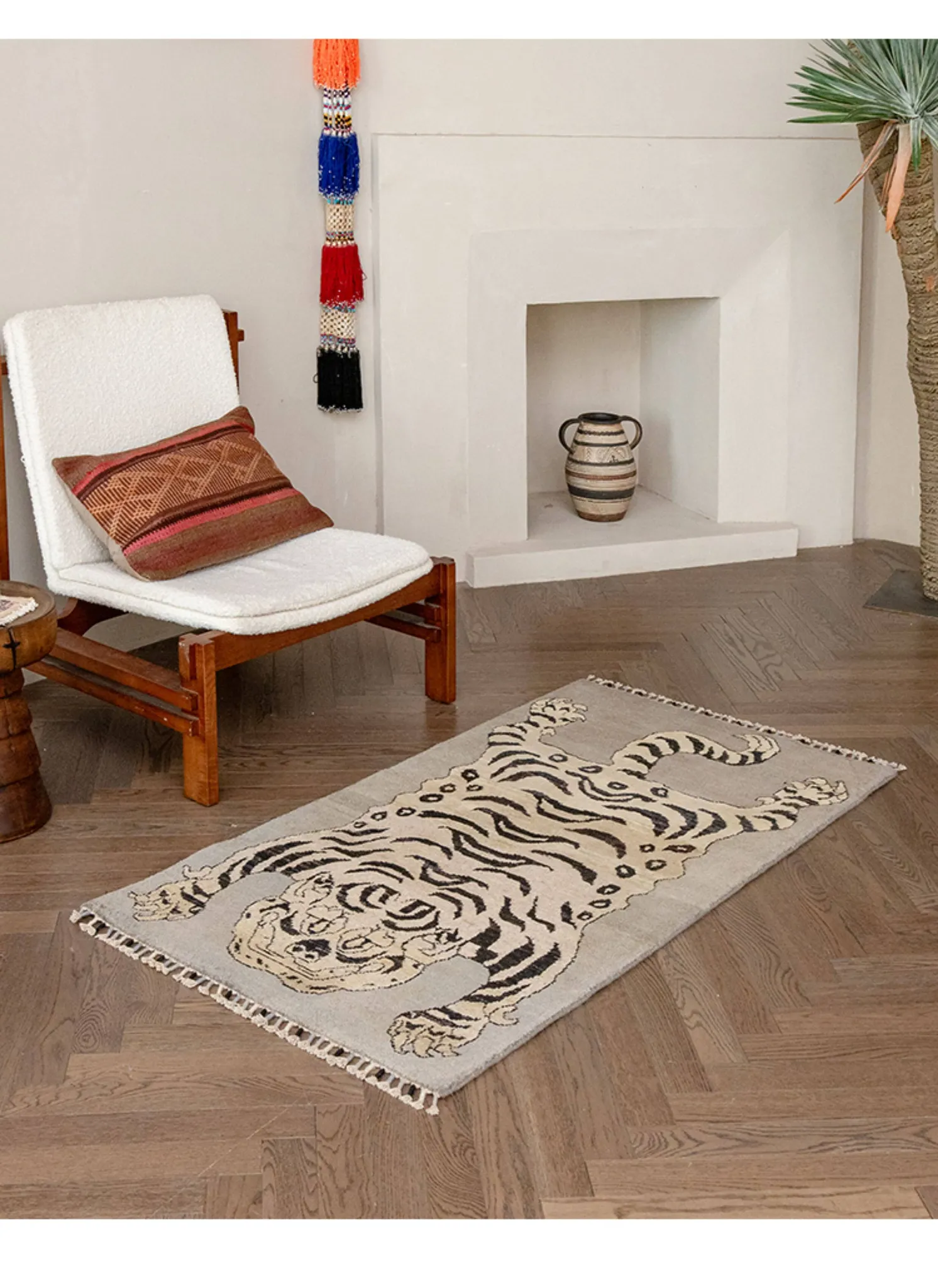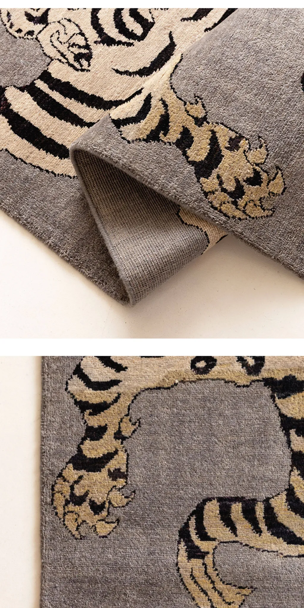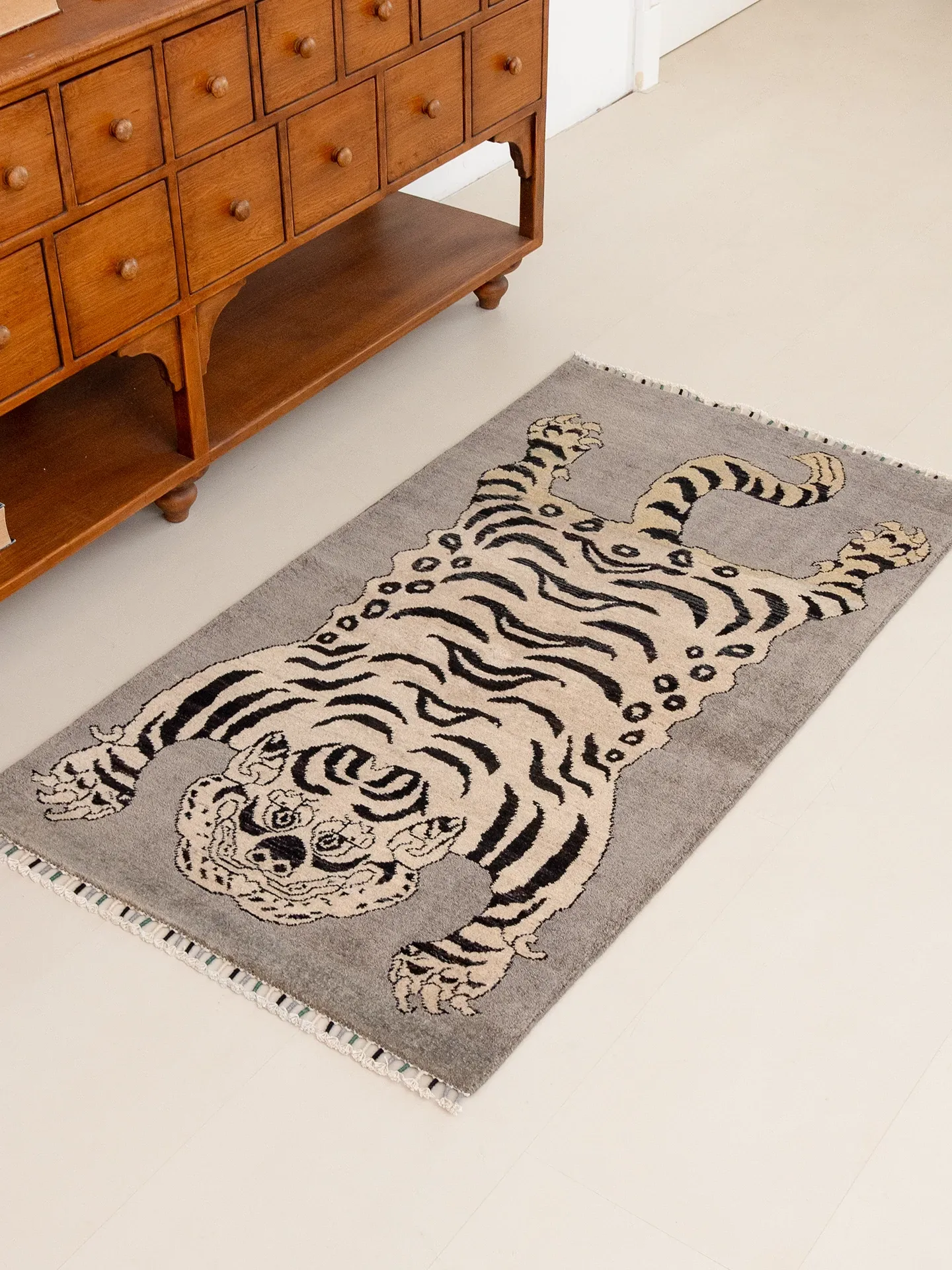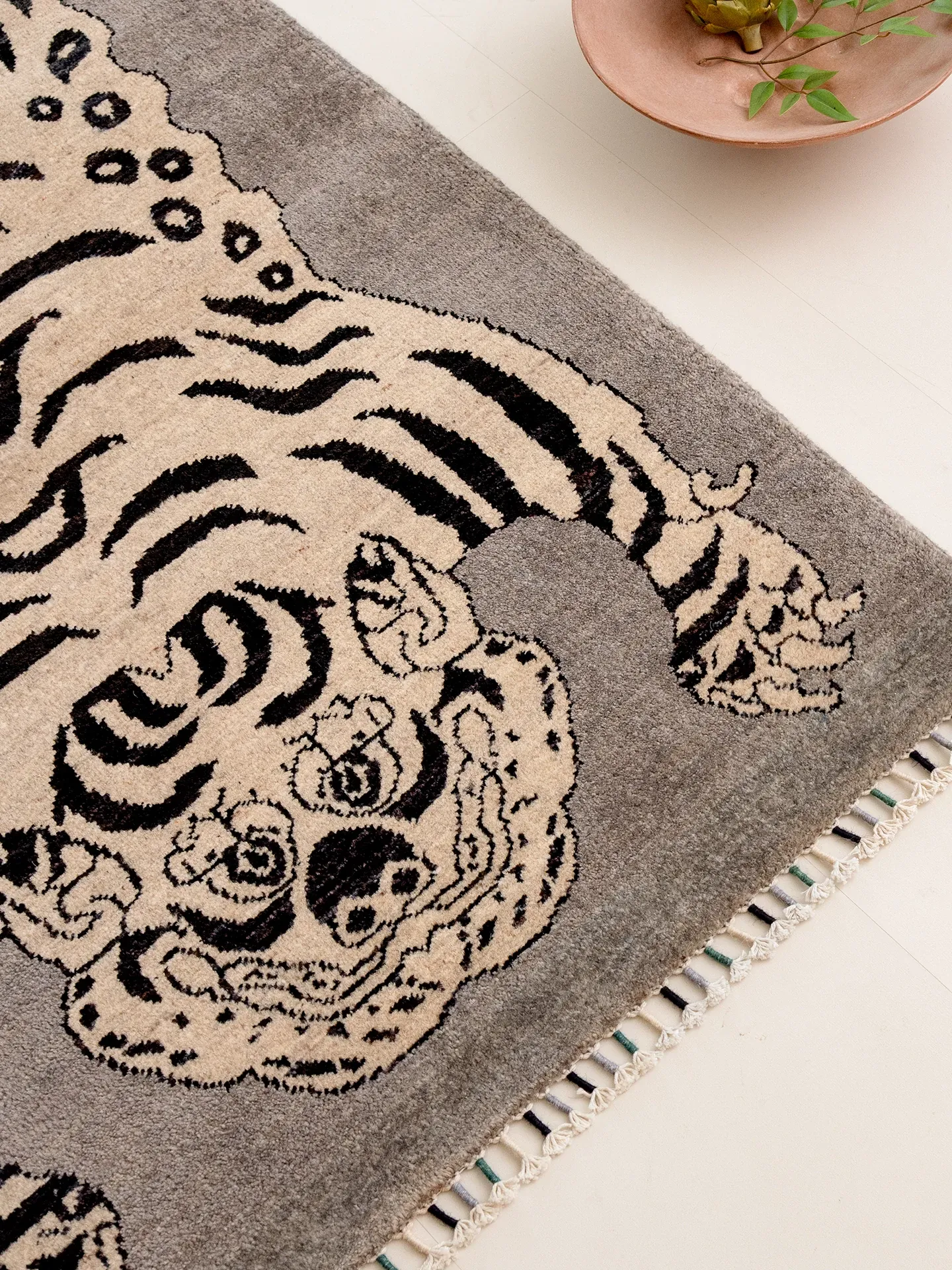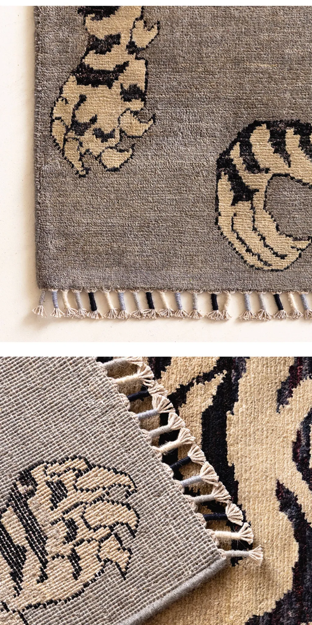 Handcrafted Afghan Gray Wool Carpet - Ethnic Style Tapestry for Living Room and Hallway with Majestic Tiger Design - Add a Touch of Artistry to Your Home Décor!