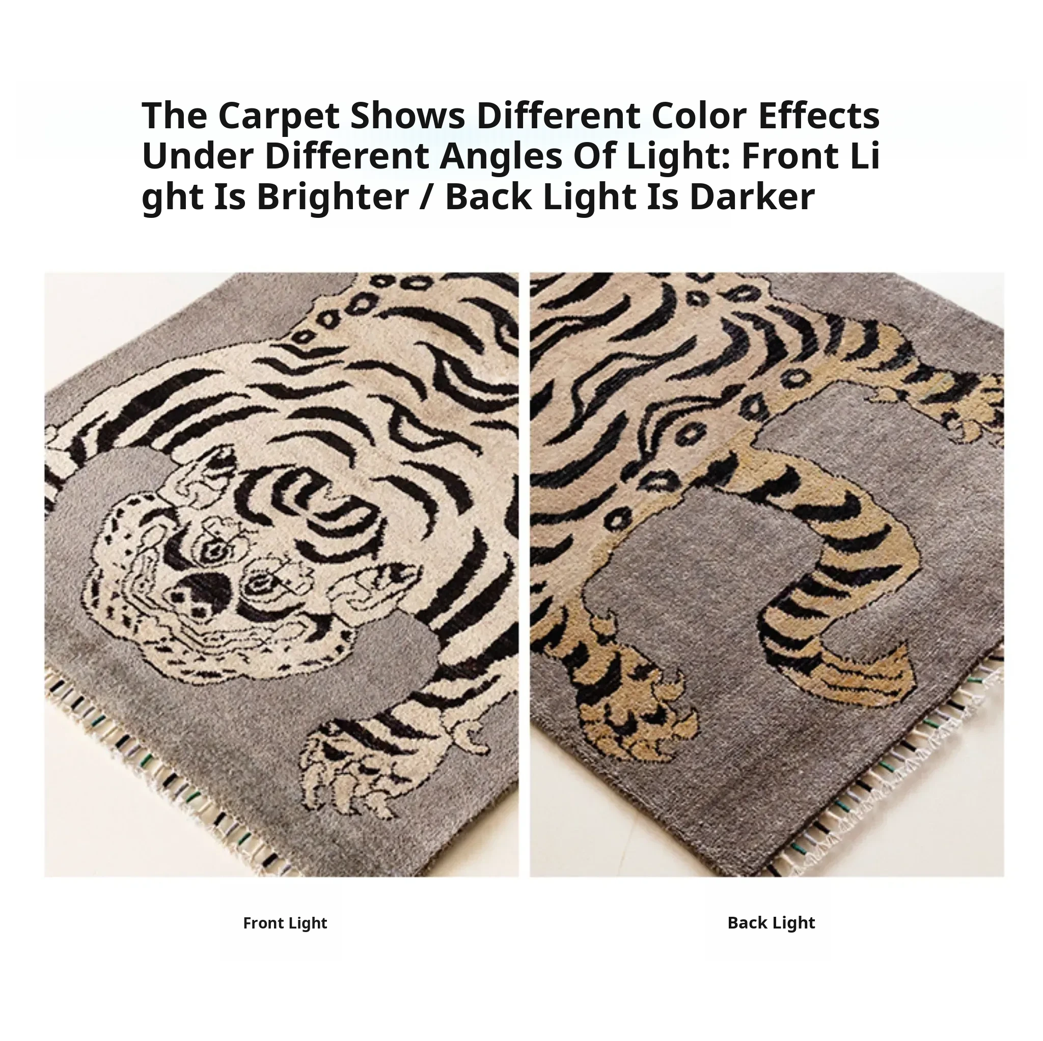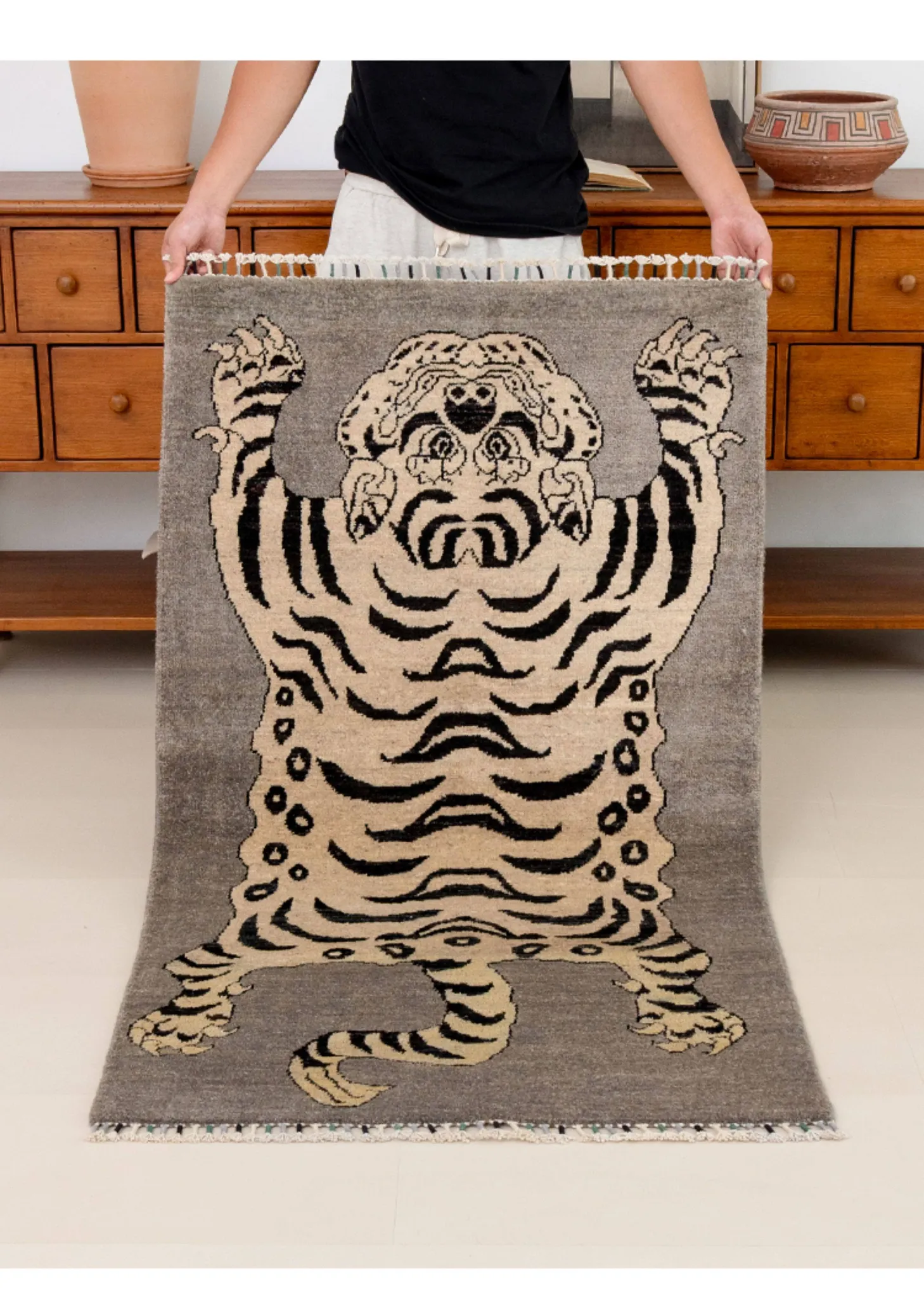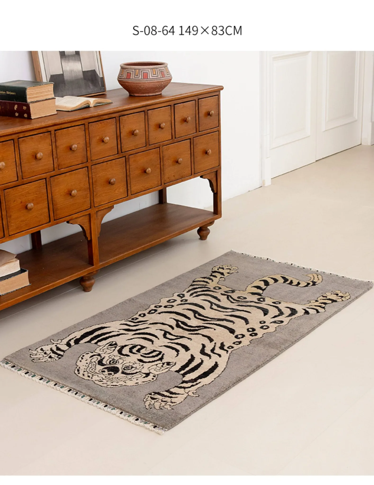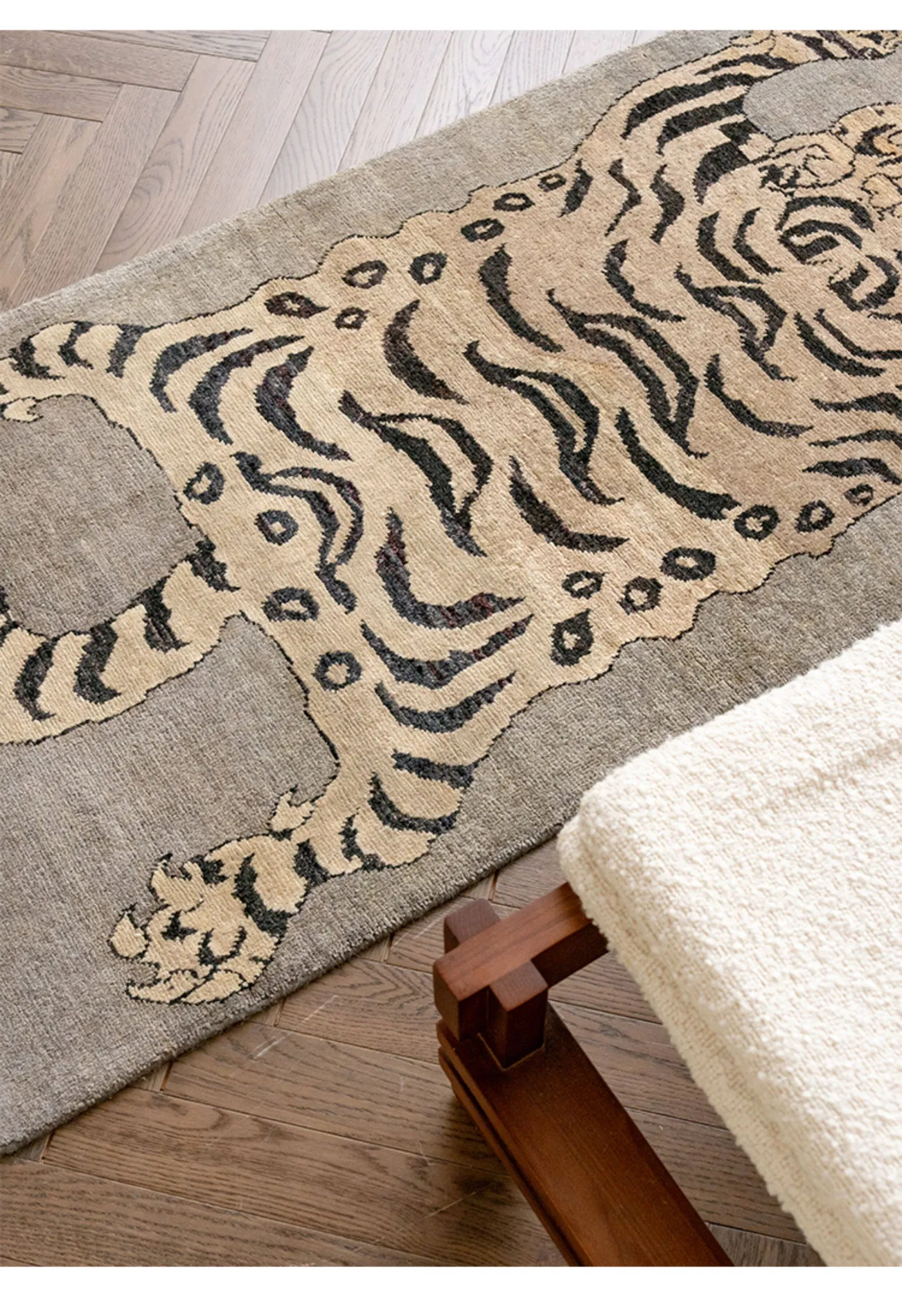 Handcrafted Afghan Gray Wool Carpet - Ethnic Style Tapestry for Living Room and Hallway with Majestic Tiger Design - Add a Touch of Artistry to Your Home Décor!
