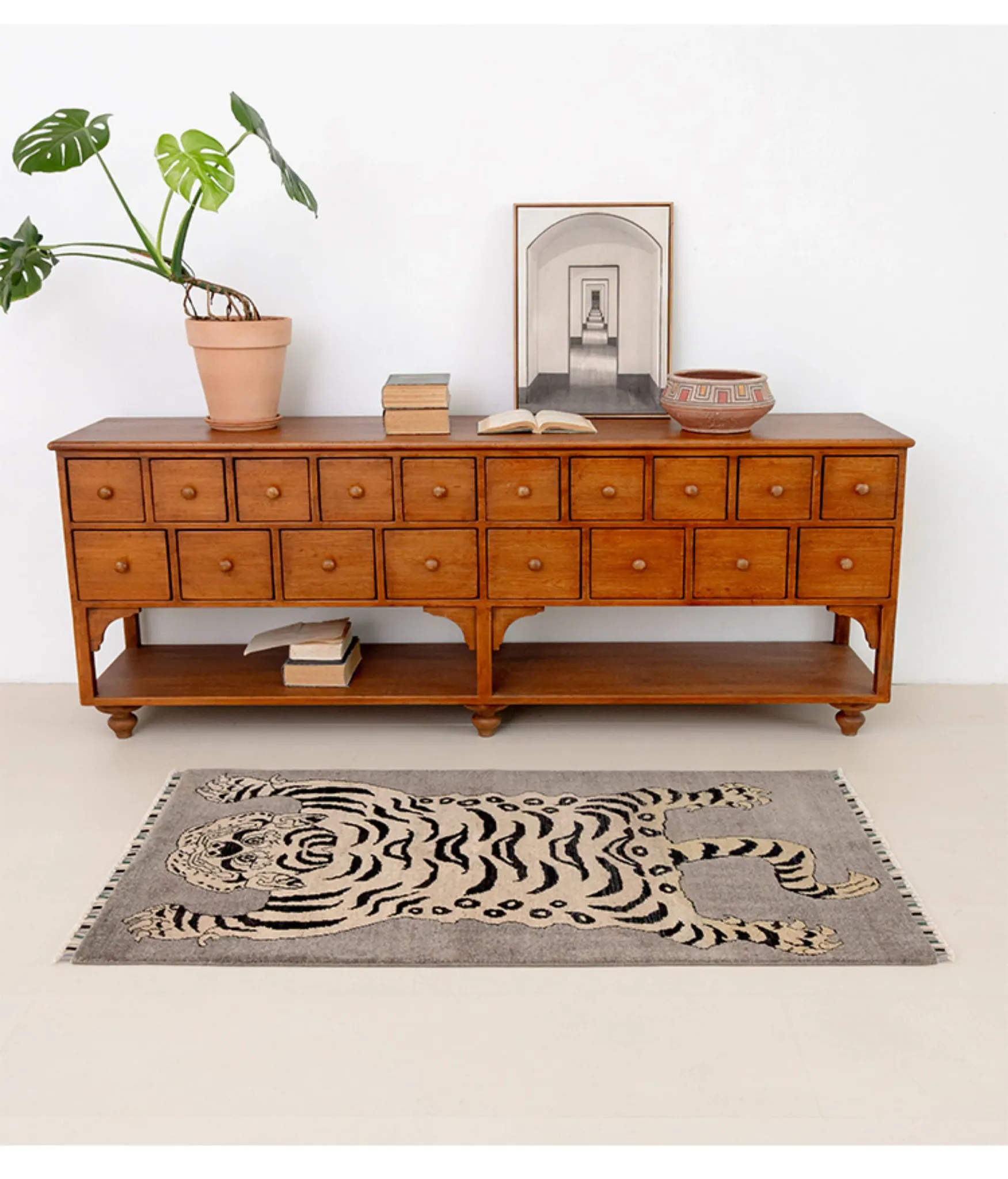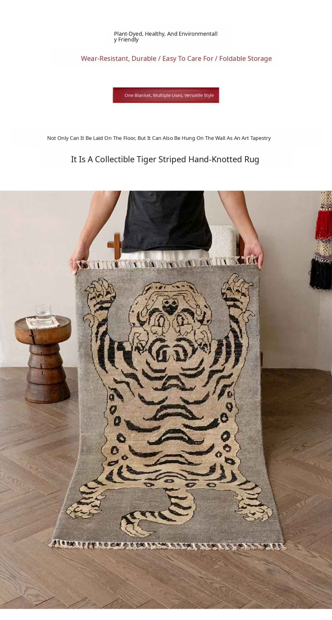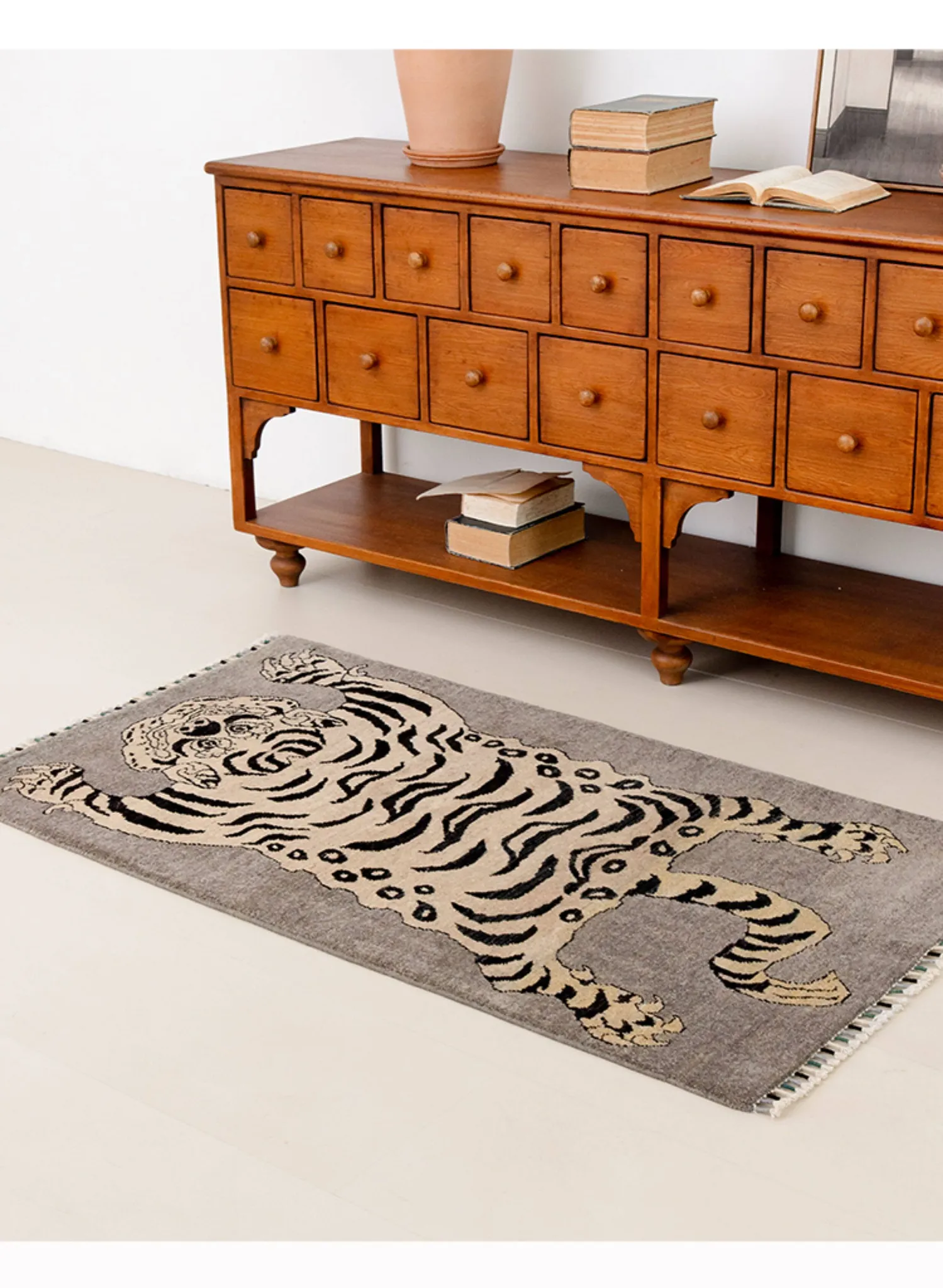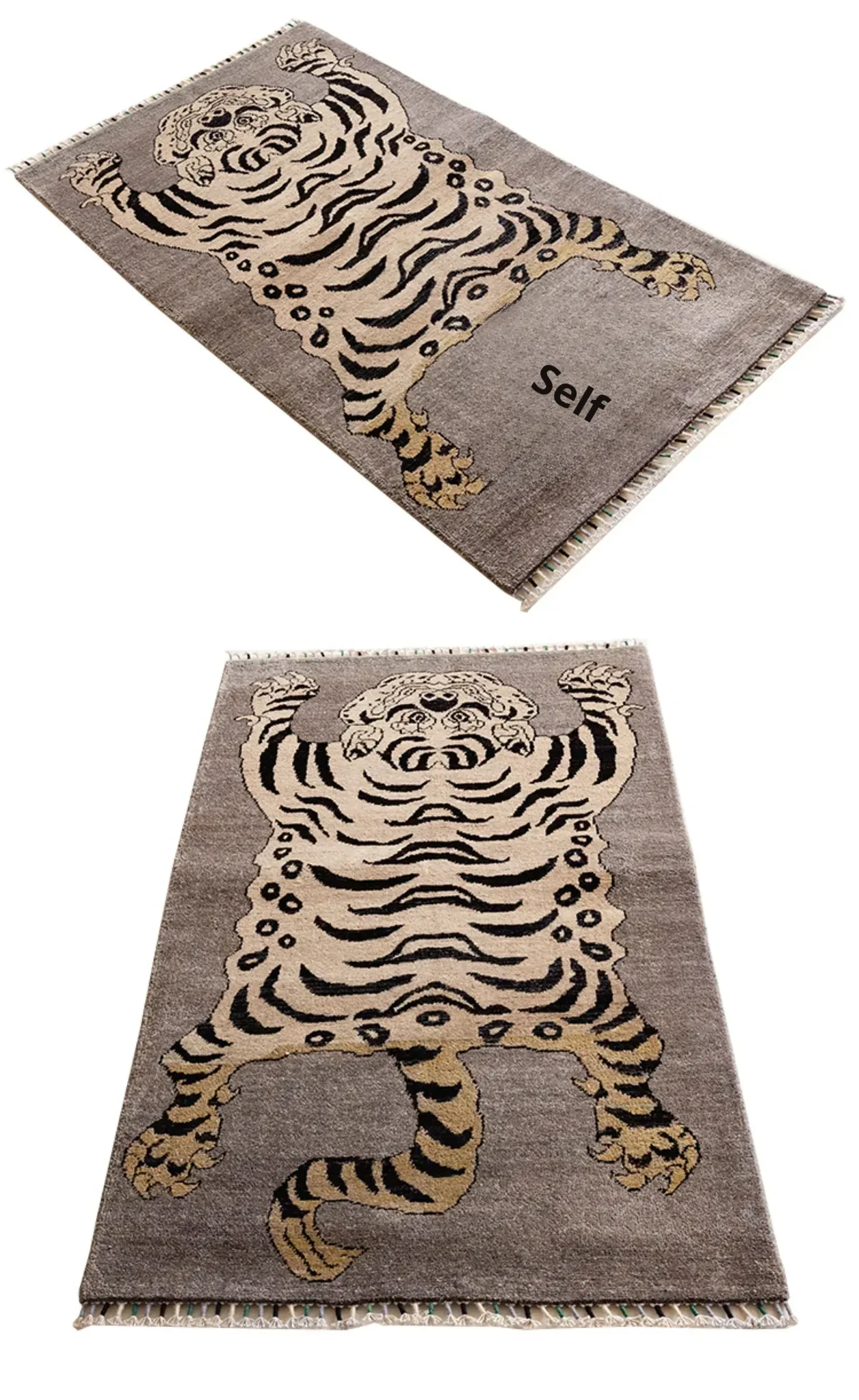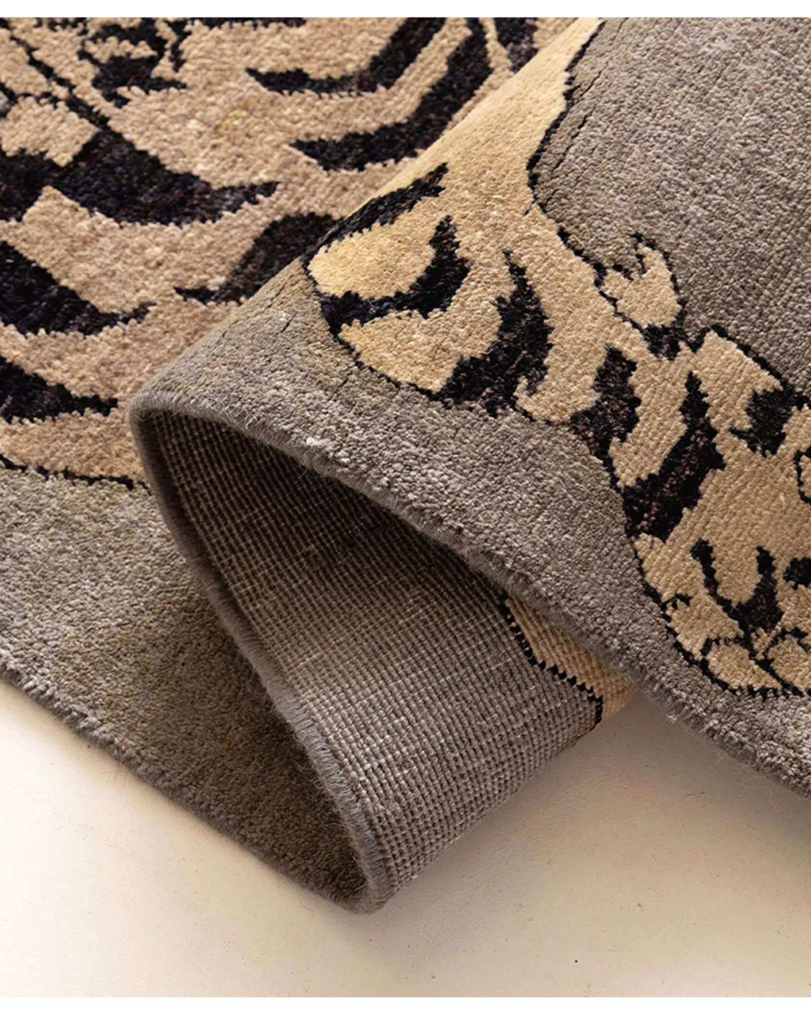 Handcrafted Afghan Gray Wool Carpet - Ethnic Style Tapestry for Living Room and Hallway with Majestic Tiger Design - Add a Touch of Artistry to Your Home Décor!