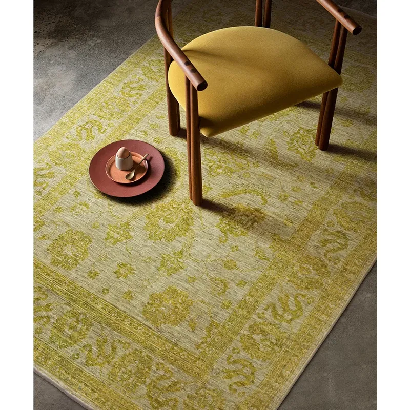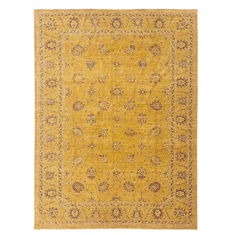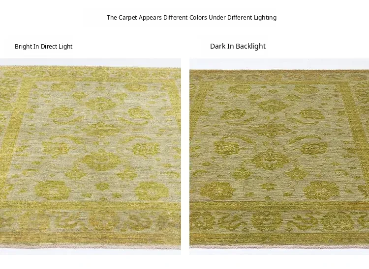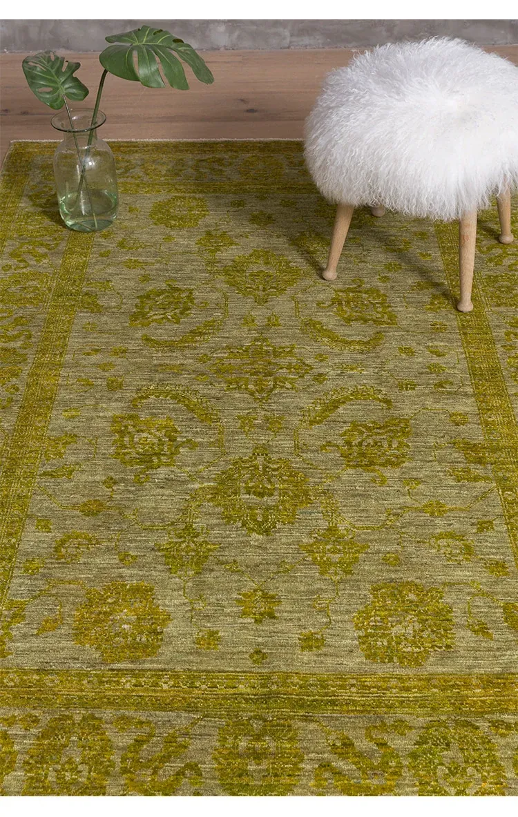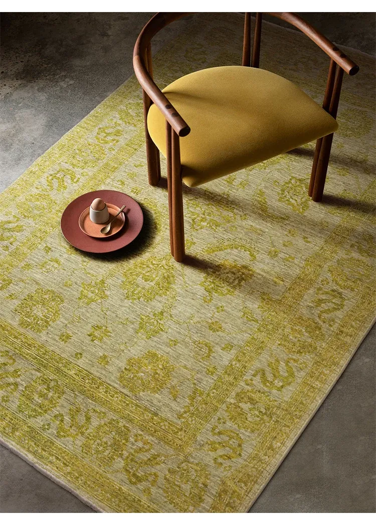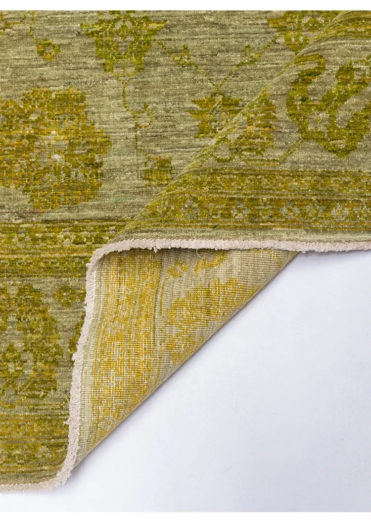 Handcrafted Afghan Wool Carpet - New Classical Villa Style in Vibrant Yellow-Green Hues, Perfect for Luxurious Décor and Cozy Ambiance