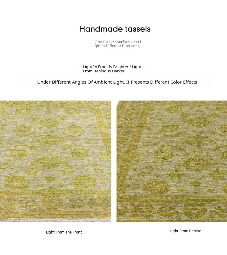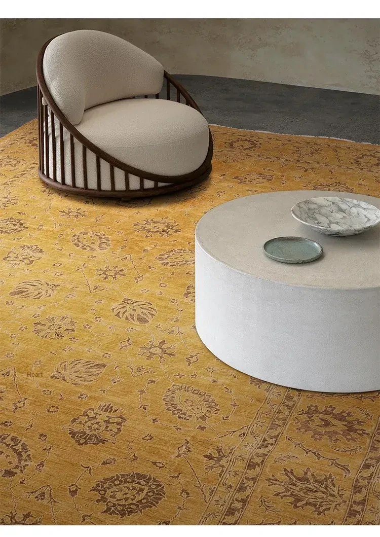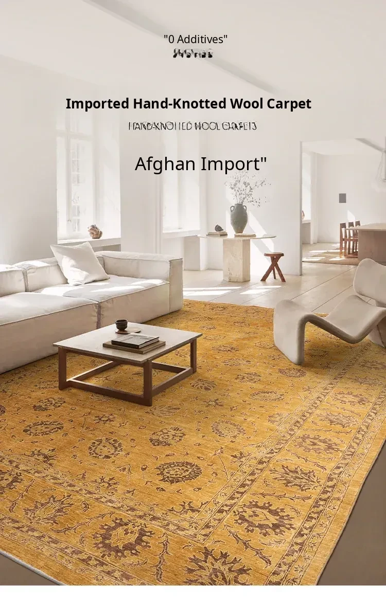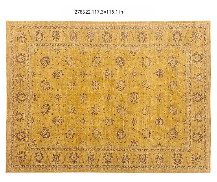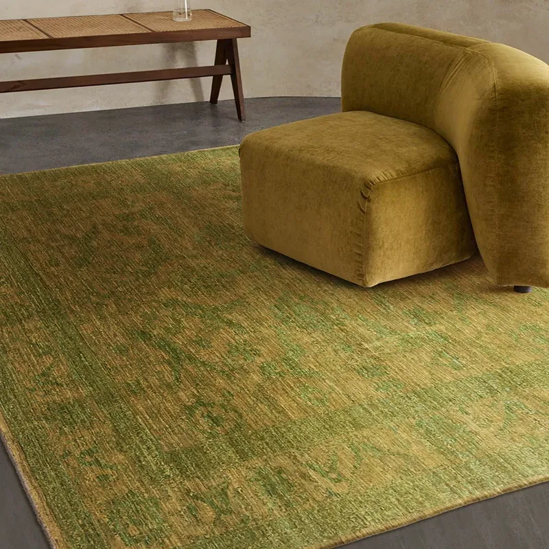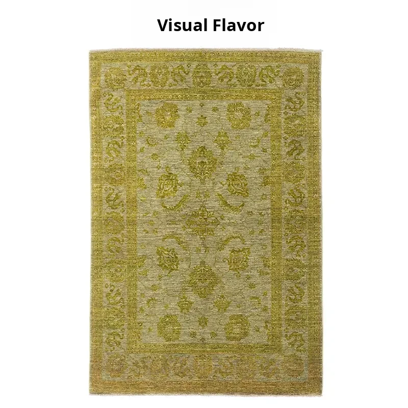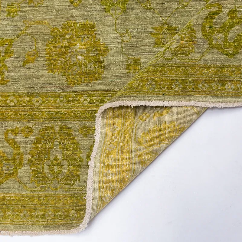 Handcrafted Afghan Wool Carpet - New Classical Villa Style in Vibrant Yellow-Green Hues, Perfect for Luxurious Décor and Cozy Ambiance
