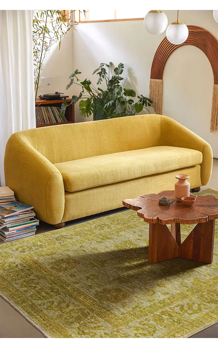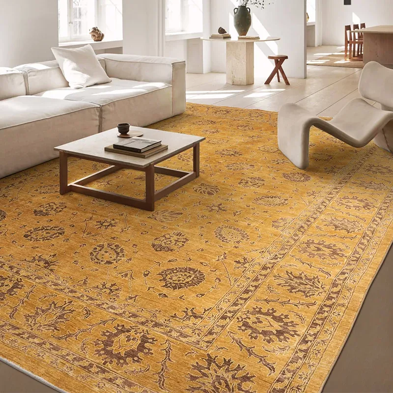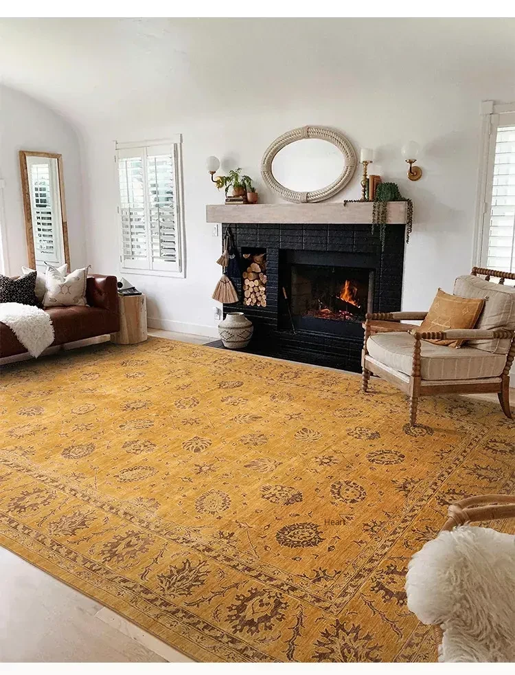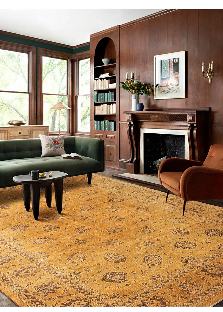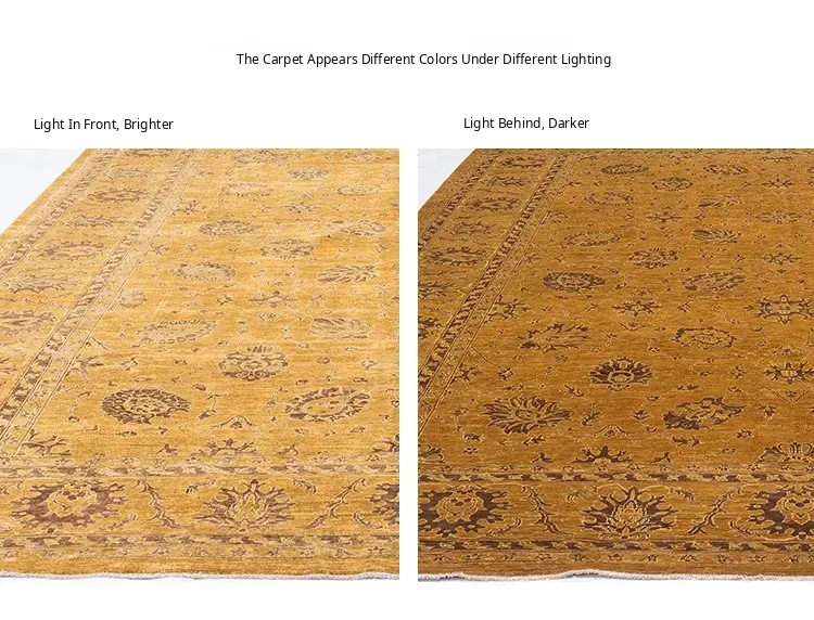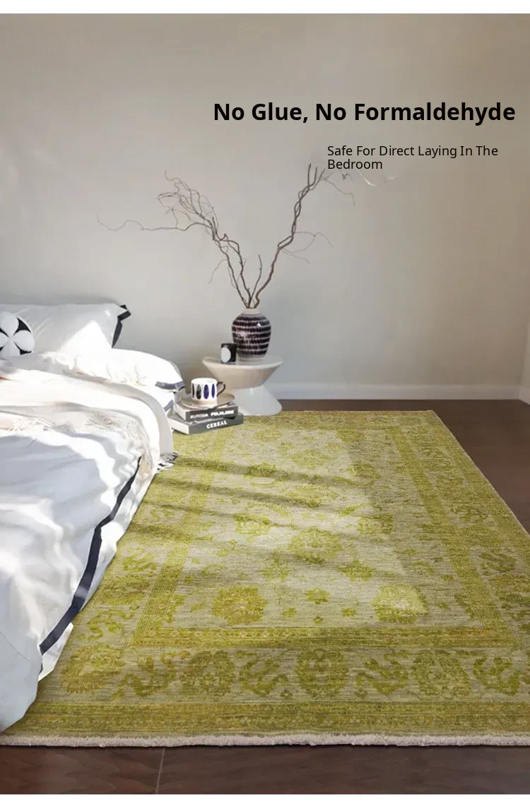 Handcrafted Afghan Wool Carpet - New Classical Villa Style in Vibrant Yellow-Green Hues, Perfect for Luxurious Décor and Cozy Ambiance