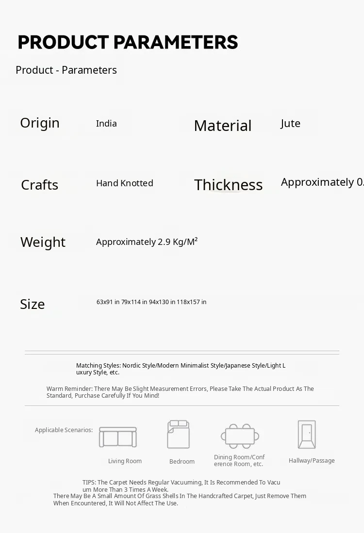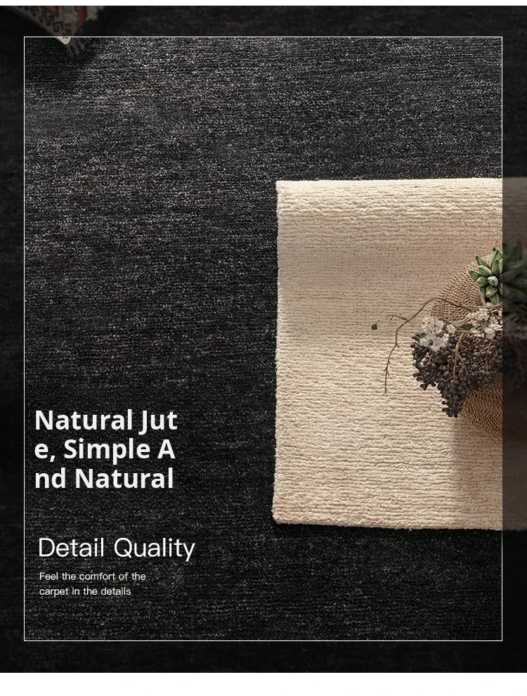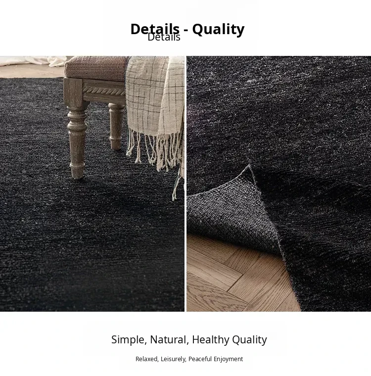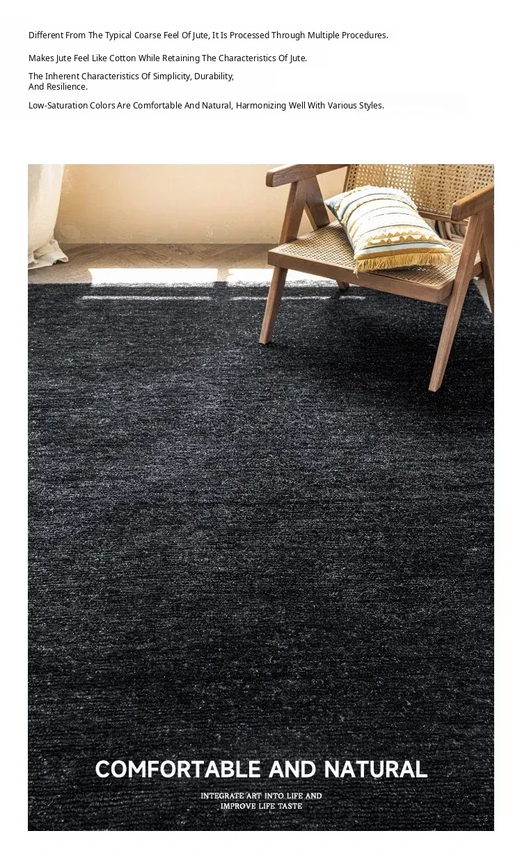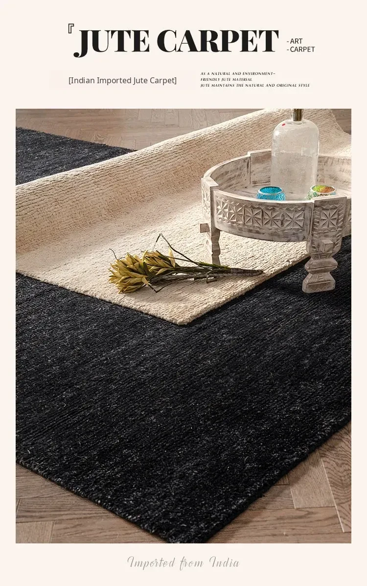 Handcrafted Black Jute Area Rug - Japanese & Chinese Style, Premium Quality for Living Room & Study, Ideal for Sofa & Coffee Table, Elevate Your Space with Visual Taste