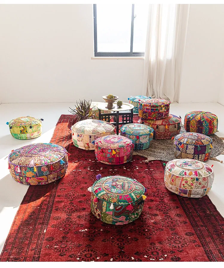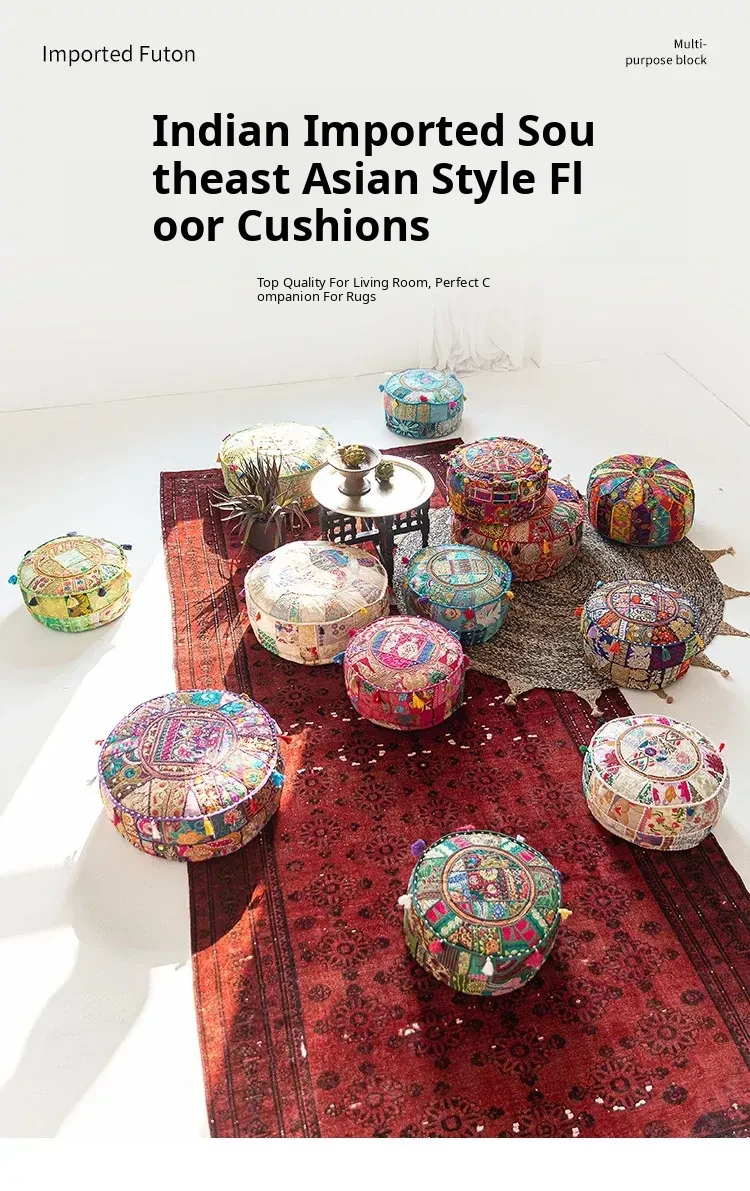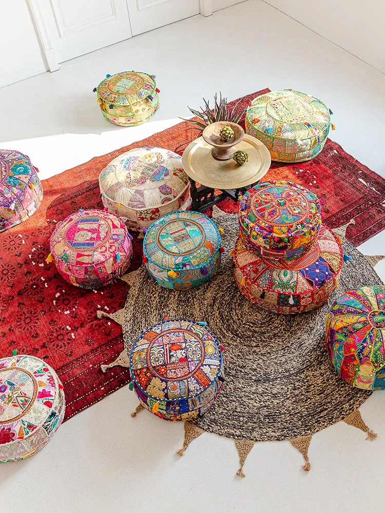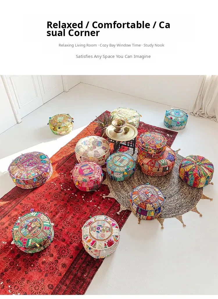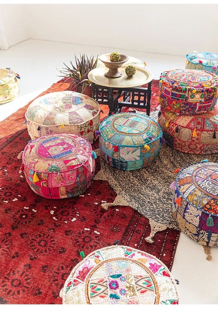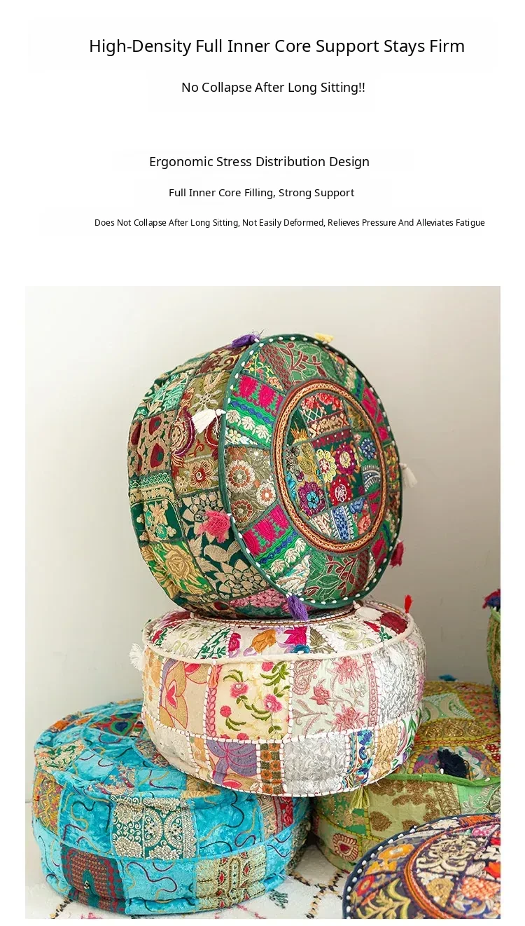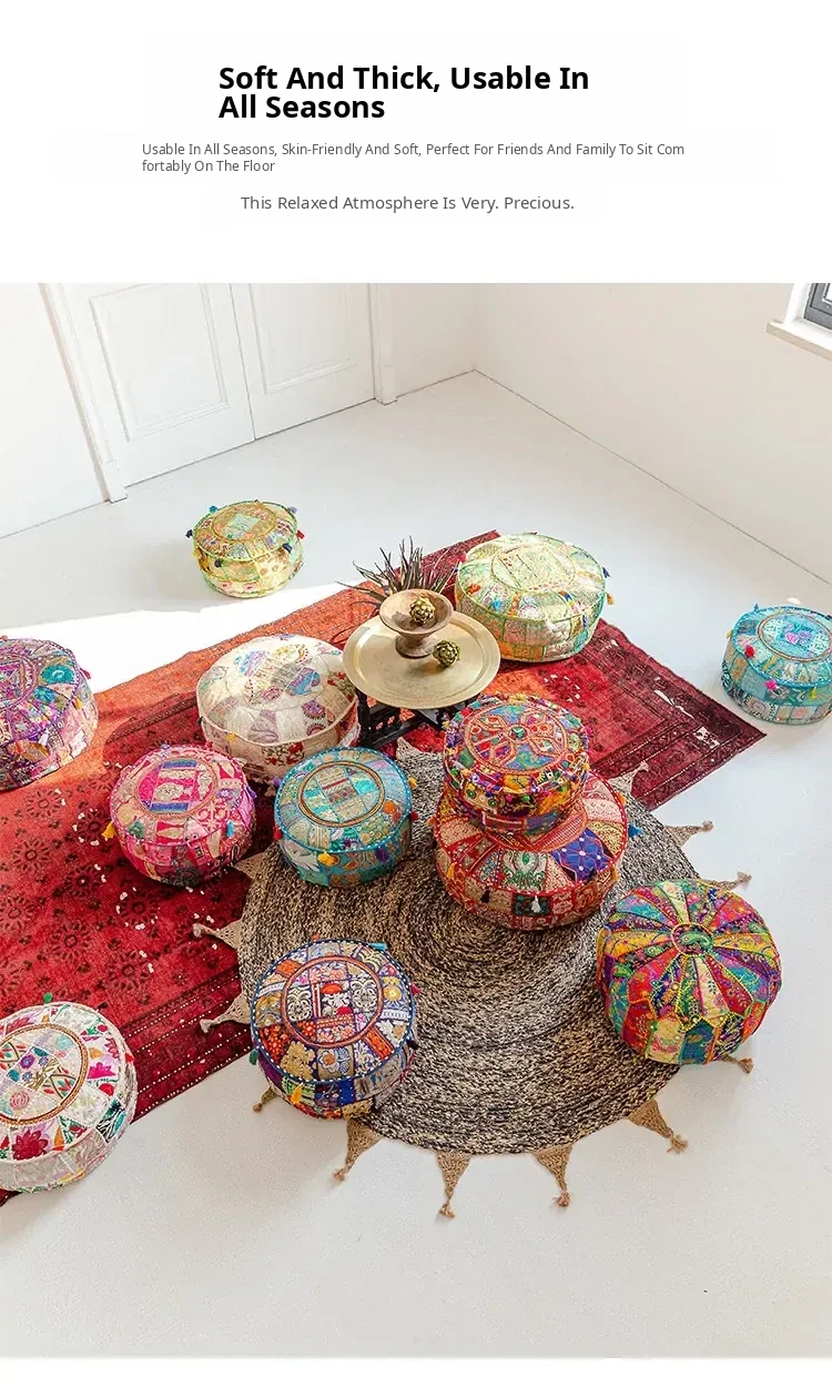 Handcrafted Embroidered Floor Cushion - American Ethnic Style Tatami Seat Pad for Living Room, Balcony, and Bay Window - Elevate Your Space with Unique Visual Flavor