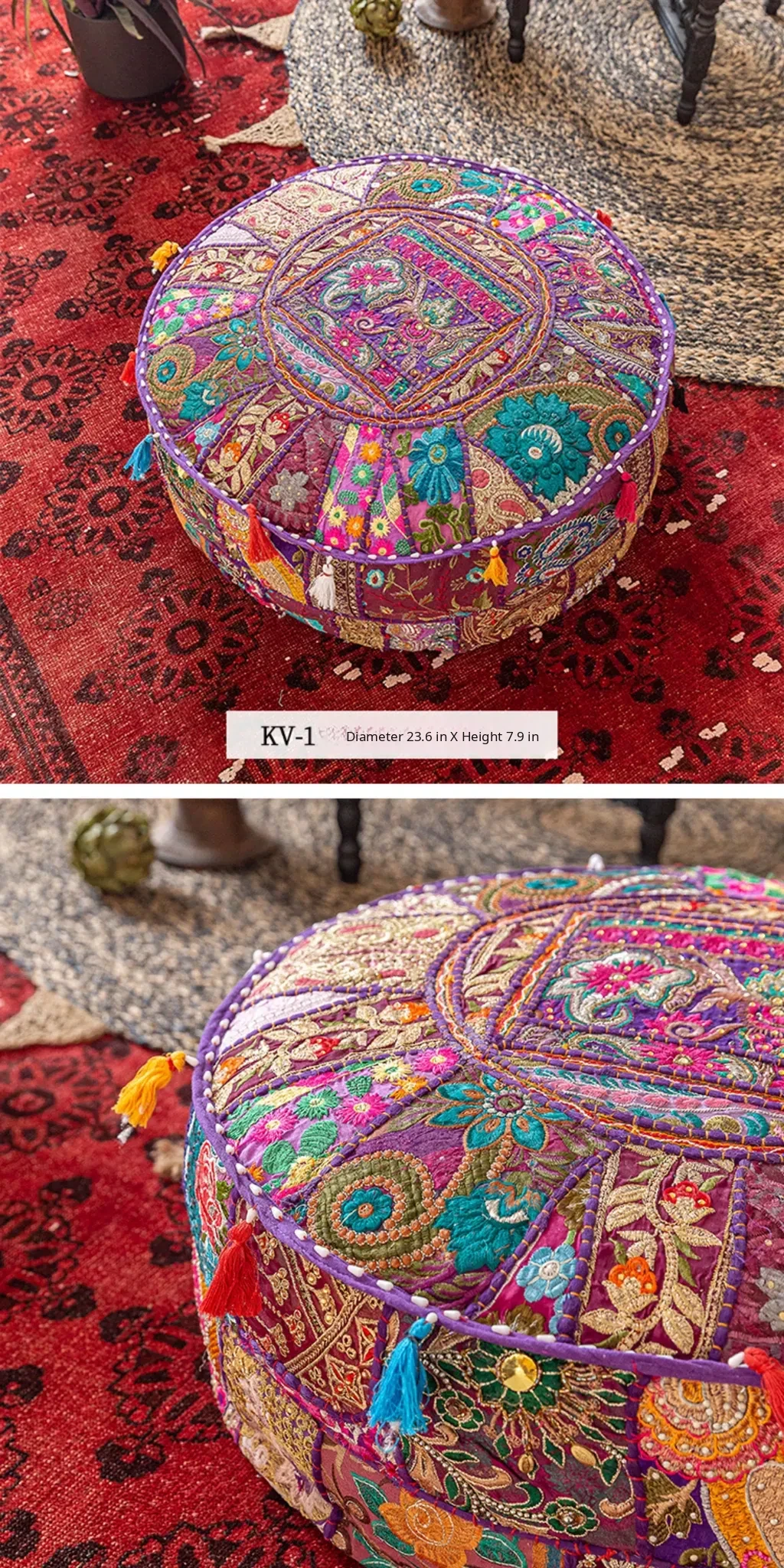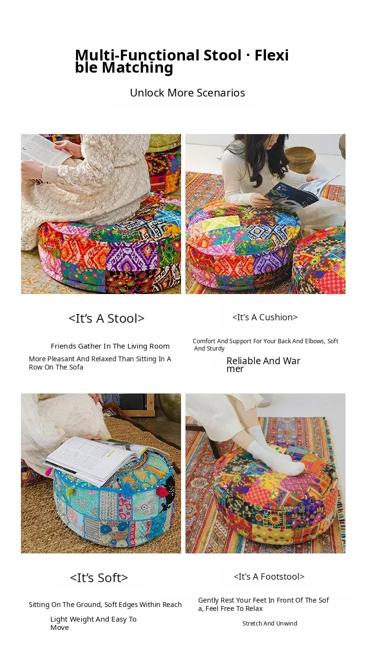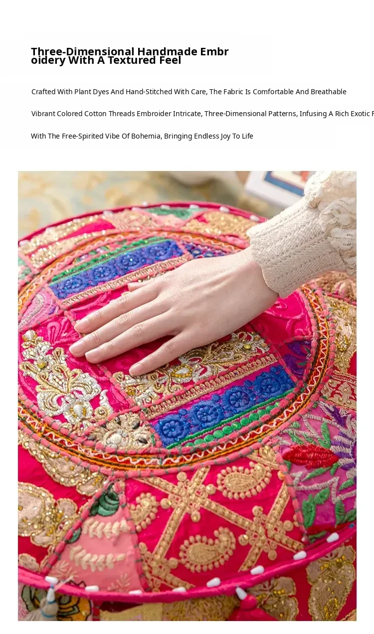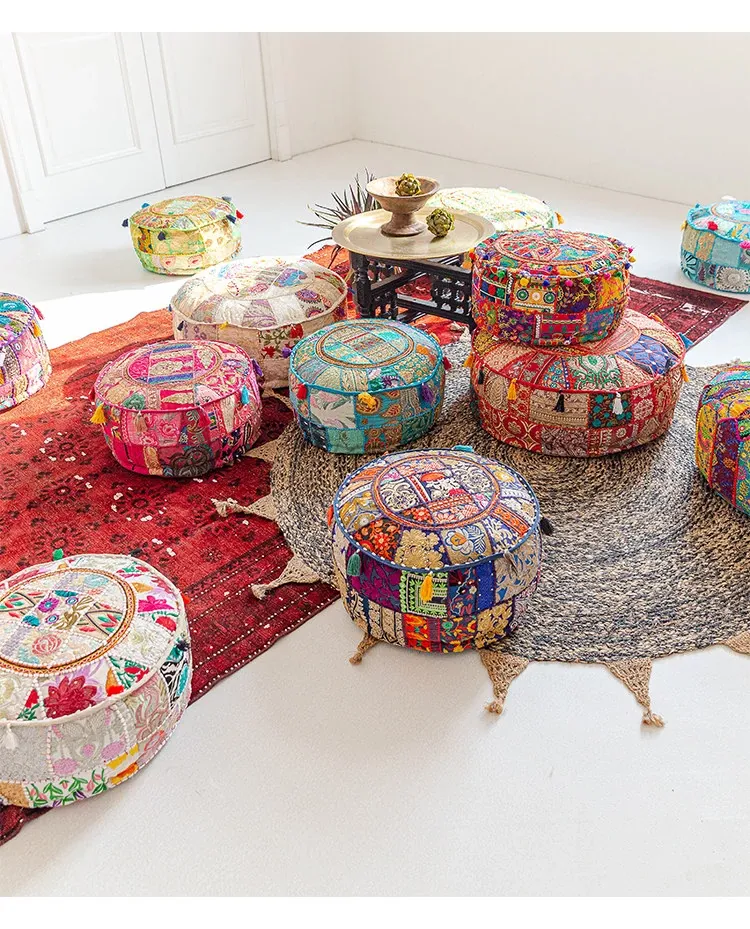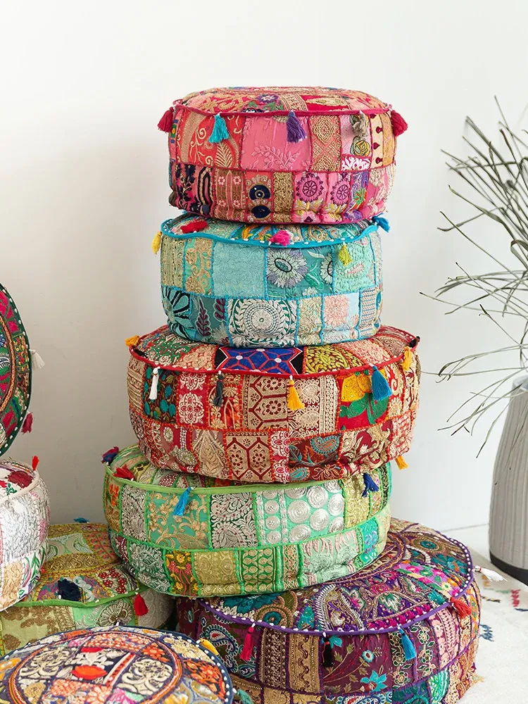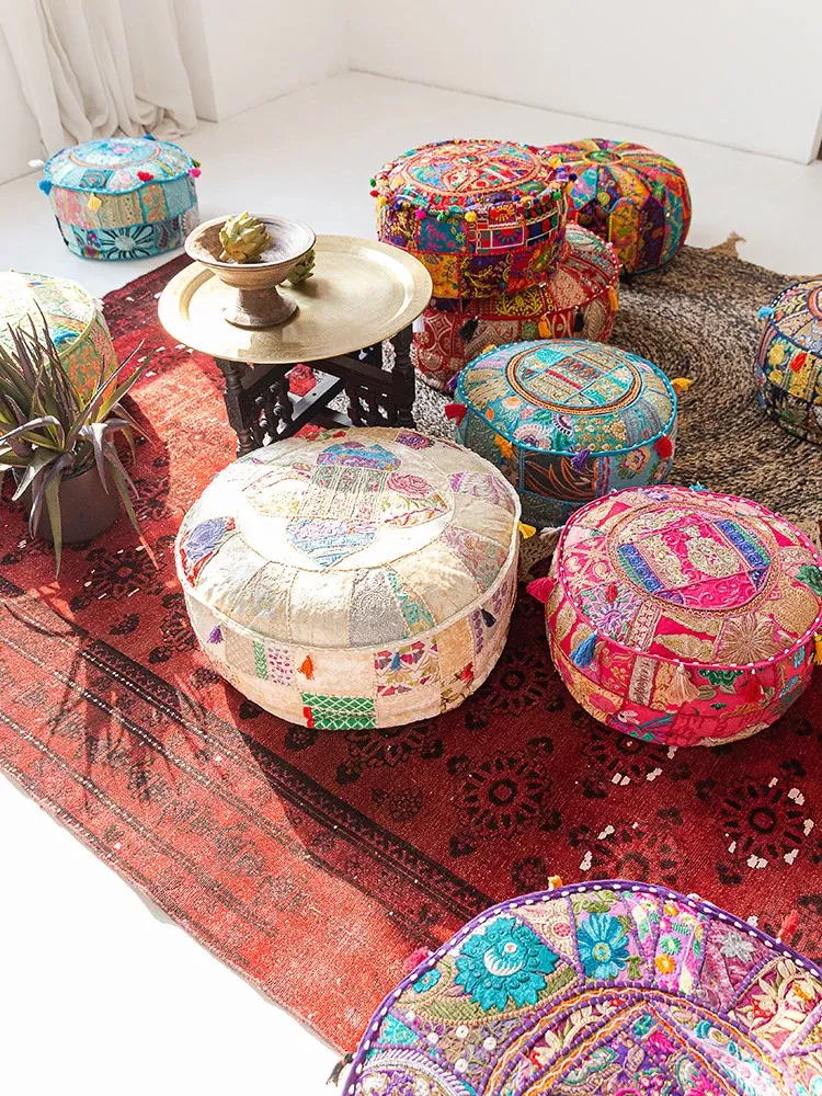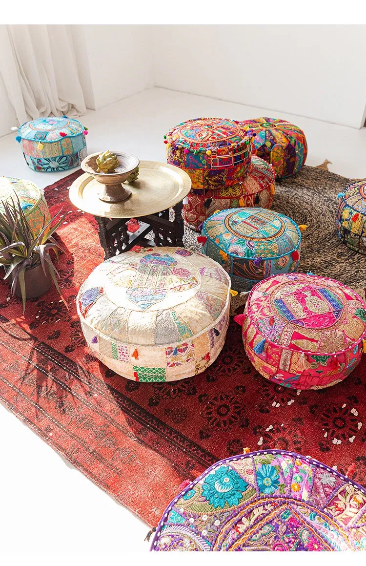 Handcrafted Embroidered Floor Cushion - American Ethnic Style Tatami Seat Pad for Living Room, Balcony, and Bay Window - Elevate Your Space with Unique Visual Flavor