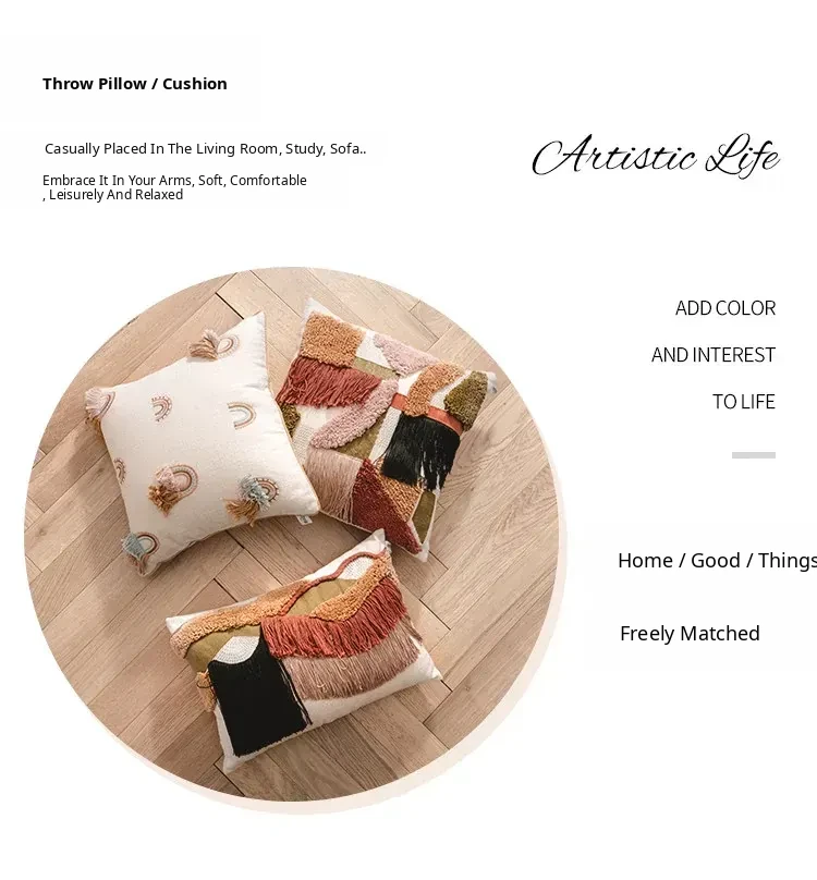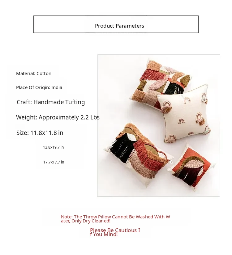 Handcrafted Imported Luxury Embroidered Modern Tassel Throw Pillow - Perfect for Office, Sofa, Living Room, Bedside Back Support, and Decorative Cushion.