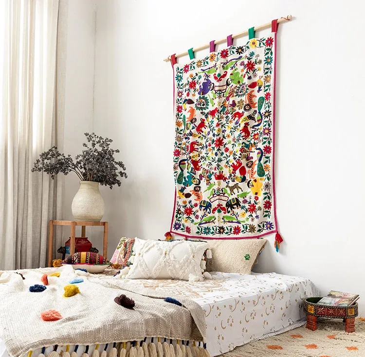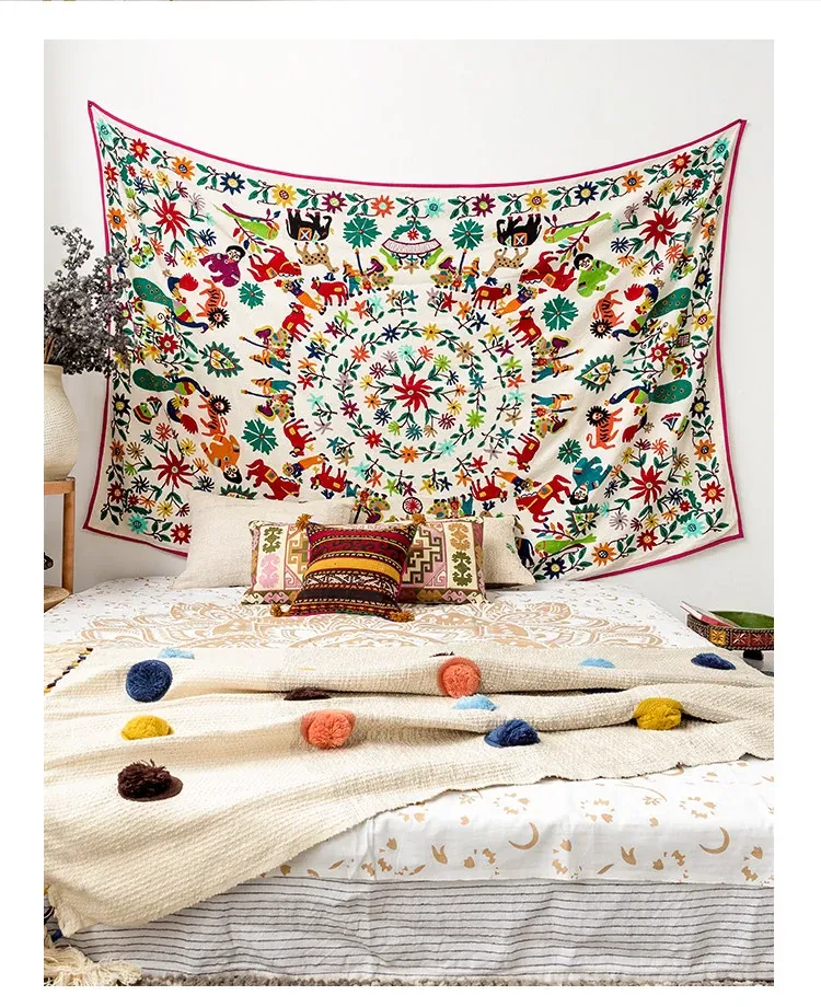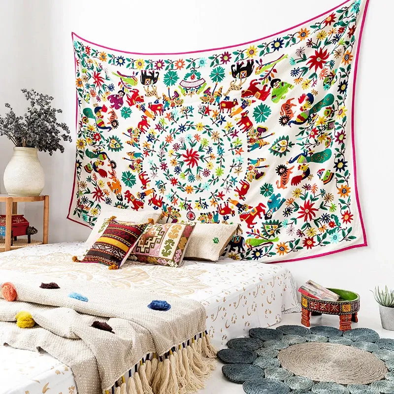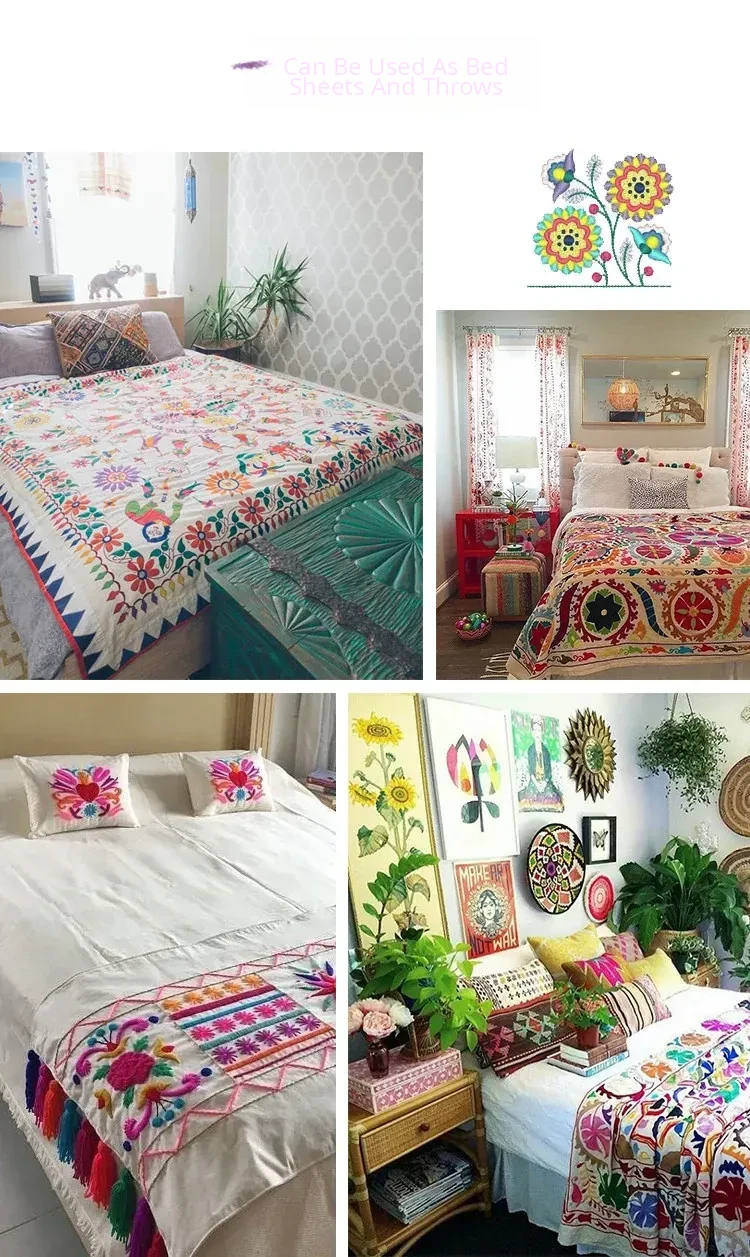 Handcrafted Indian Embroidered Bedspread - DIY Curtains, Fashionable Wall Hangings, Kids' Tapestries, Ethnic Tablecloths, and Cozy Sofa Throws - Perfect for Home Décor!