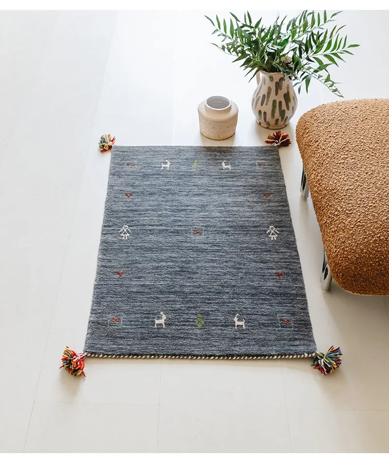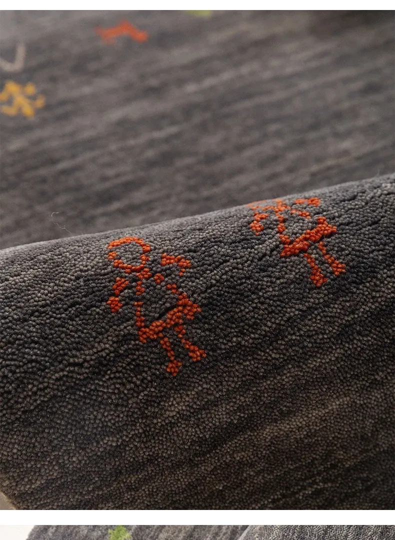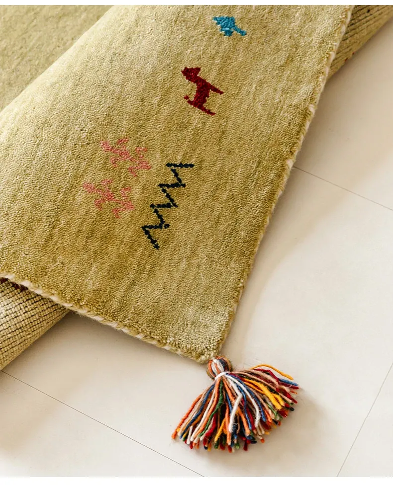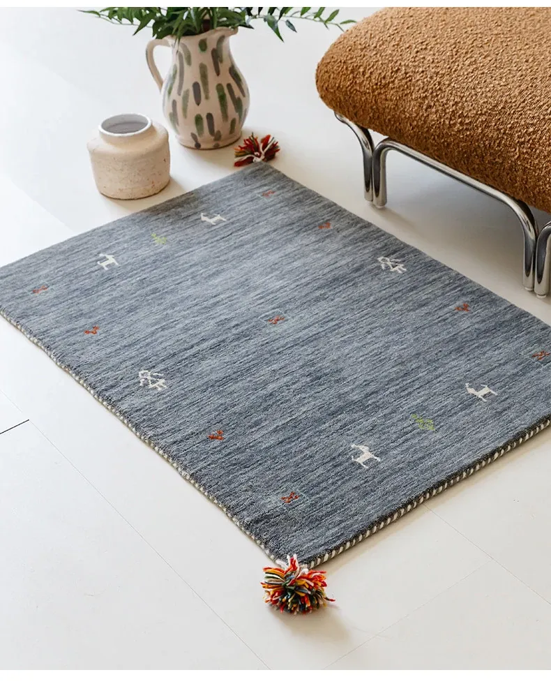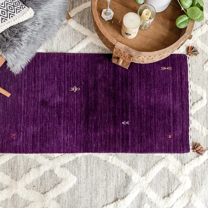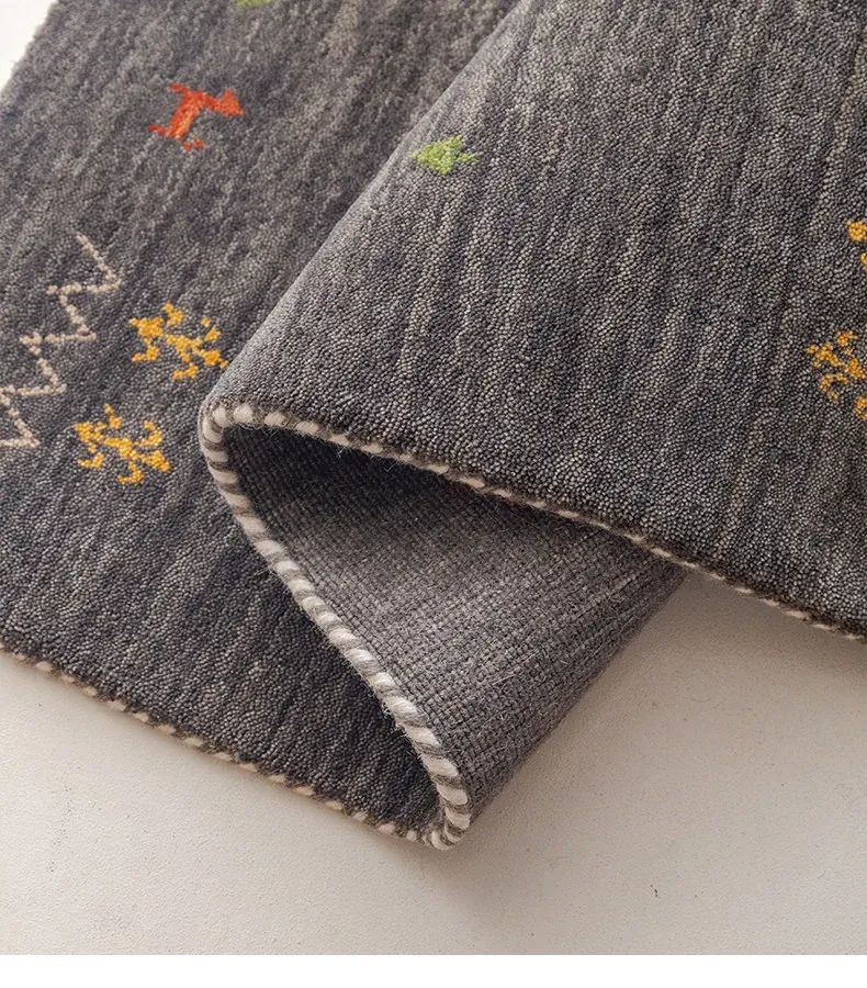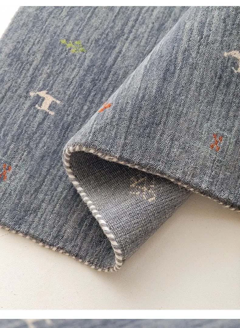 Handcrafted Indian Gabbeh Wool Rug - Minimalist Design for Living Room, Soft and Elegant Plush Area Rug for Bedroom and Coffee Table