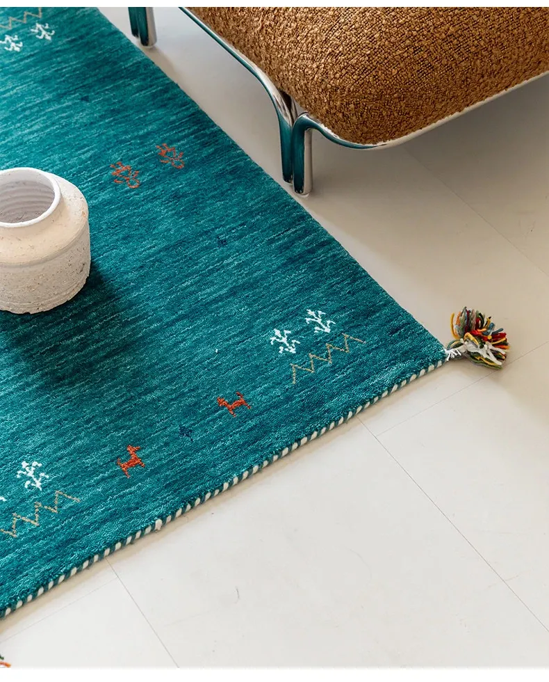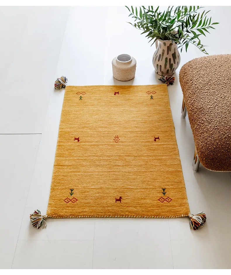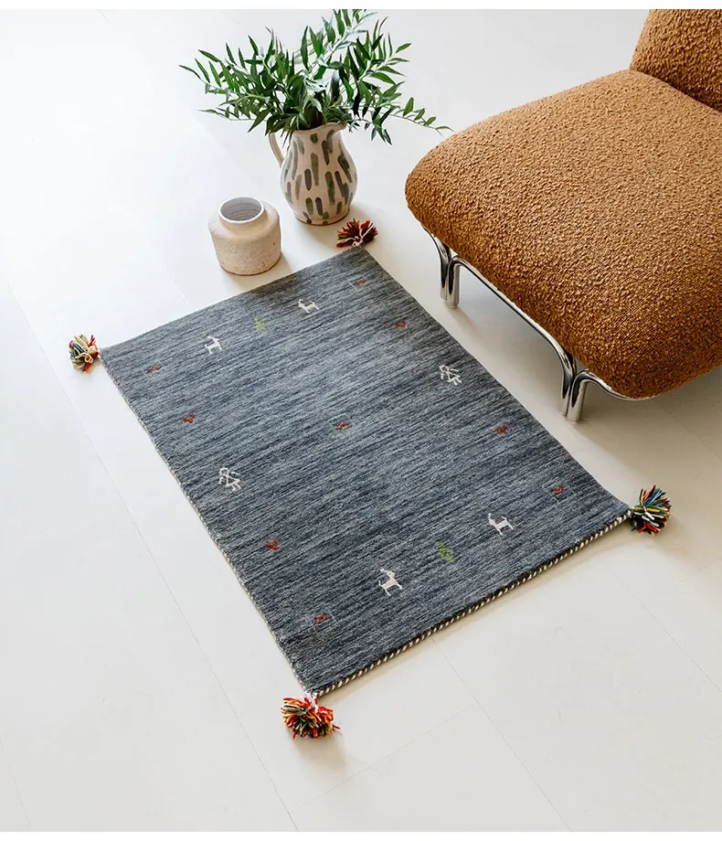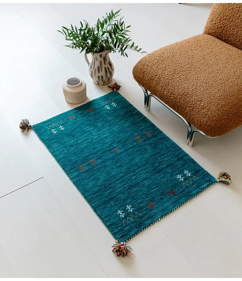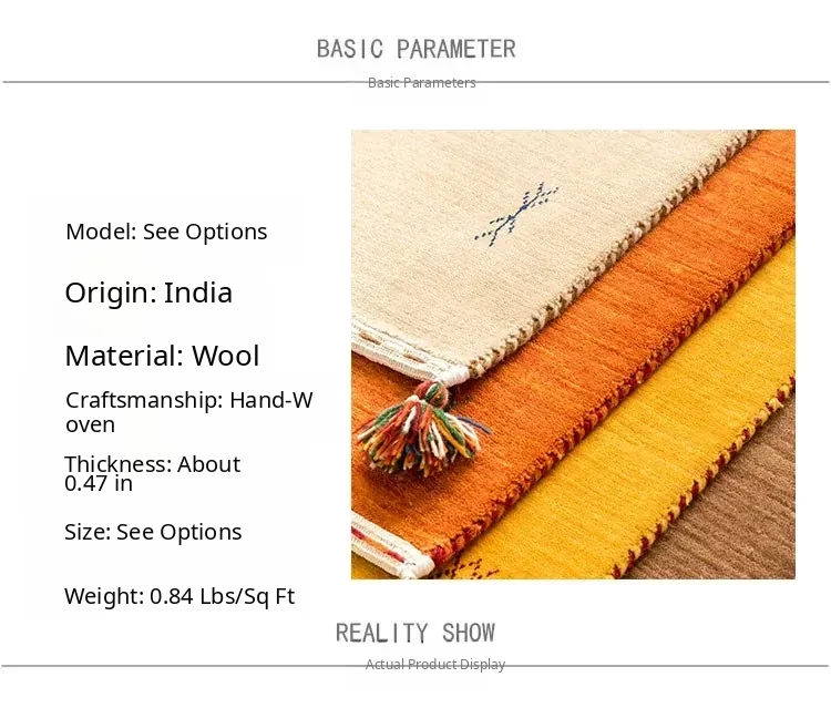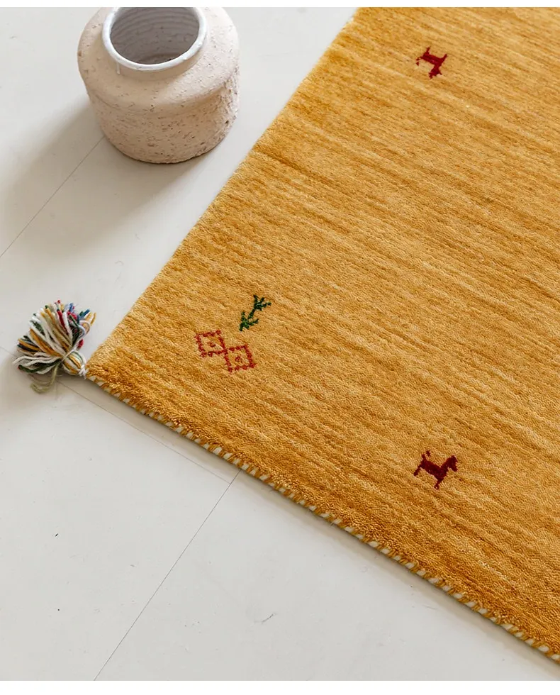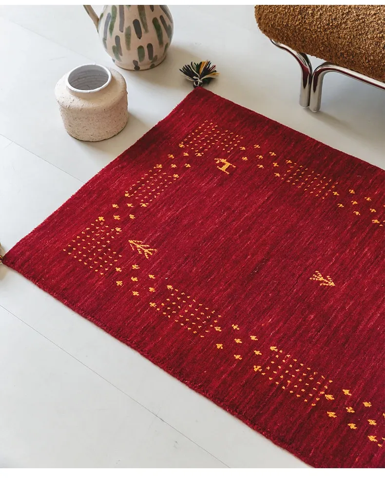 Handcrafted Indian Gabbeh Wool Rug - Minimalist Design for Living Room, Soft and Elegant Plush Area Rug for Bedroom and Coffee Table
