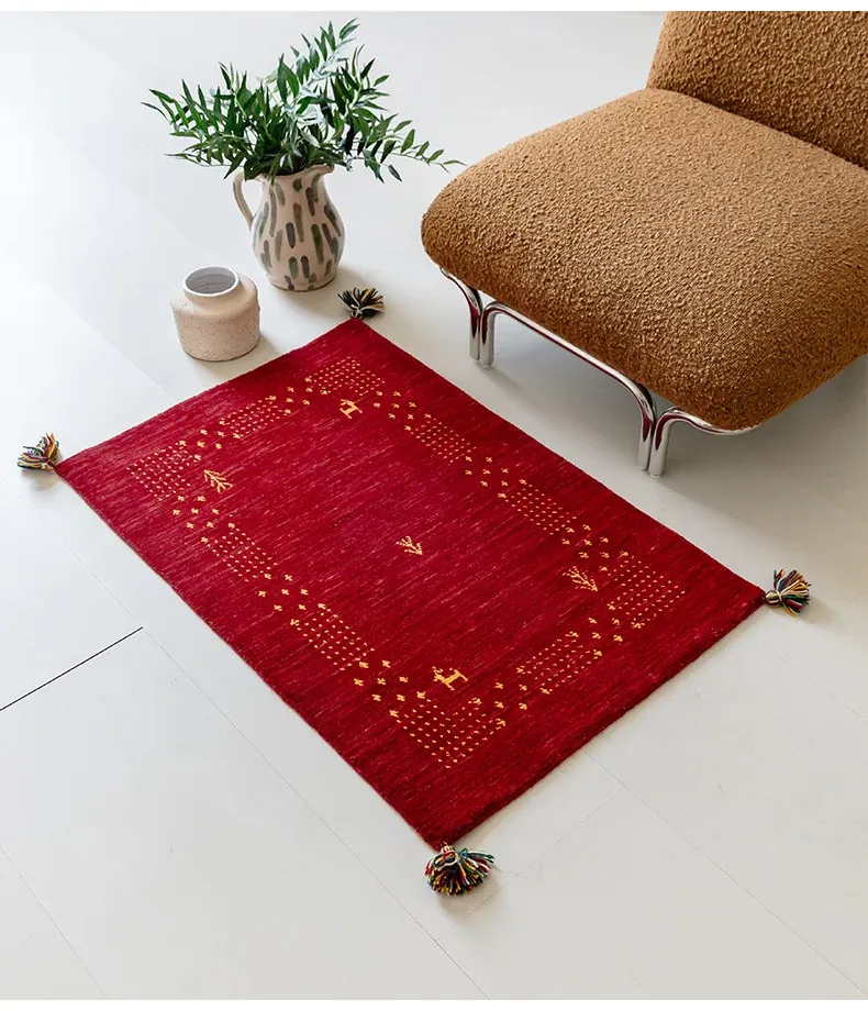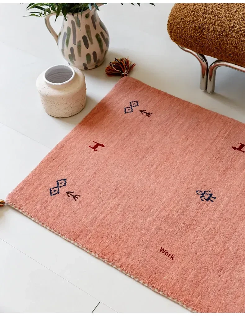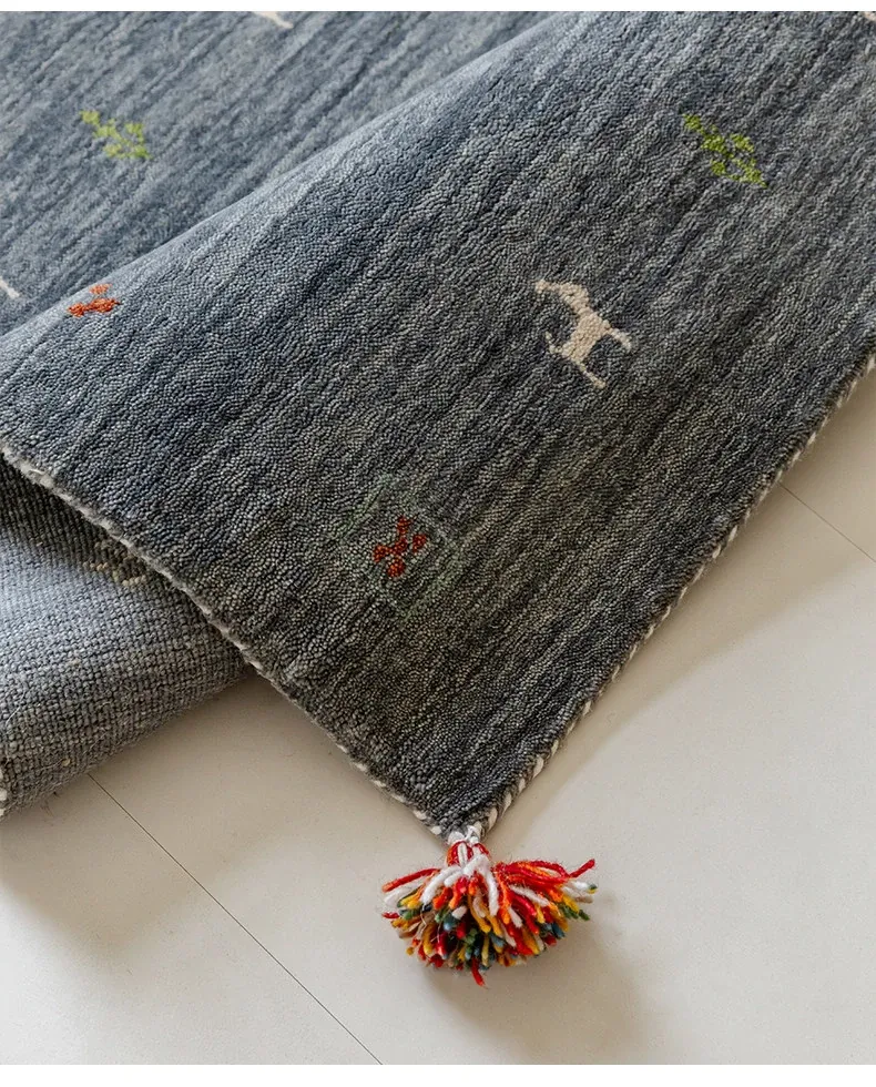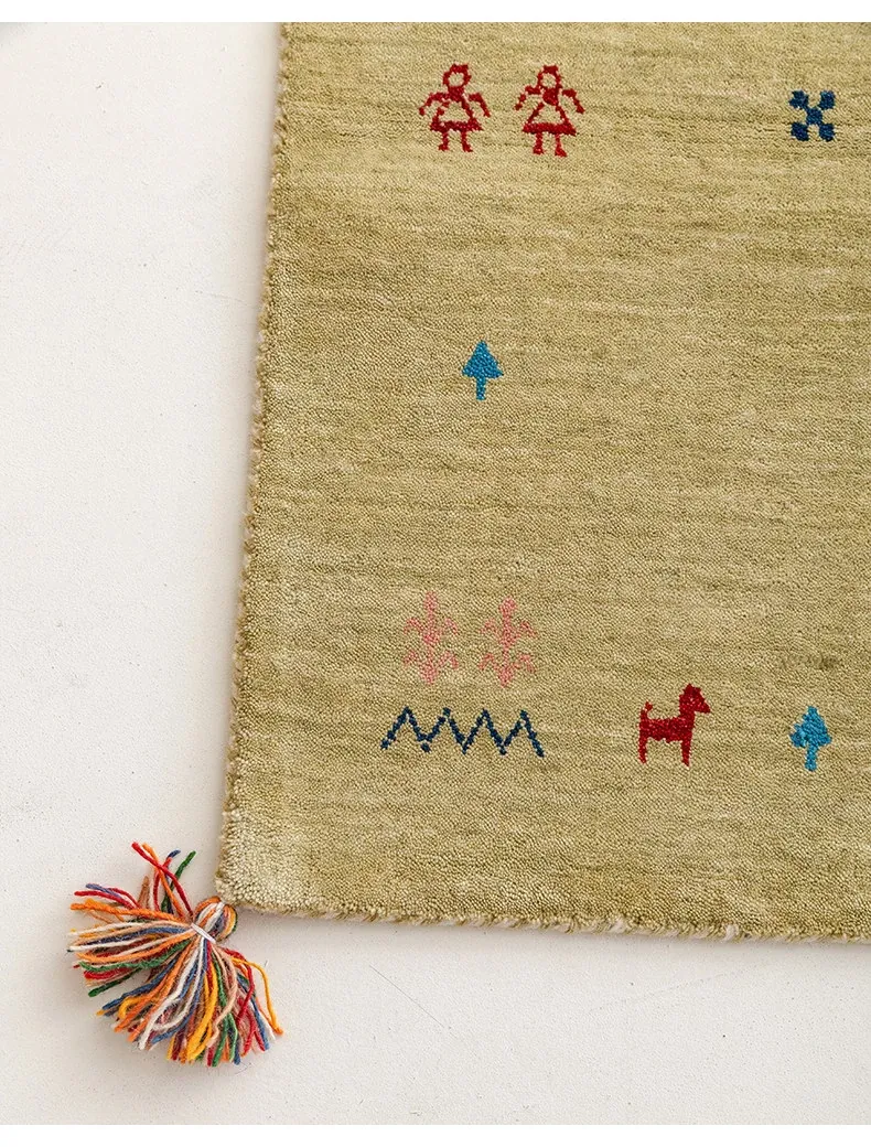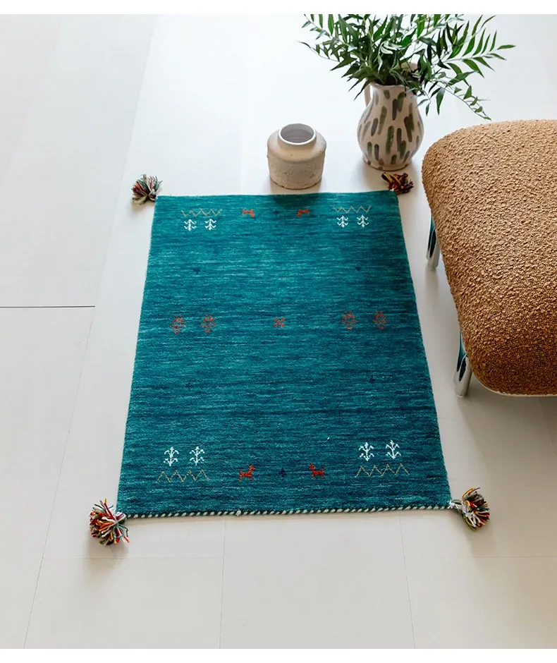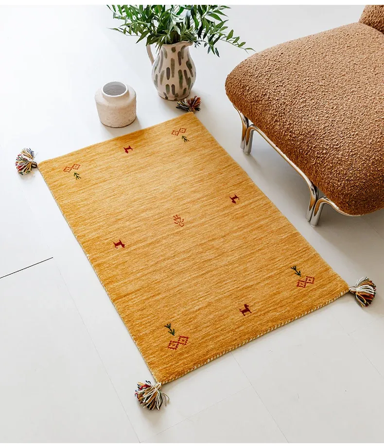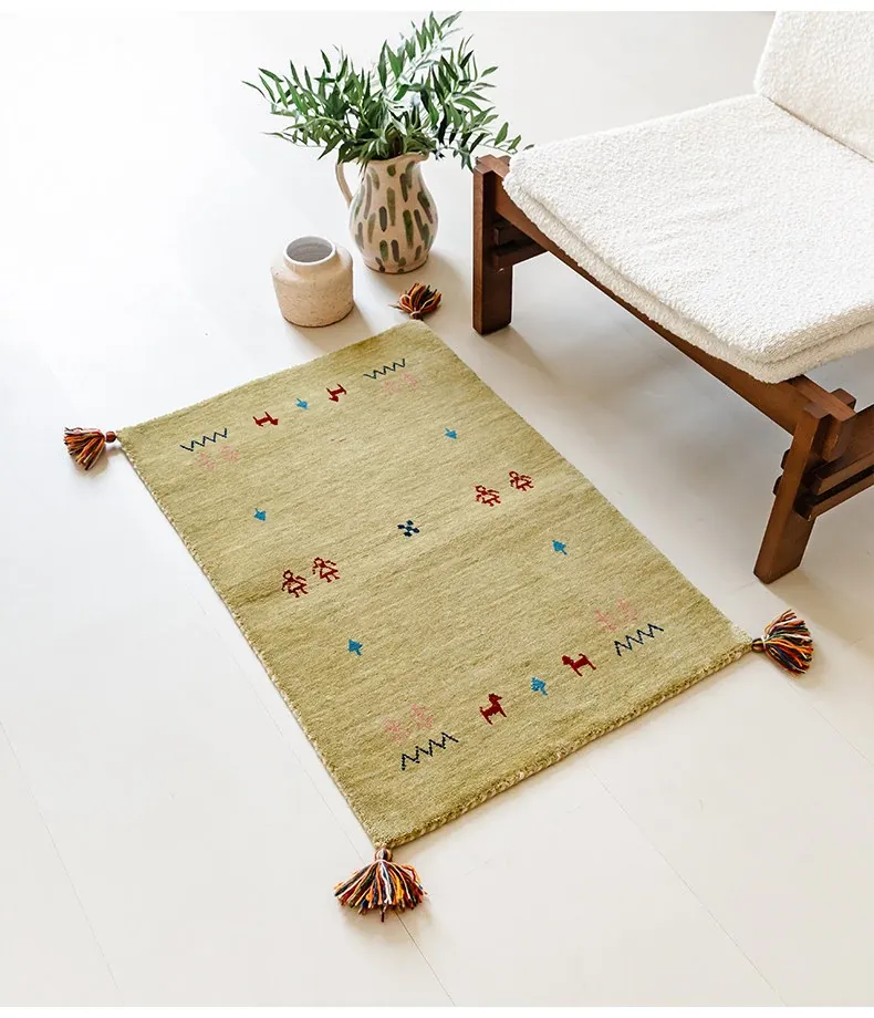 Handcrafted Indian Gabbeh Wool Rug - Minimalist Design for Living Room, Soft and Elegant Plush Area Rug for Bedroom and Coffee Table