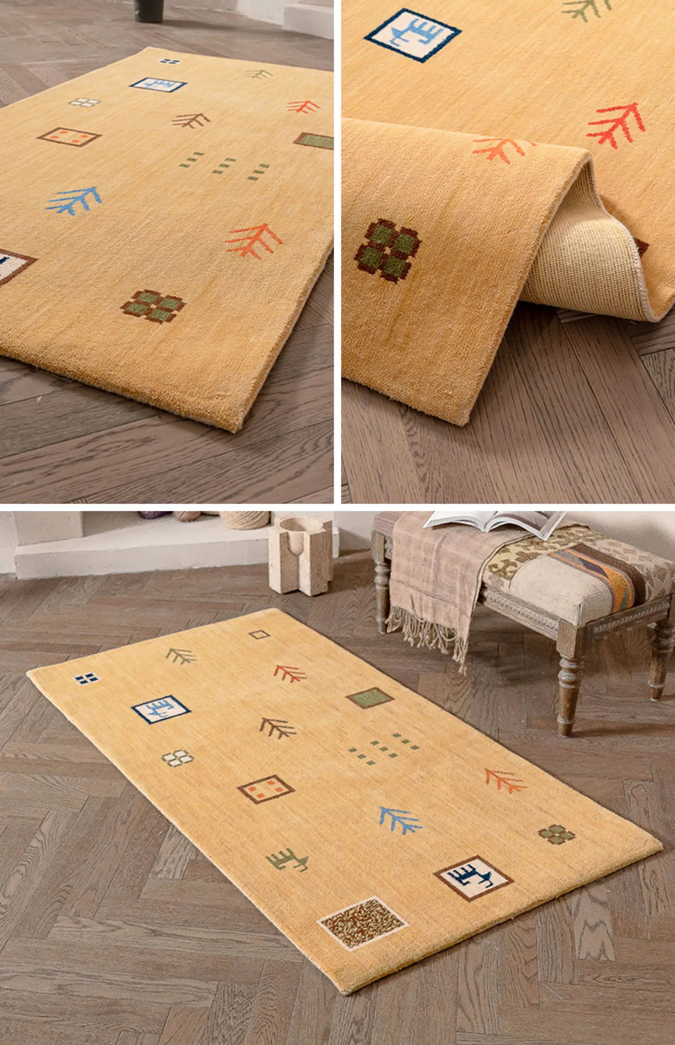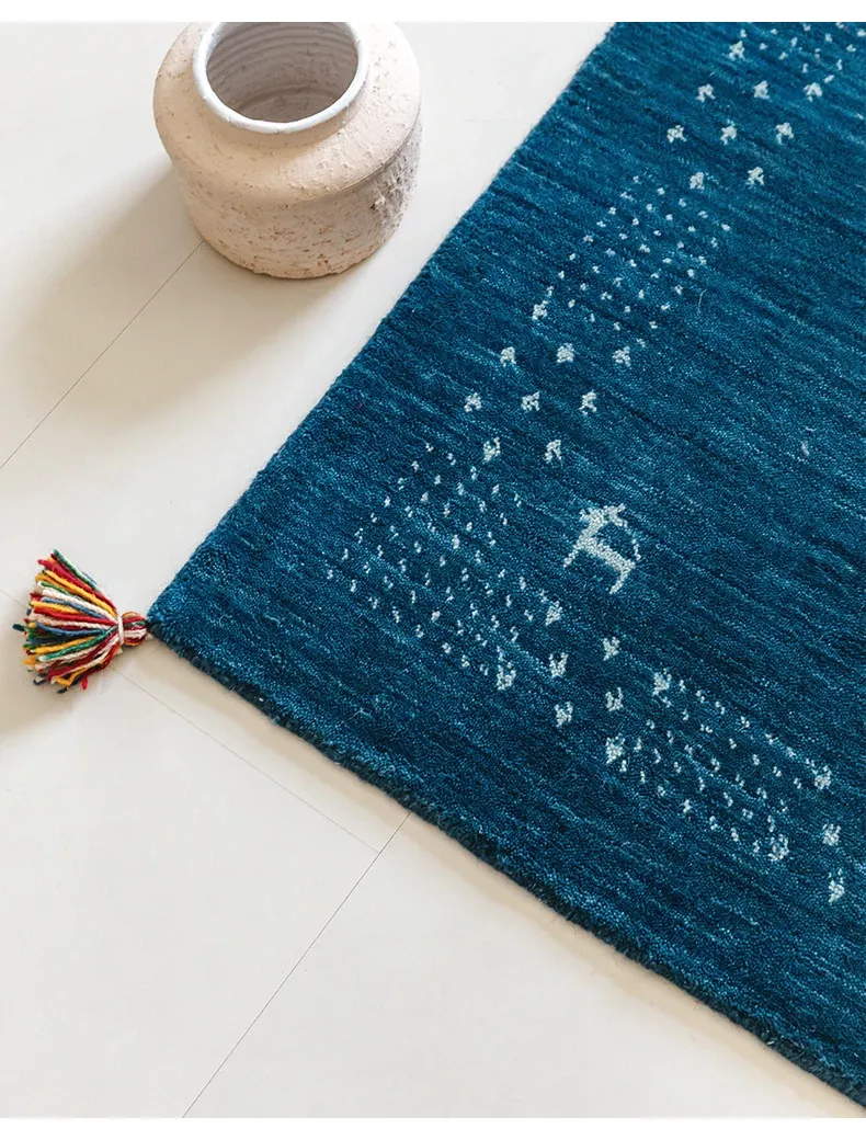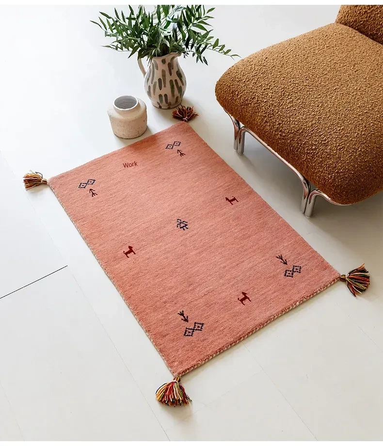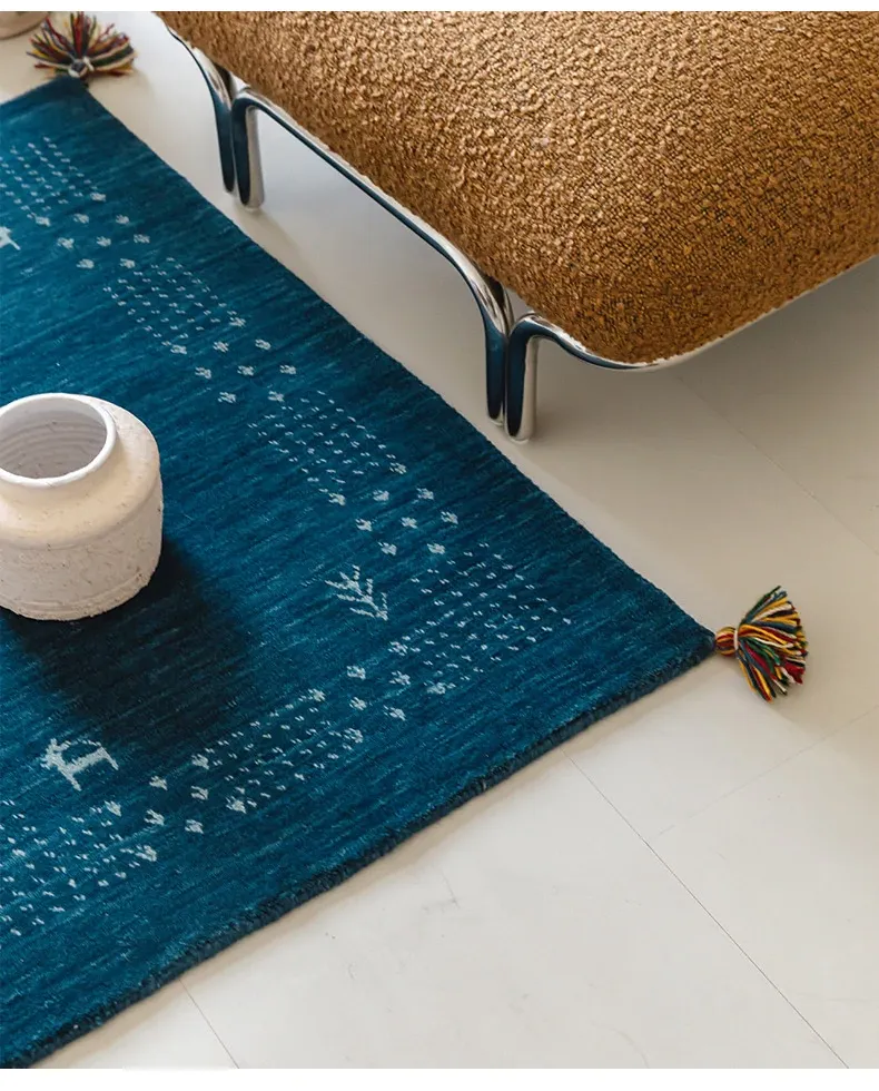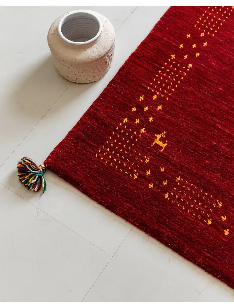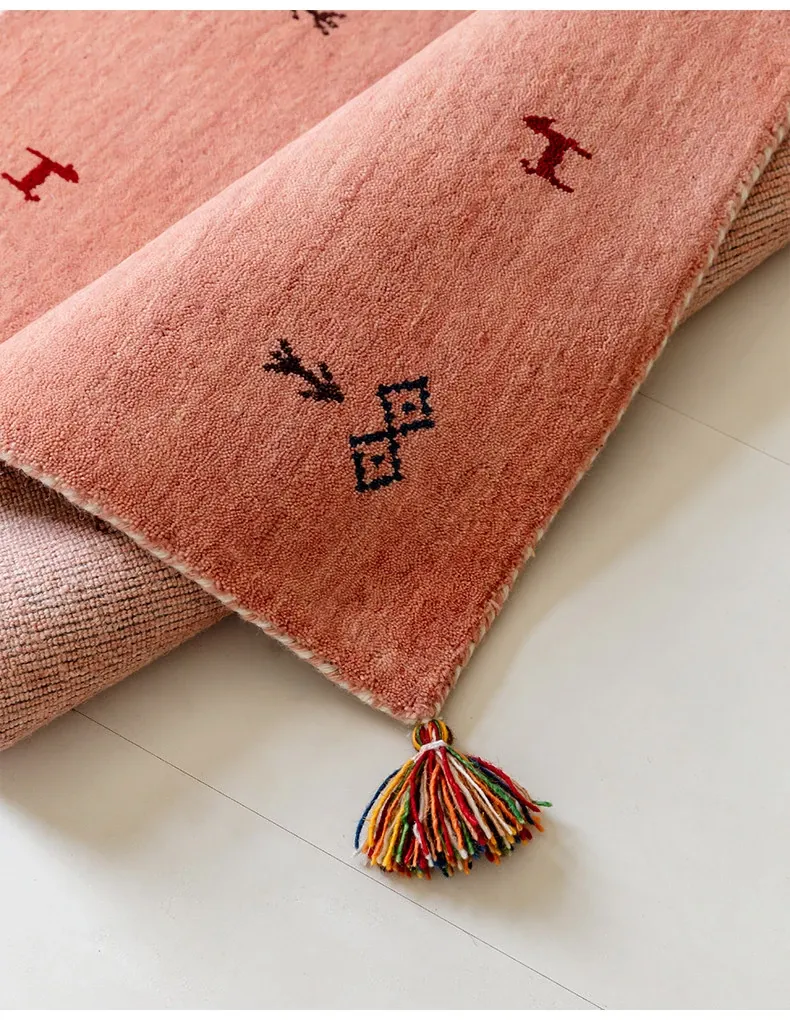 Handcrafted Indian Gabbeh Wool Rug - Minimalist Design for Living Room, Soft and Elegant Plush Area Rug for Bedroom and Coffee Table