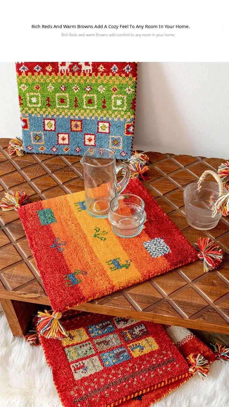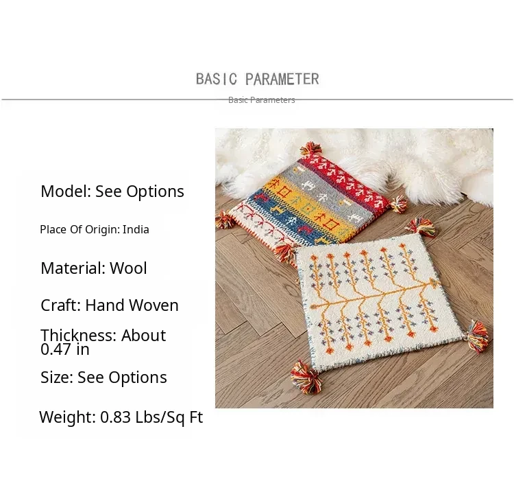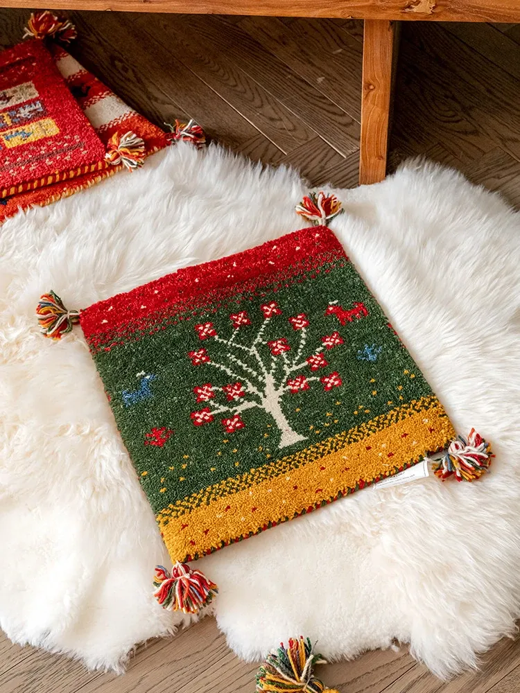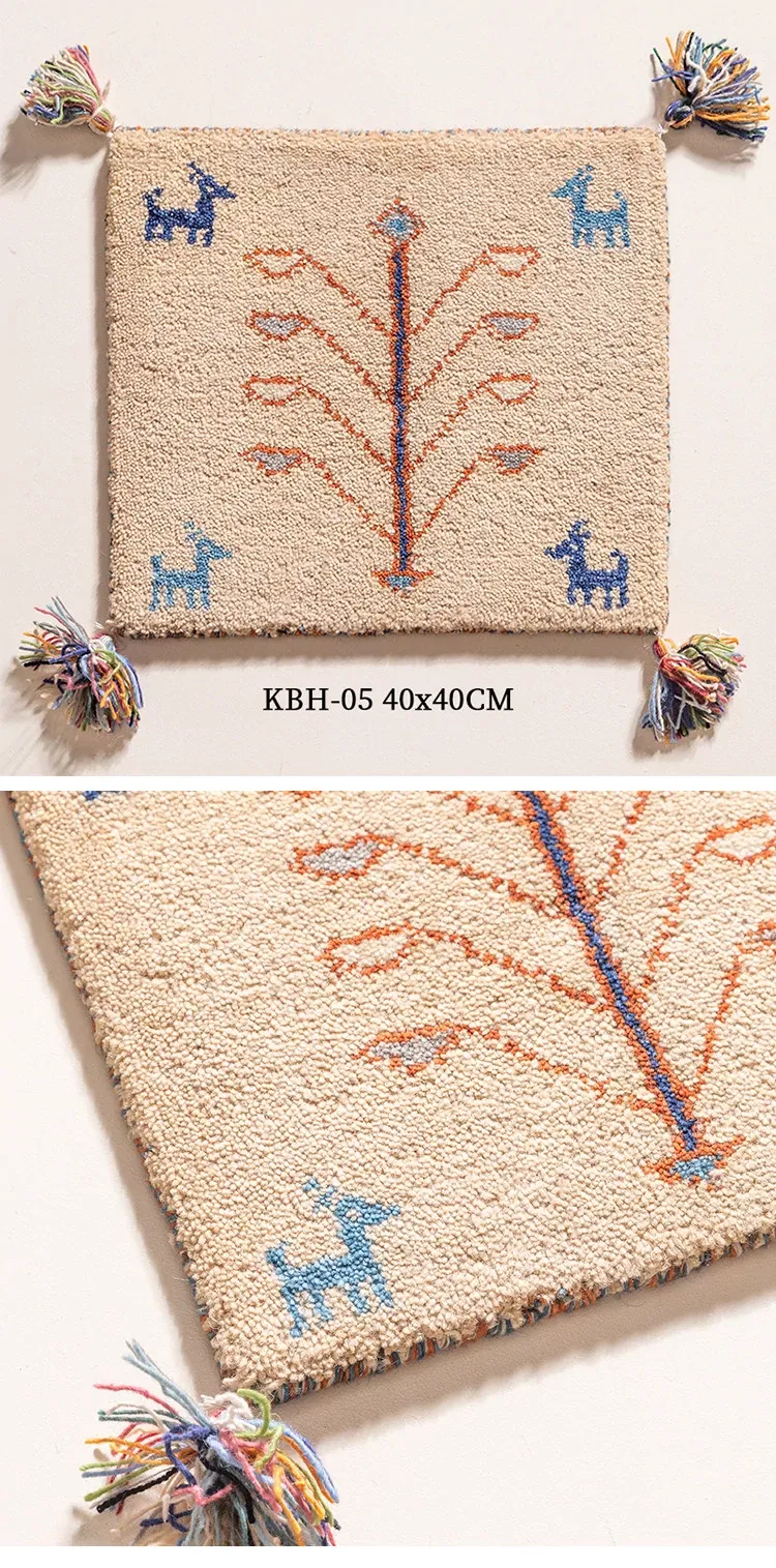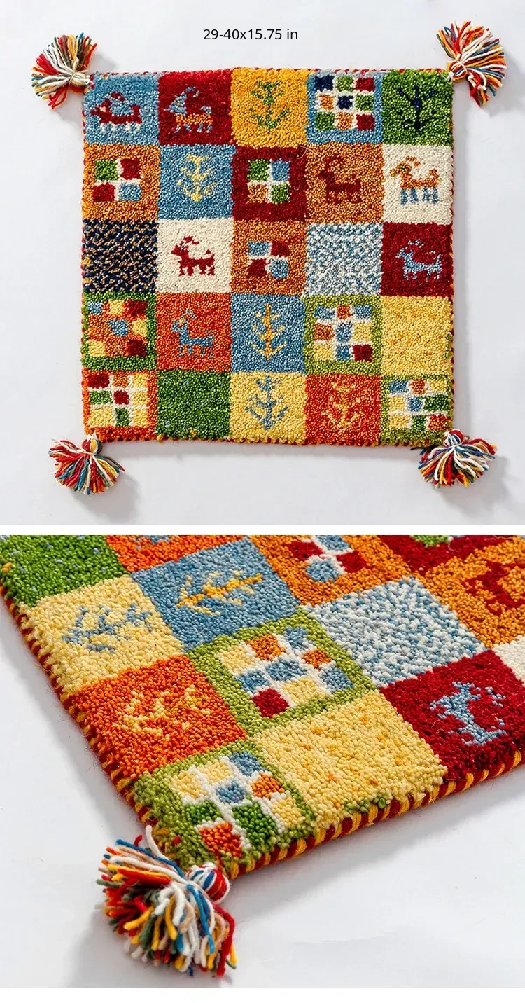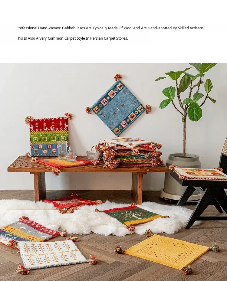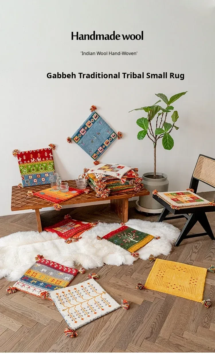 Handcrafted Indian Wool Gabbeh Rug – Non-Adhesive, Visually Appealing, Cute Sofa Chair Cushion, Creative Foot Mat for Cozy Living Spaces