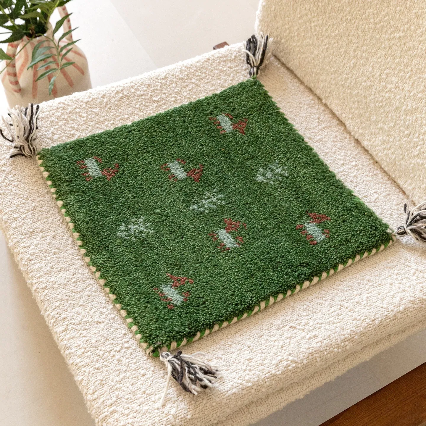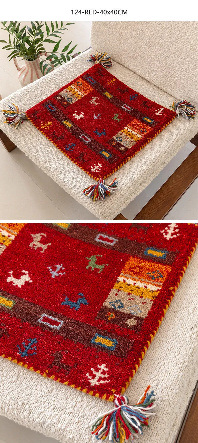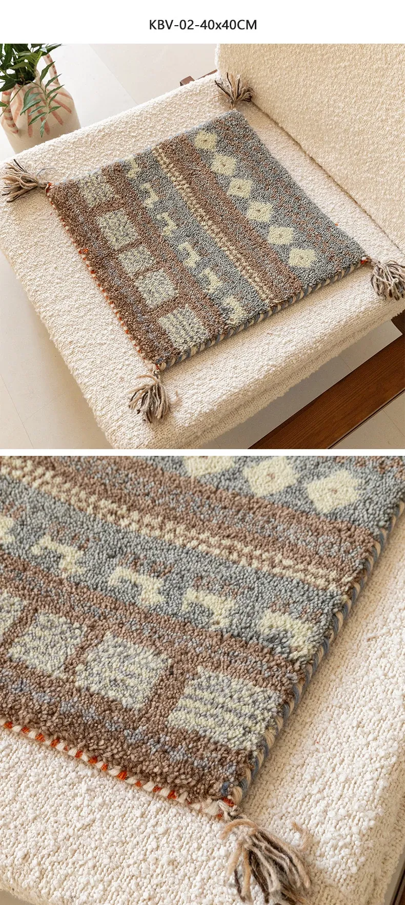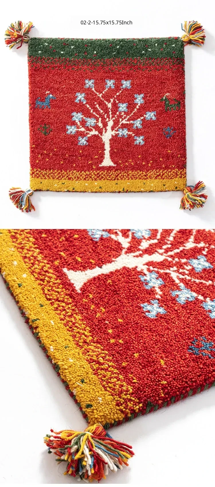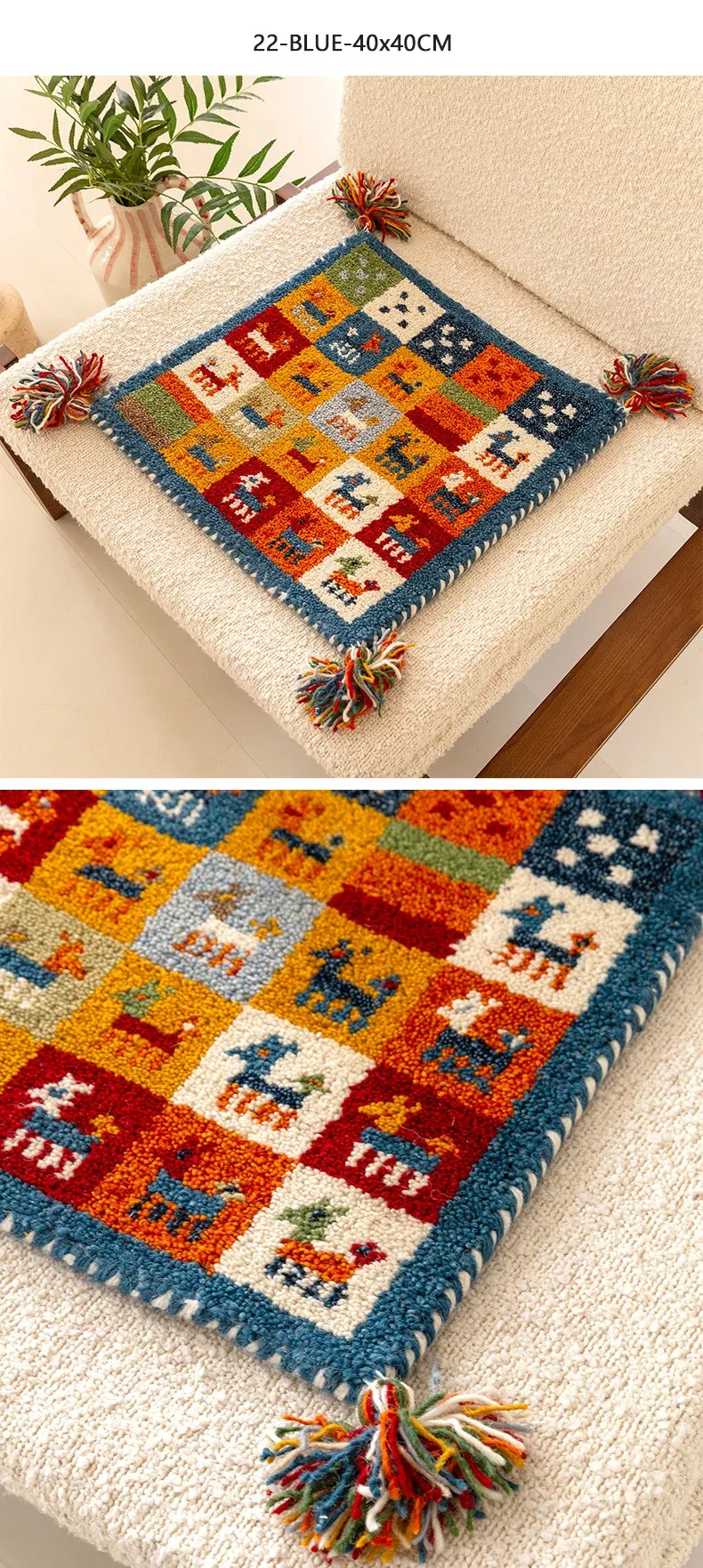 Handcrafted Indian Wool Gabbeh Rug – Non-Adhesive, Visually Appealing, Cute Sofa Chair Cushion, Creative Foot Mat for Cozy Living Spaces