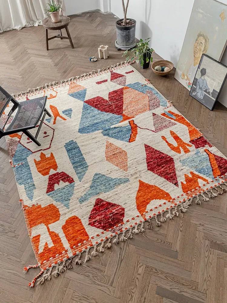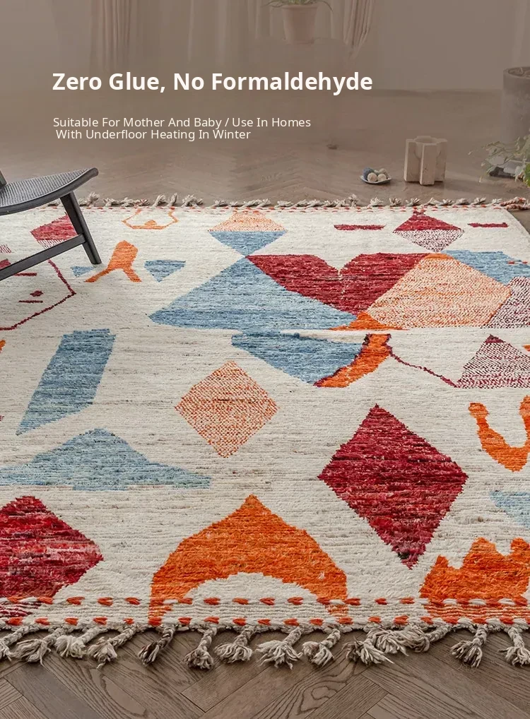 Handcrafted Moroccan Wool Area Rug - Modern Design, Soundproof & Warm, Non-Toxic & Glue-Free, Perfect for Your Living Room