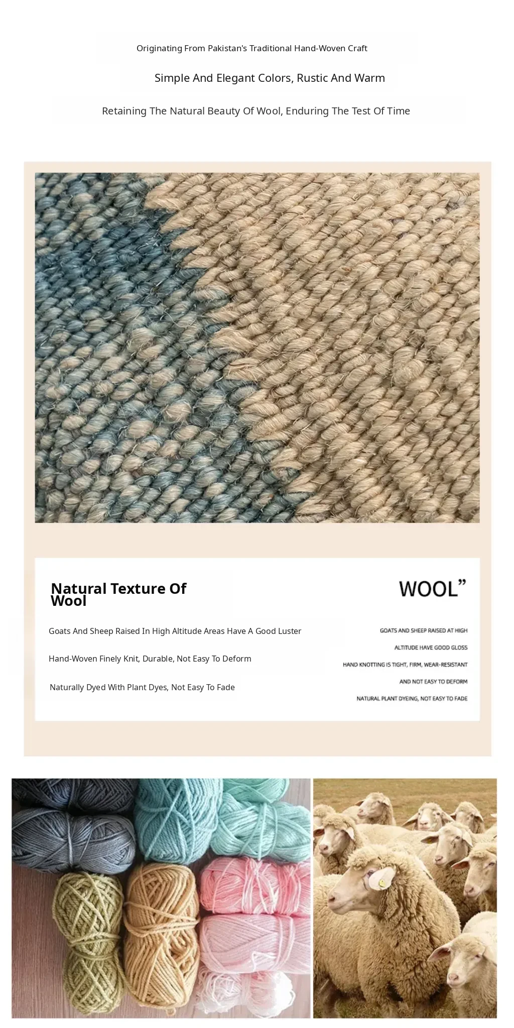Handcrafted Pakistani Wool Rug - Minimalist Luxury, Chic and Serene Living Room Table Mat, Creative Home Wall Hanging Décor.