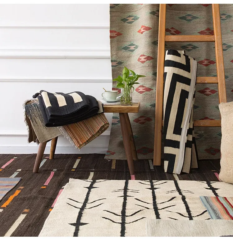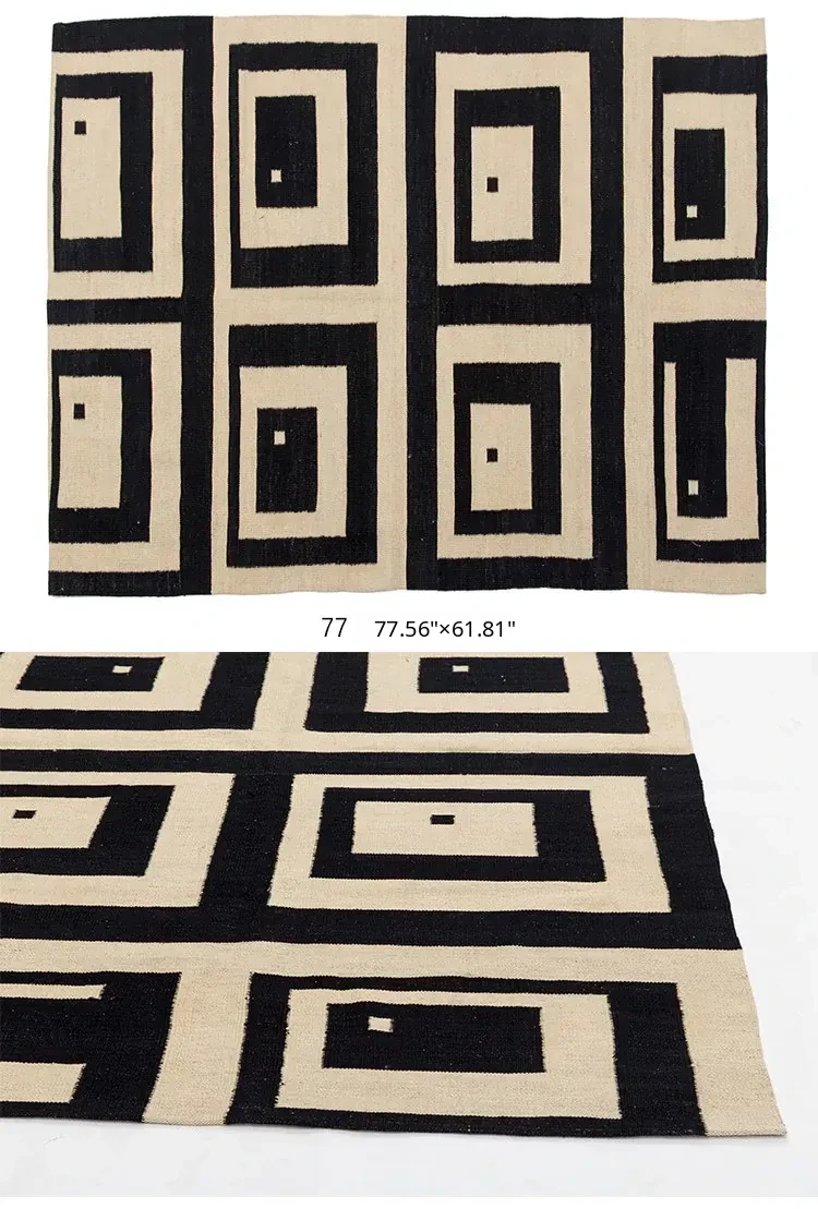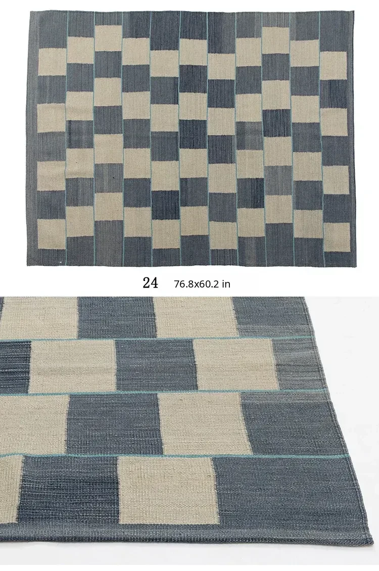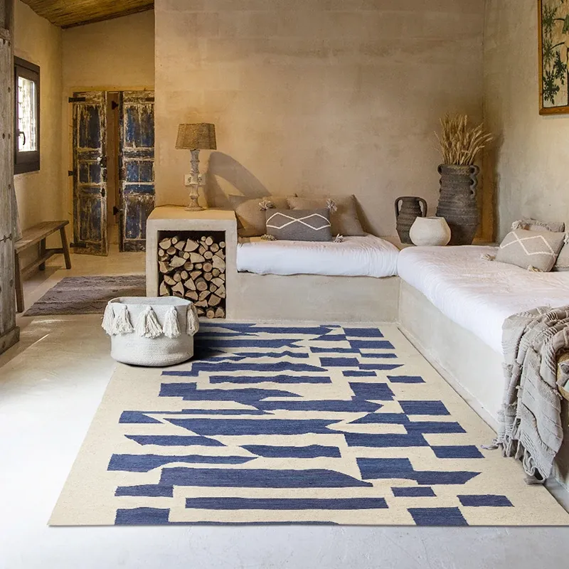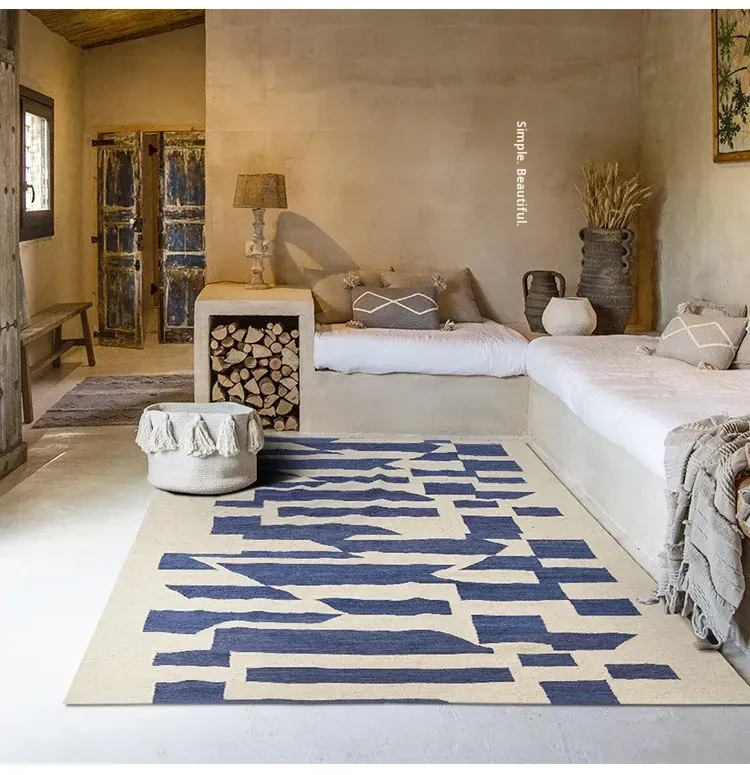 Handcrafted Pakistani Wool Rug - Modern Geometric Nordic Aesthetic Tapestry for Bedroom and Living Room, Embracing Wabi-Sabi Elegance