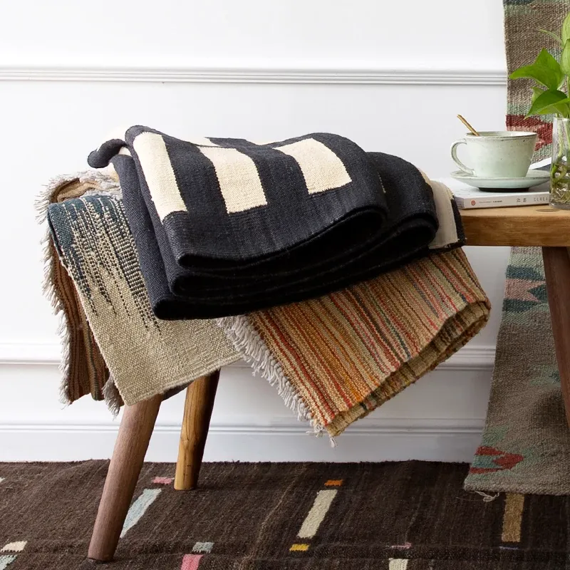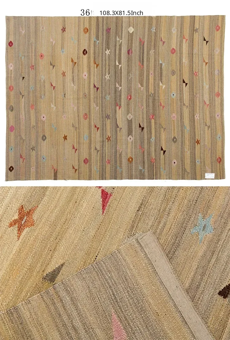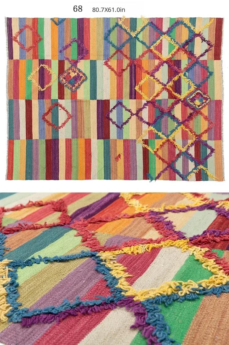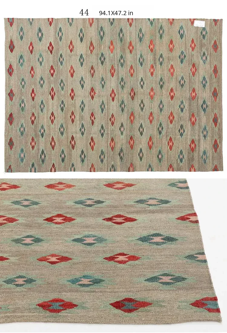 Handcrafted Pakistani Wool Rug - Modern Geometric Nordic Aesthetic Tapestry for Bedroom and Living Room, Embracing Wabi-Sabi Elegance