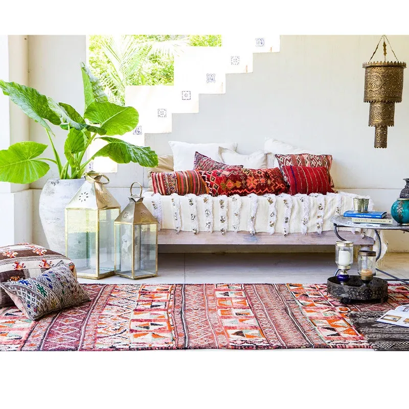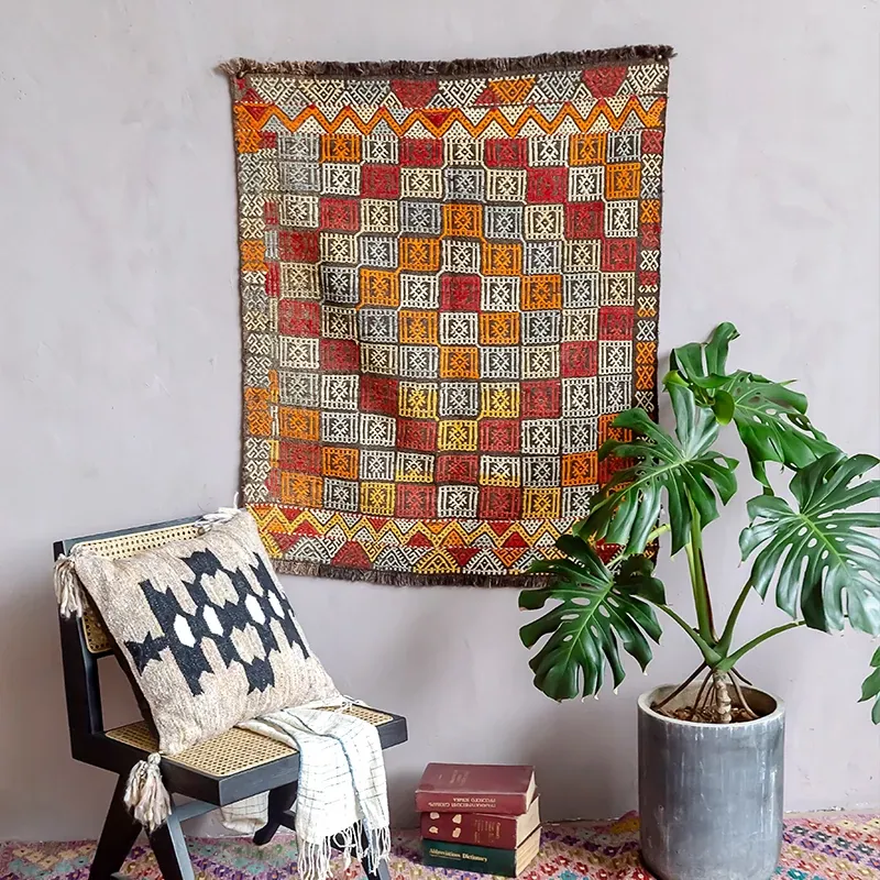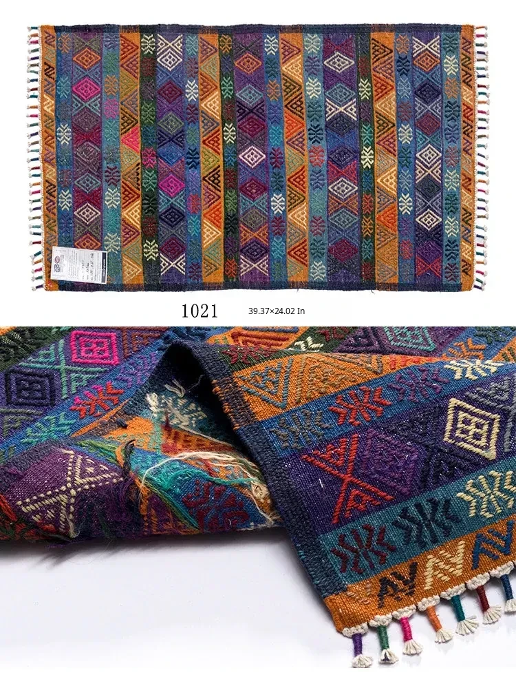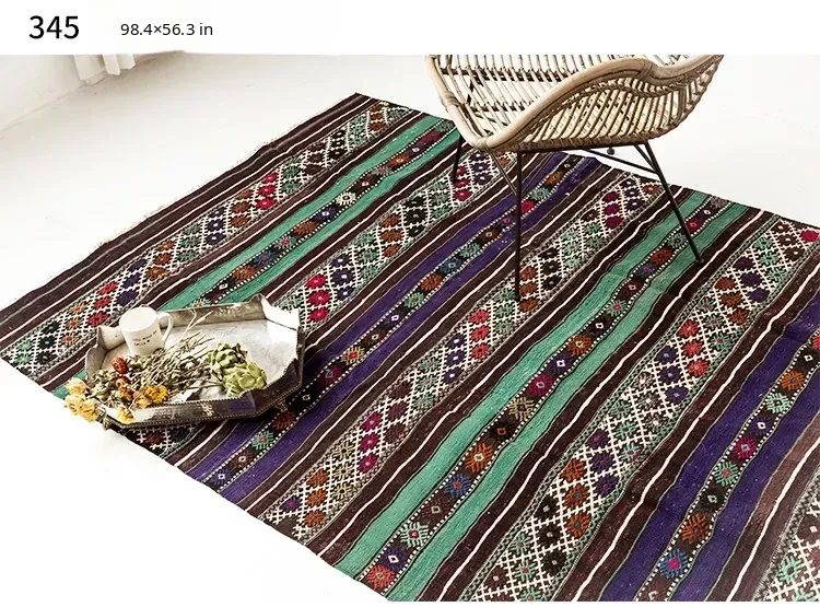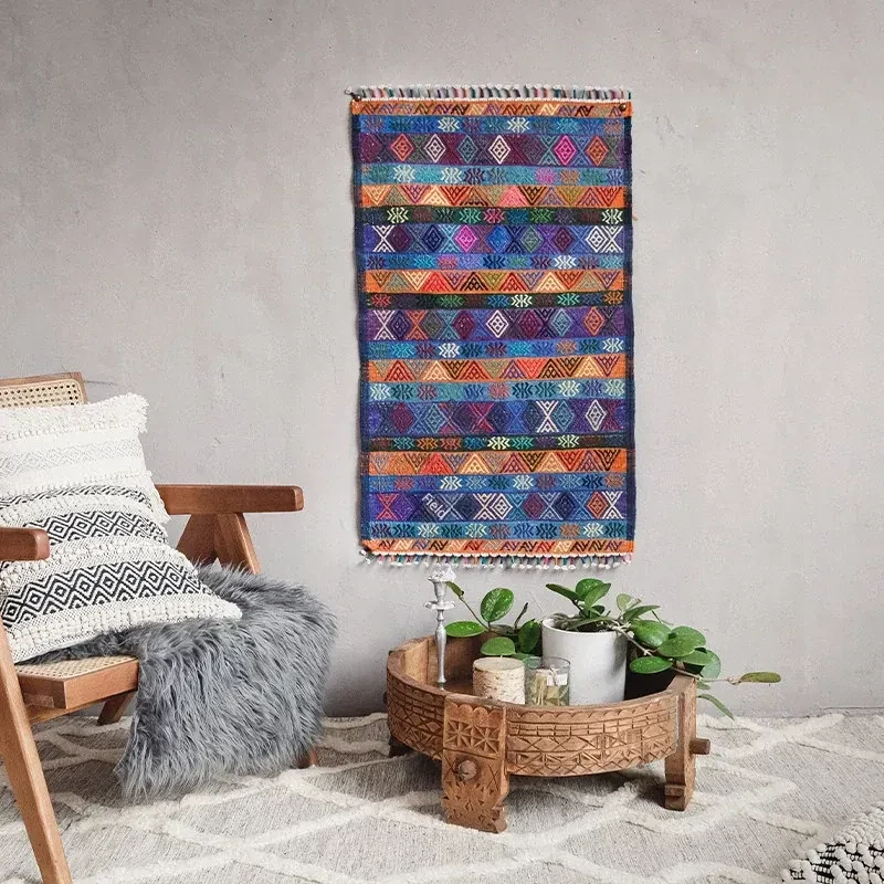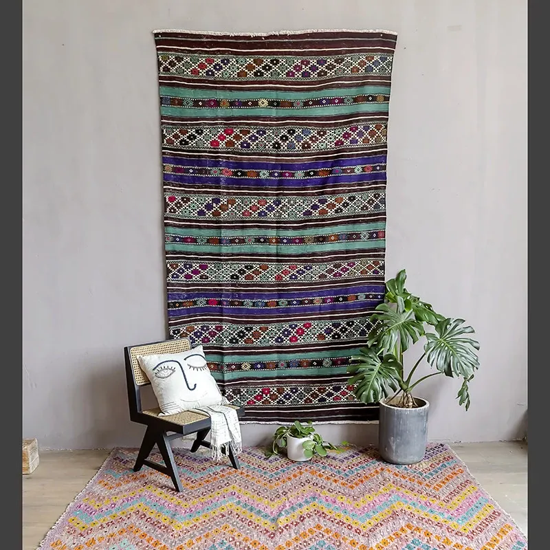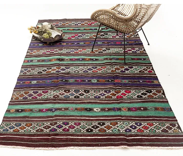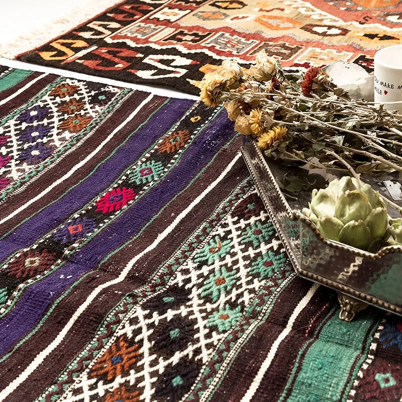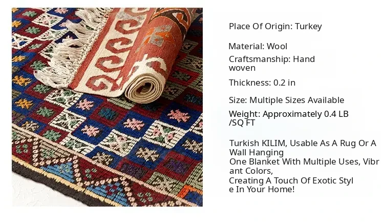 Handcrafted Turkish Bohemian Kilim Wool Rug - Exotic Wabi-Sabi Style Floor Mat and Wall Tapestry for Unique Home Decor