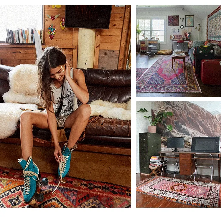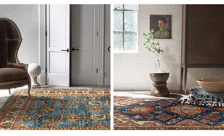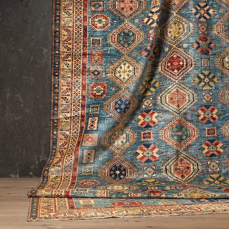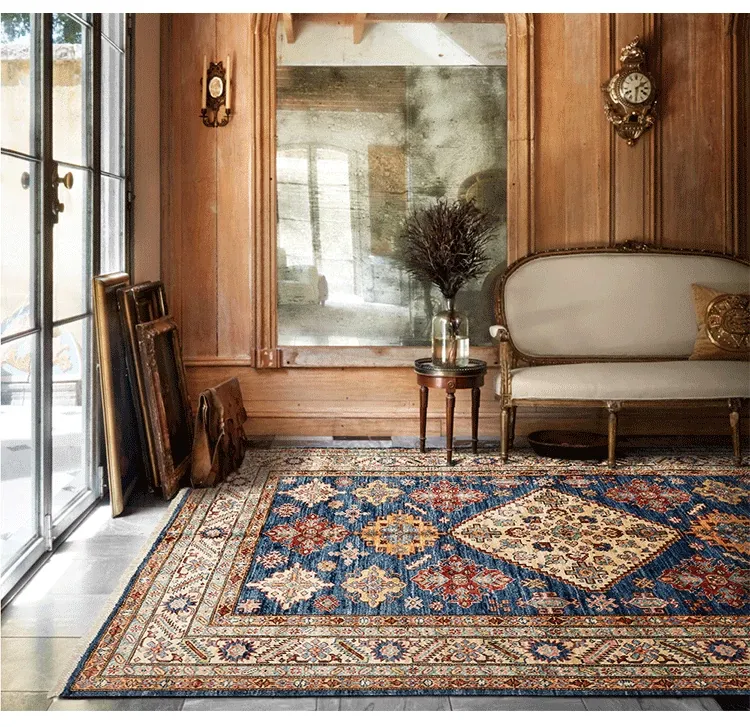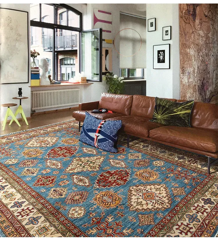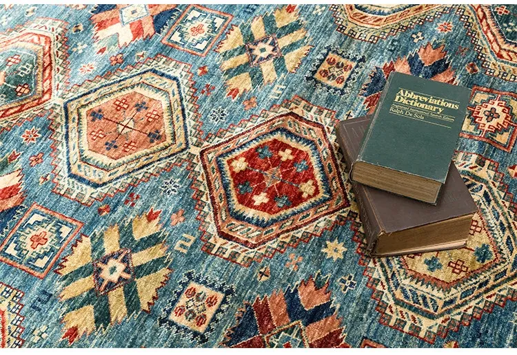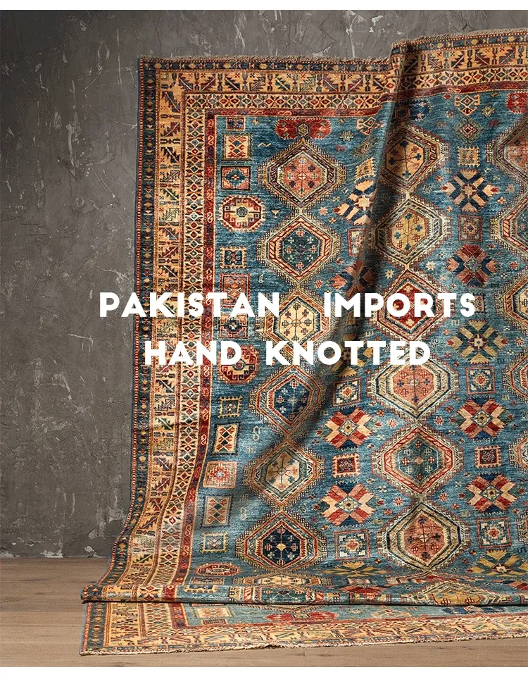 Handcrafted Vintage American Style Wool Area Rug from Pakistan - Unique Knotted Design for Living Room Collection, Bohemian Art Tapestry Rug
