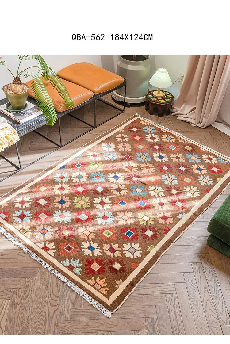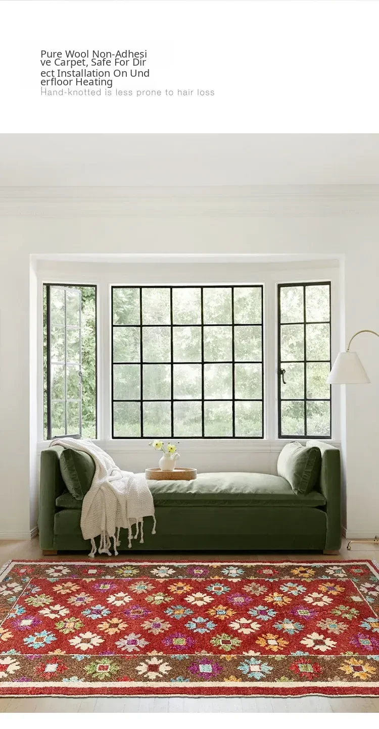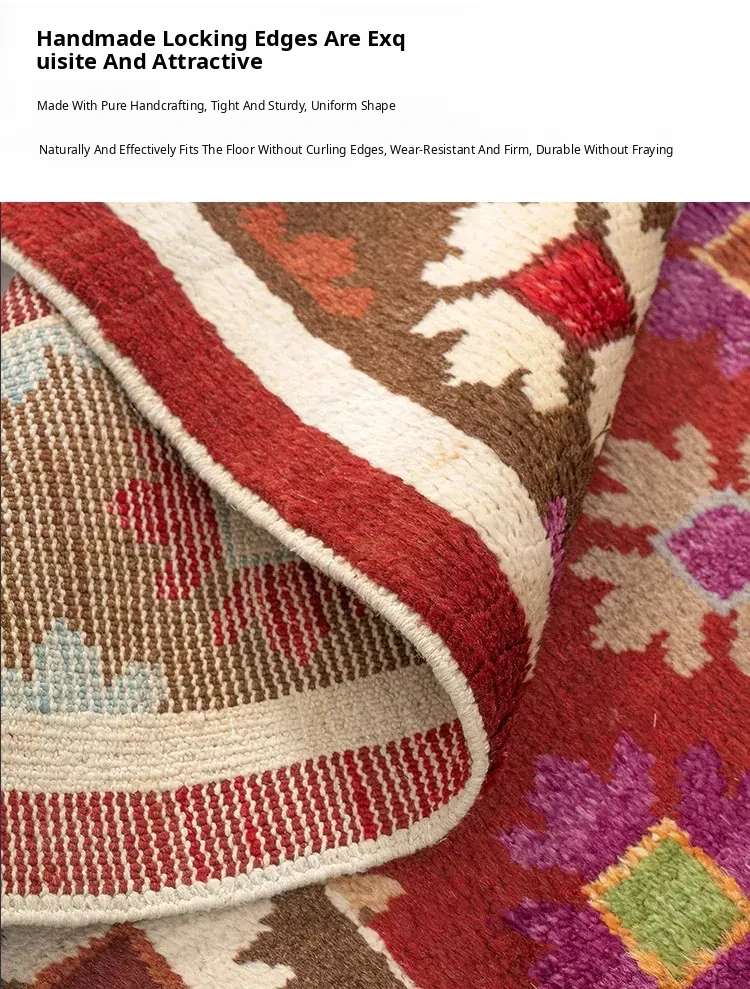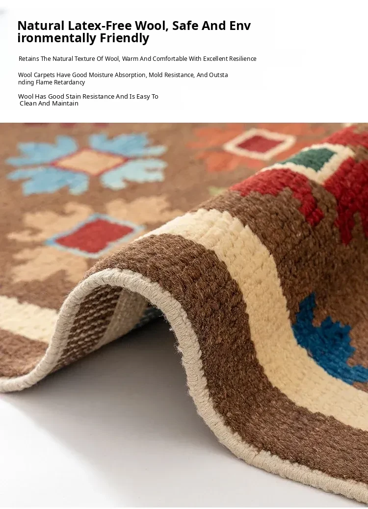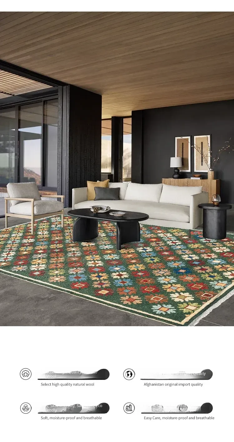 Handmade Wool Carpet - Imported, Glue-Free & Formaldehyde-Free, Bohemian Style for American Living Rooms - Elevate Your Space with High-End Visual Appeal