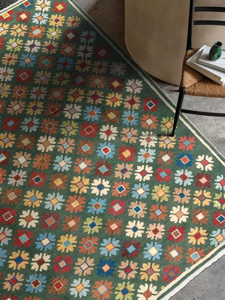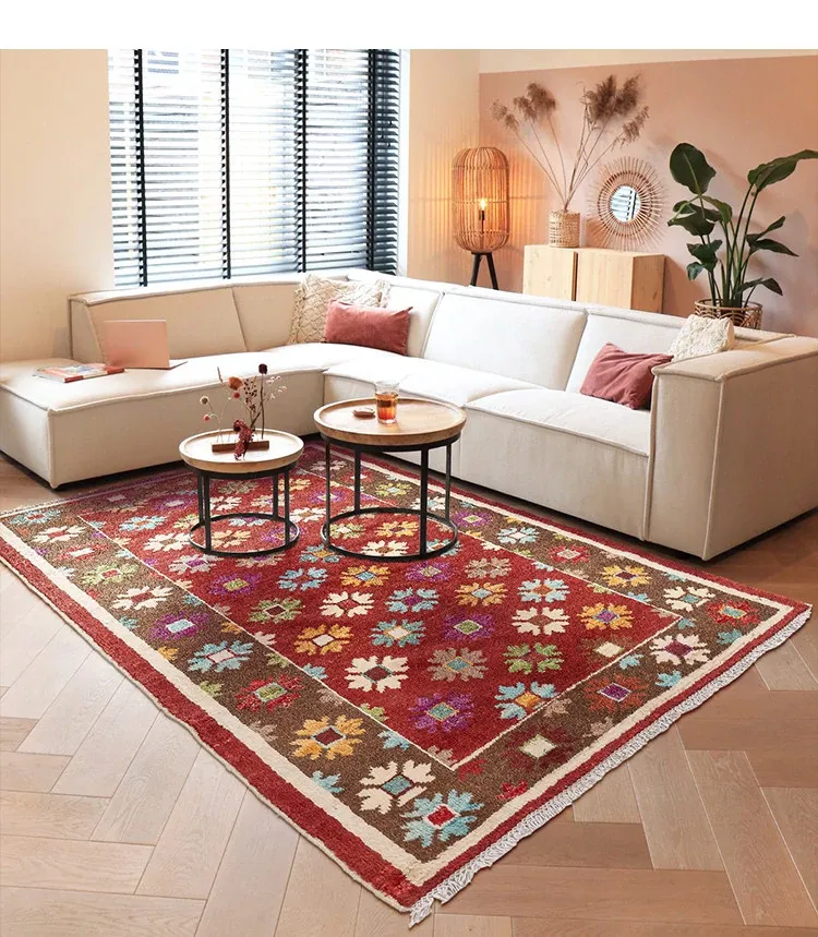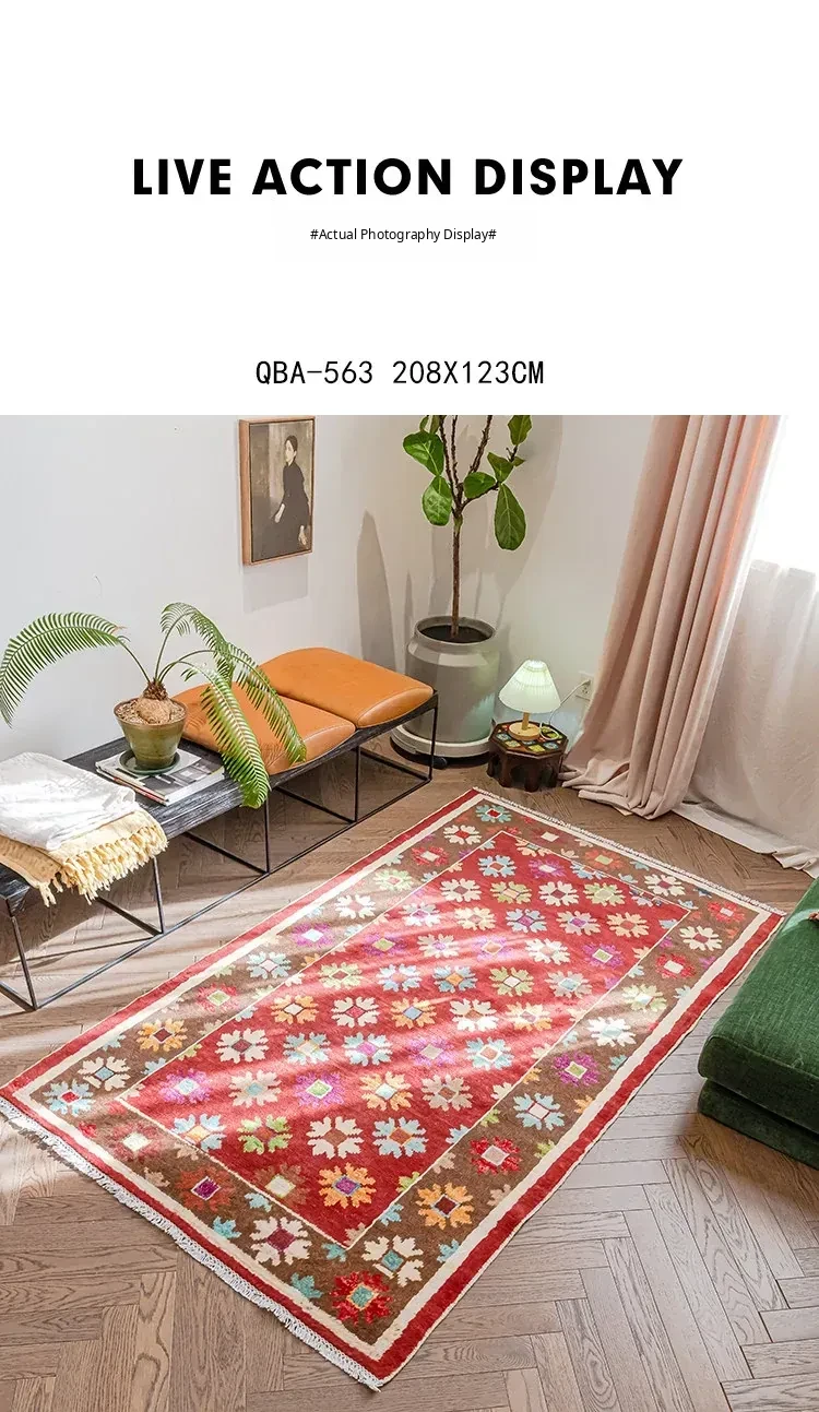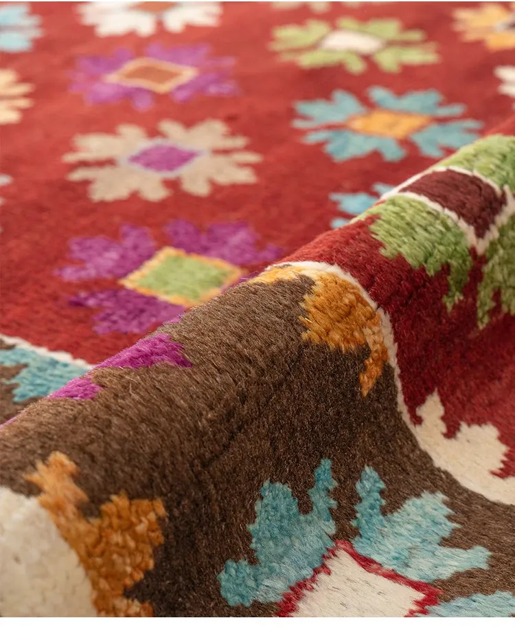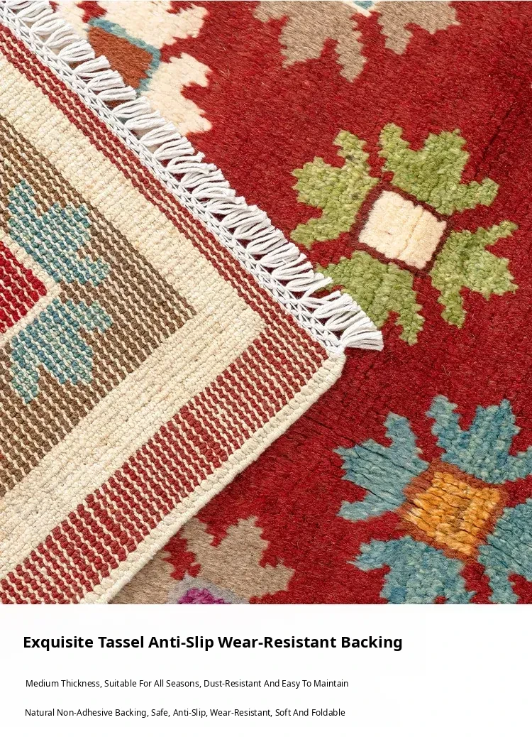 Handmade Wool Carpet - Imported, Glue-Free & Formaldehyde-Free, Bohemian Style for American Living Rooms - Elevate Your Space with High-End Visual Appeal