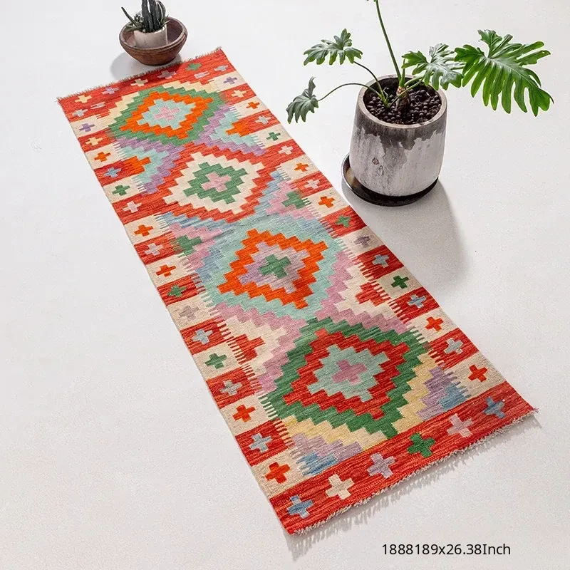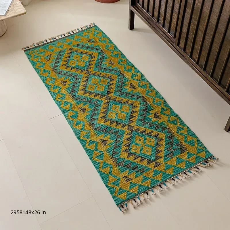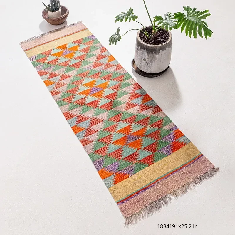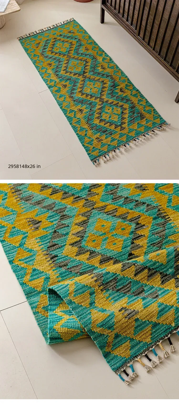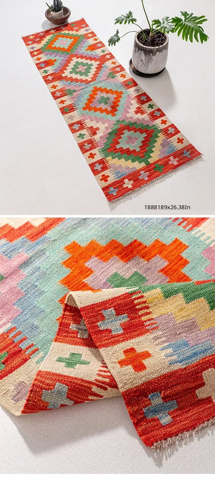 Handmade Wool Kilim Runner Rug from Pakistan - Perfect for Entryways, Bedrooms, and Aisles - Ideal for Weddings and Special Occasions