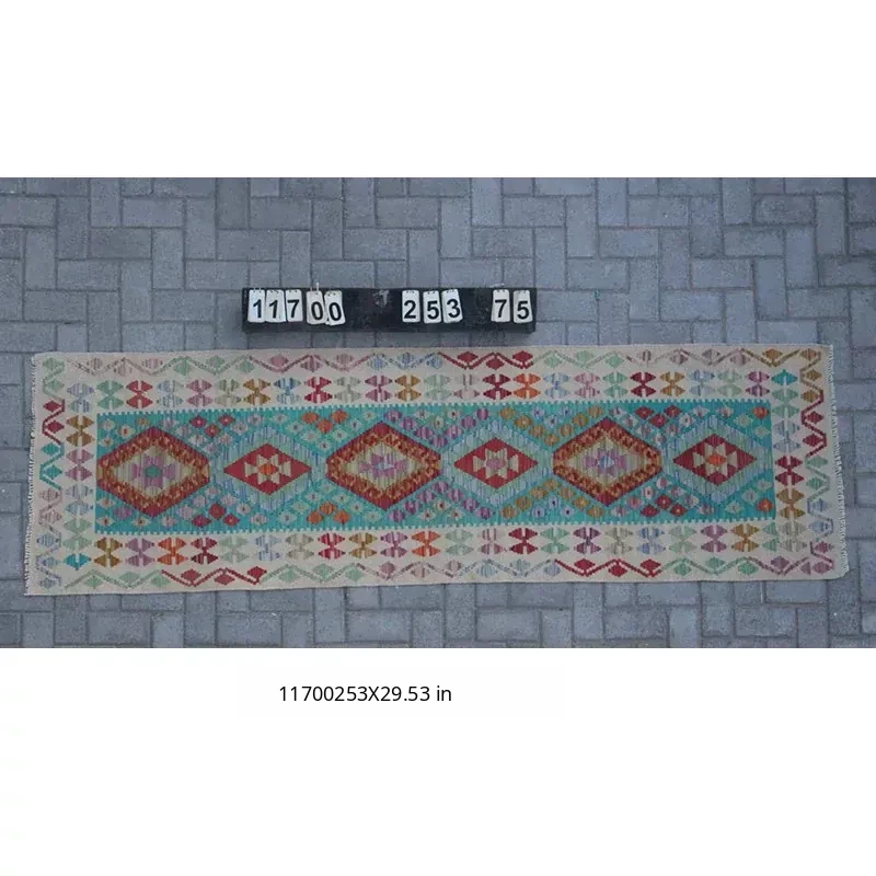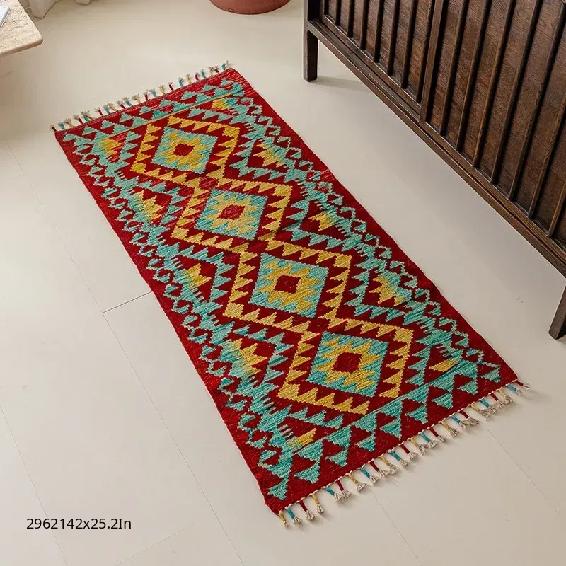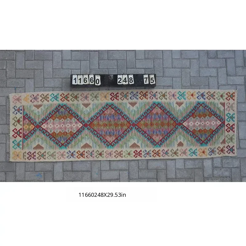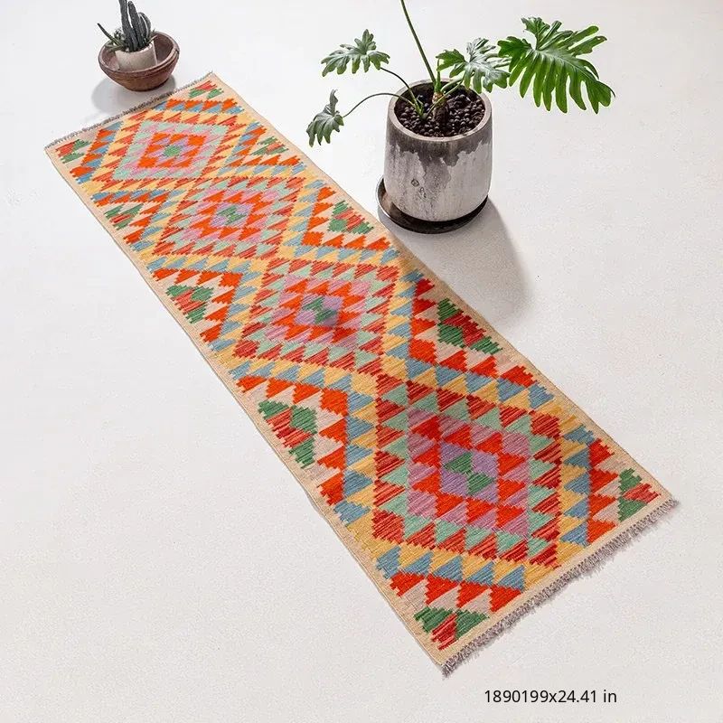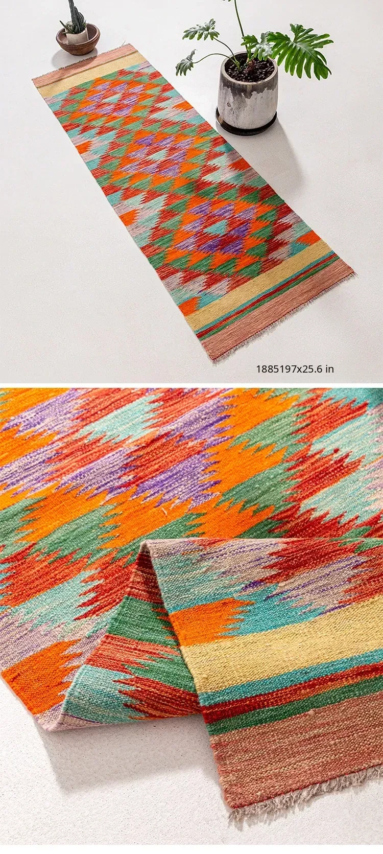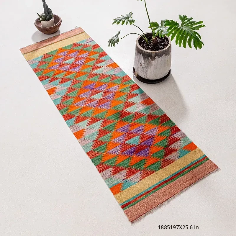Handmade Wool Kilim Runner Rug from Pakistan - Perfect for Entryways, Bedrooms, and Aisles - Ideal for Weddings and Special Occasions