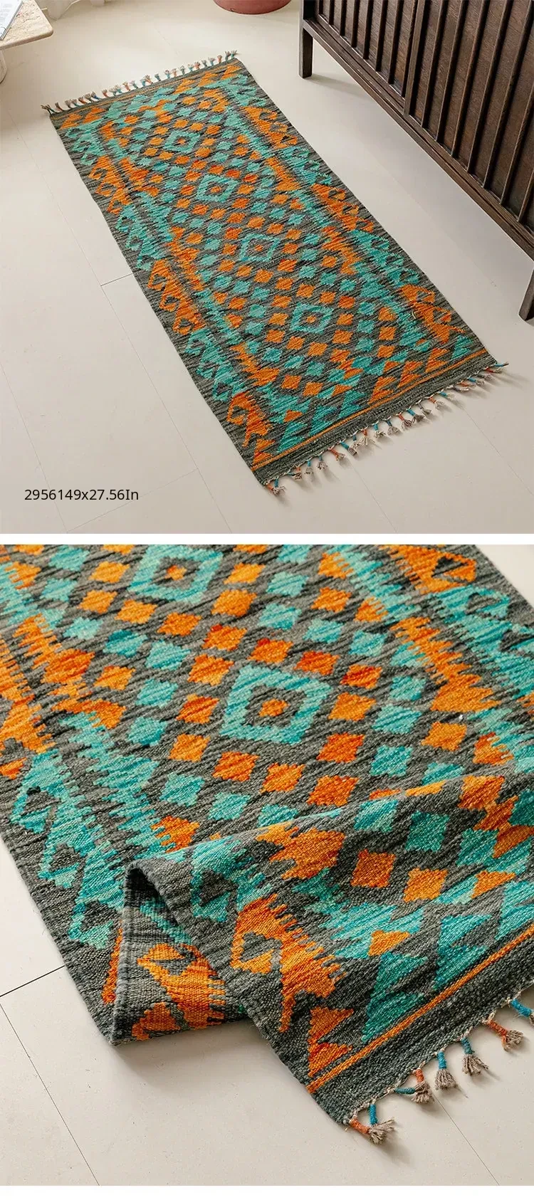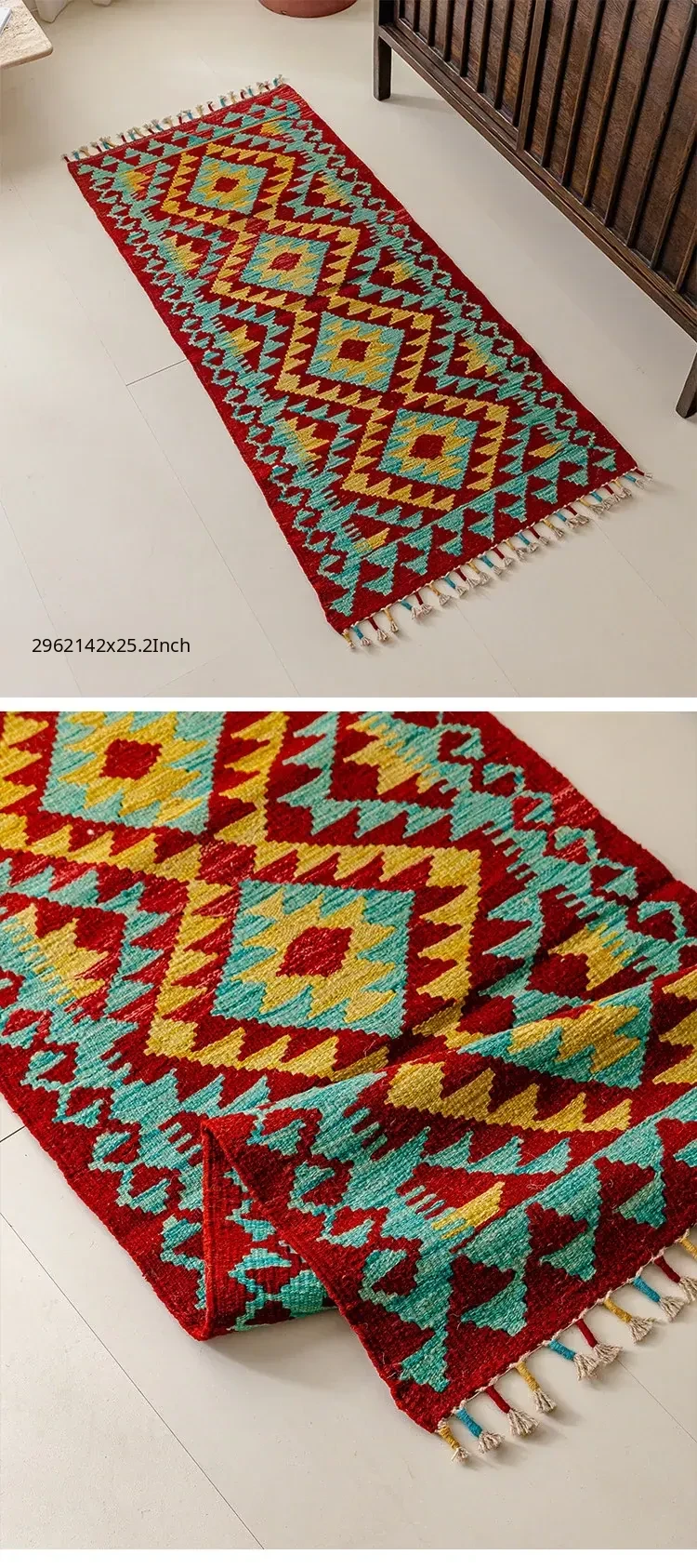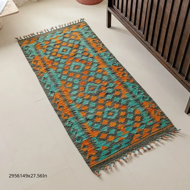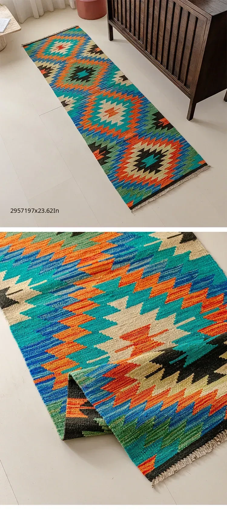 Handmade Wool Kilim Runner Rug from Pakistan - Perfect for Entryways, Bedrooms, and Aisles - Ideal for Weddings and Special Occasions