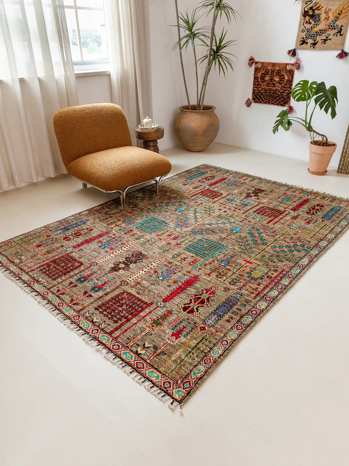 Handwoven Afghan Wool Area Rug - Vintage Green Tree of Life Design for Living Room - Exquisite Craftsmanship and Timeless Style