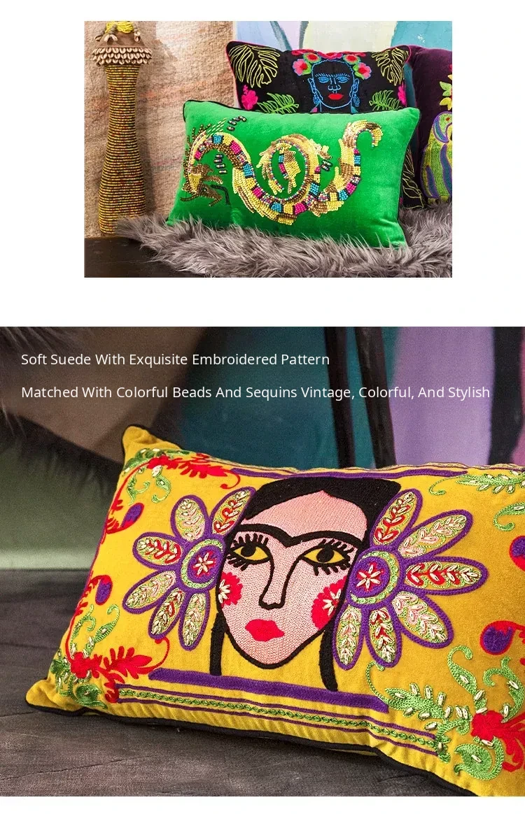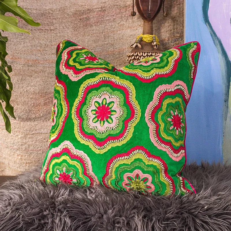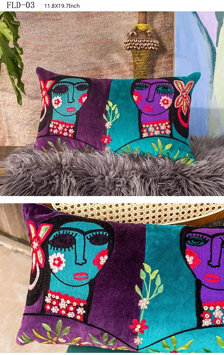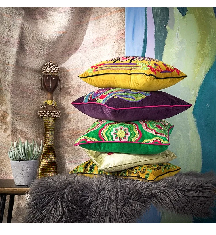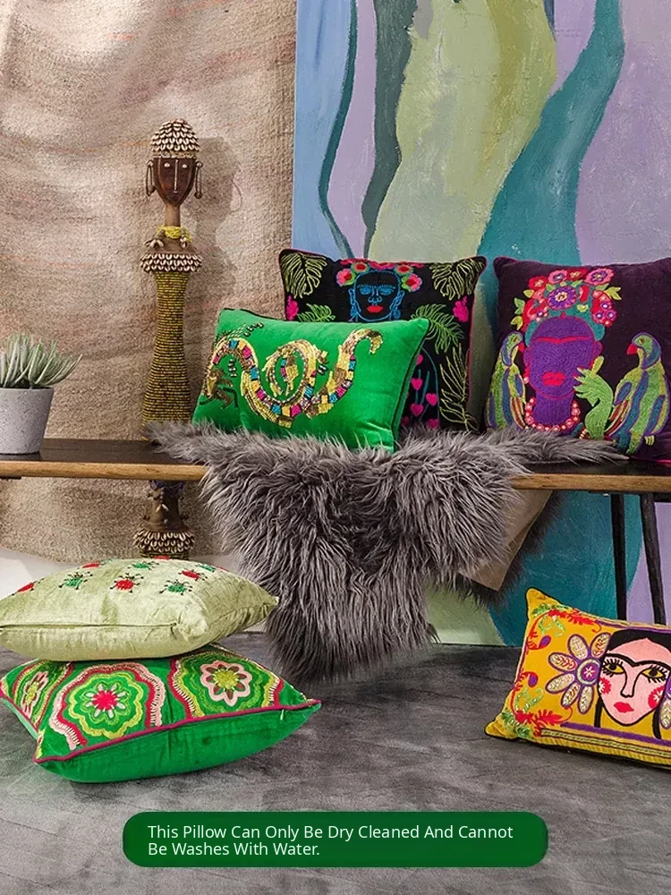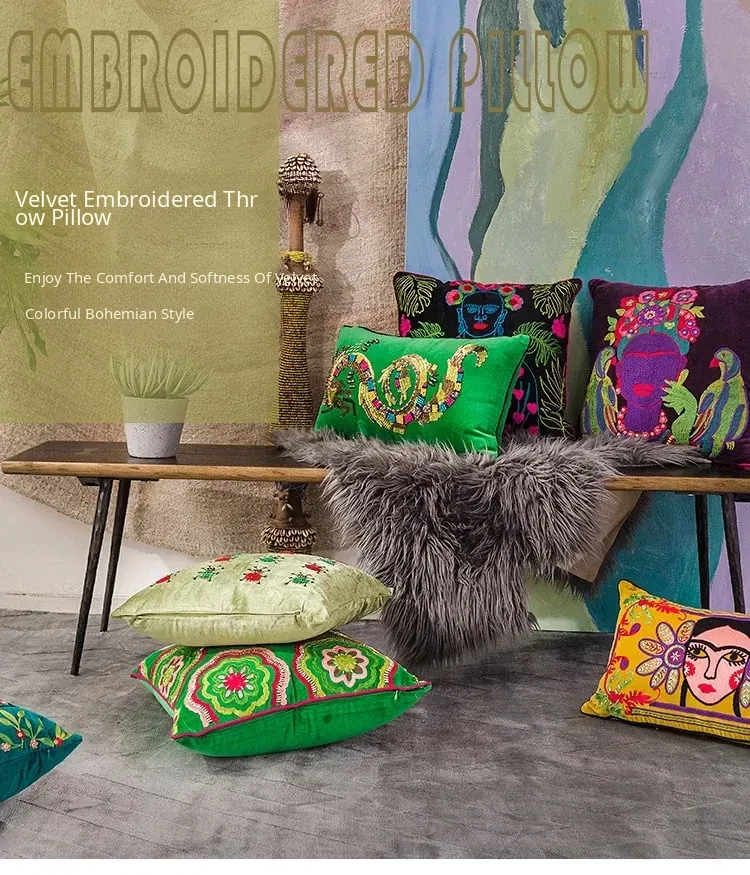 Imported Artistic Velvet Embroidered Throw Pillows - Creative Decorative Cushions for Sofa, Living Room, Bedroom, and Bedside. Add a Touch of Elegance and Comfort to Your Space!