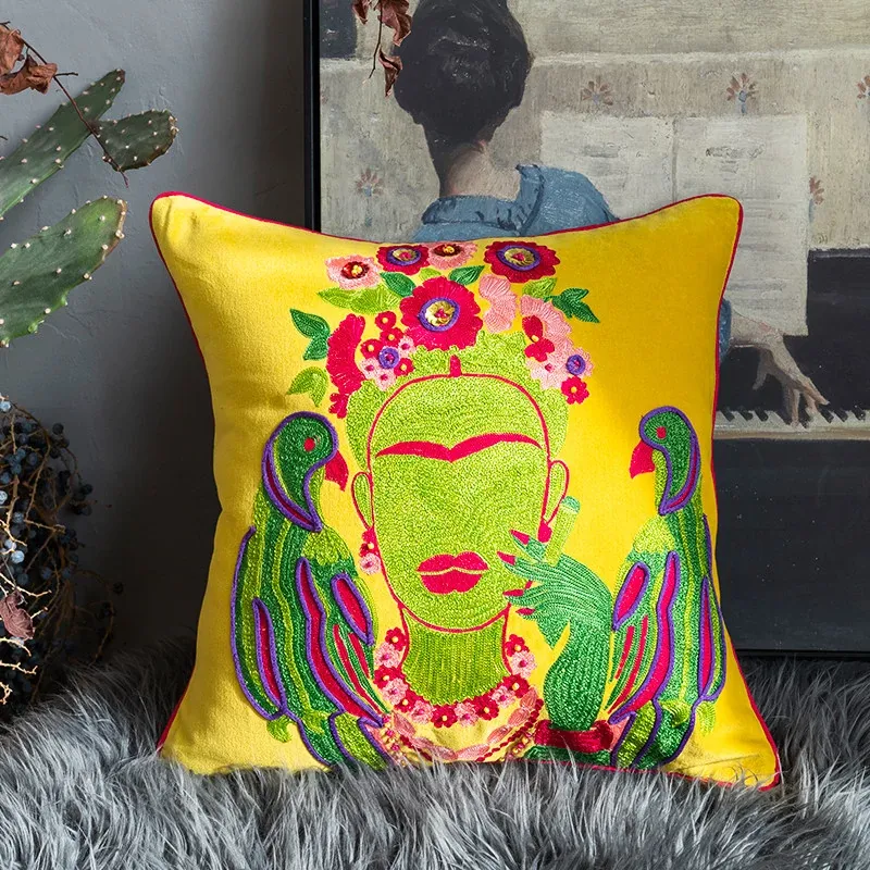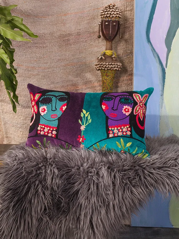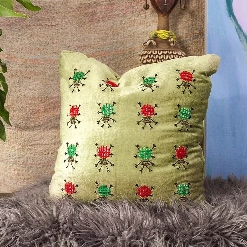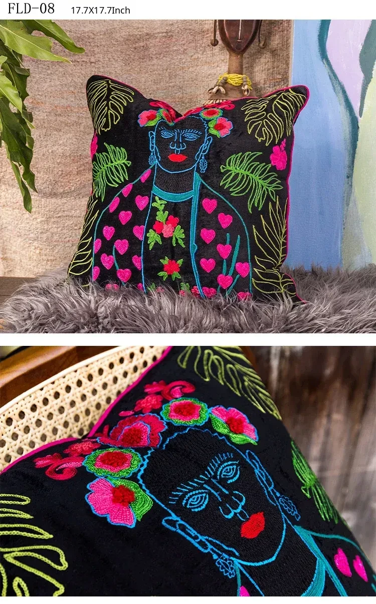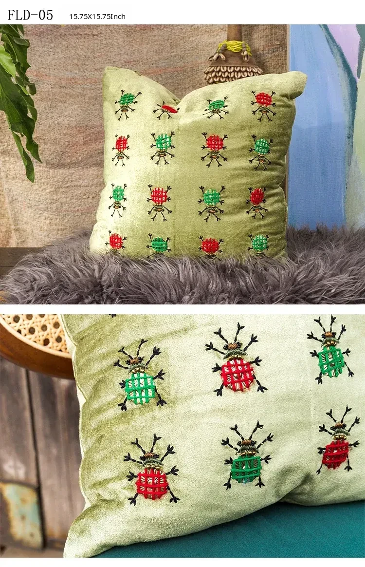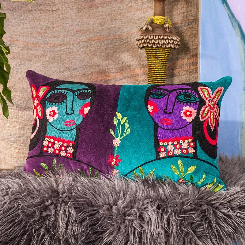 Imported Artistic Velvet Embroidered Throw Pillows - Creative Decorative Cushions for Sofa, Living Room, Bedroom, and Bedside. Add a Touch of Elegance and Comfort to Your Space!