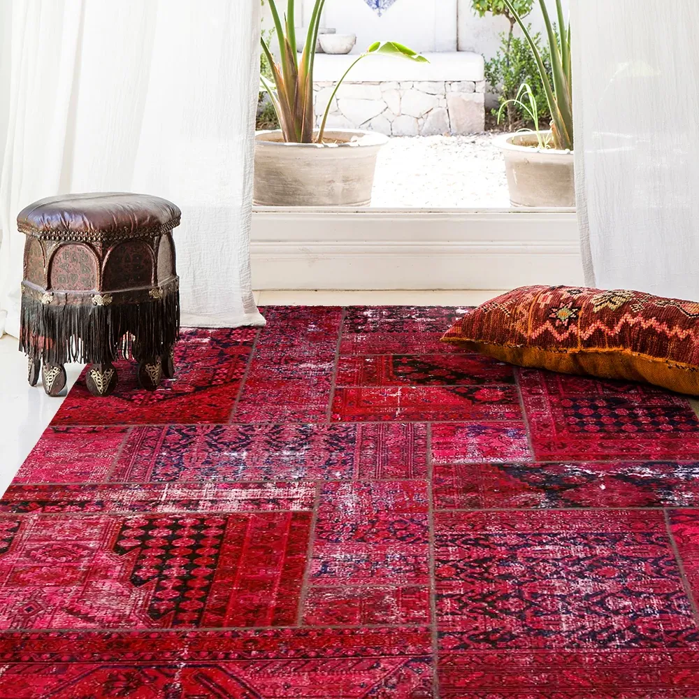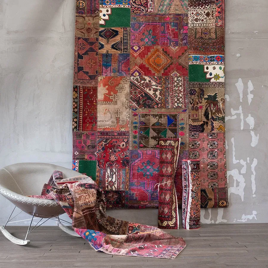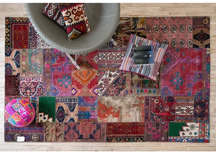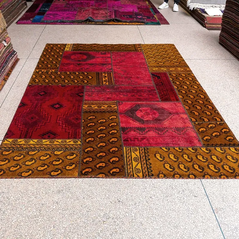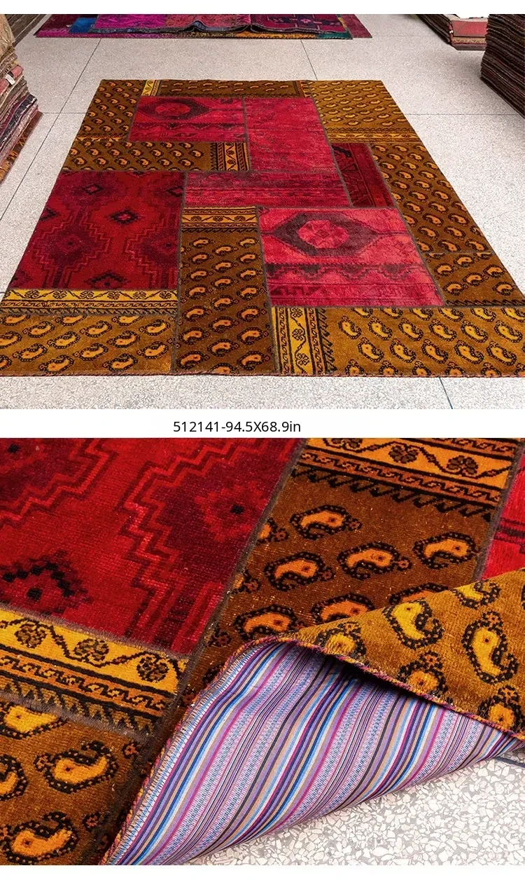 Imported Classic Bohemian Kilim Patchwork Handcrafted Wool Knotted Area Rug - Perfect for Adding a Touch of Elegance to Your Home Décor!
