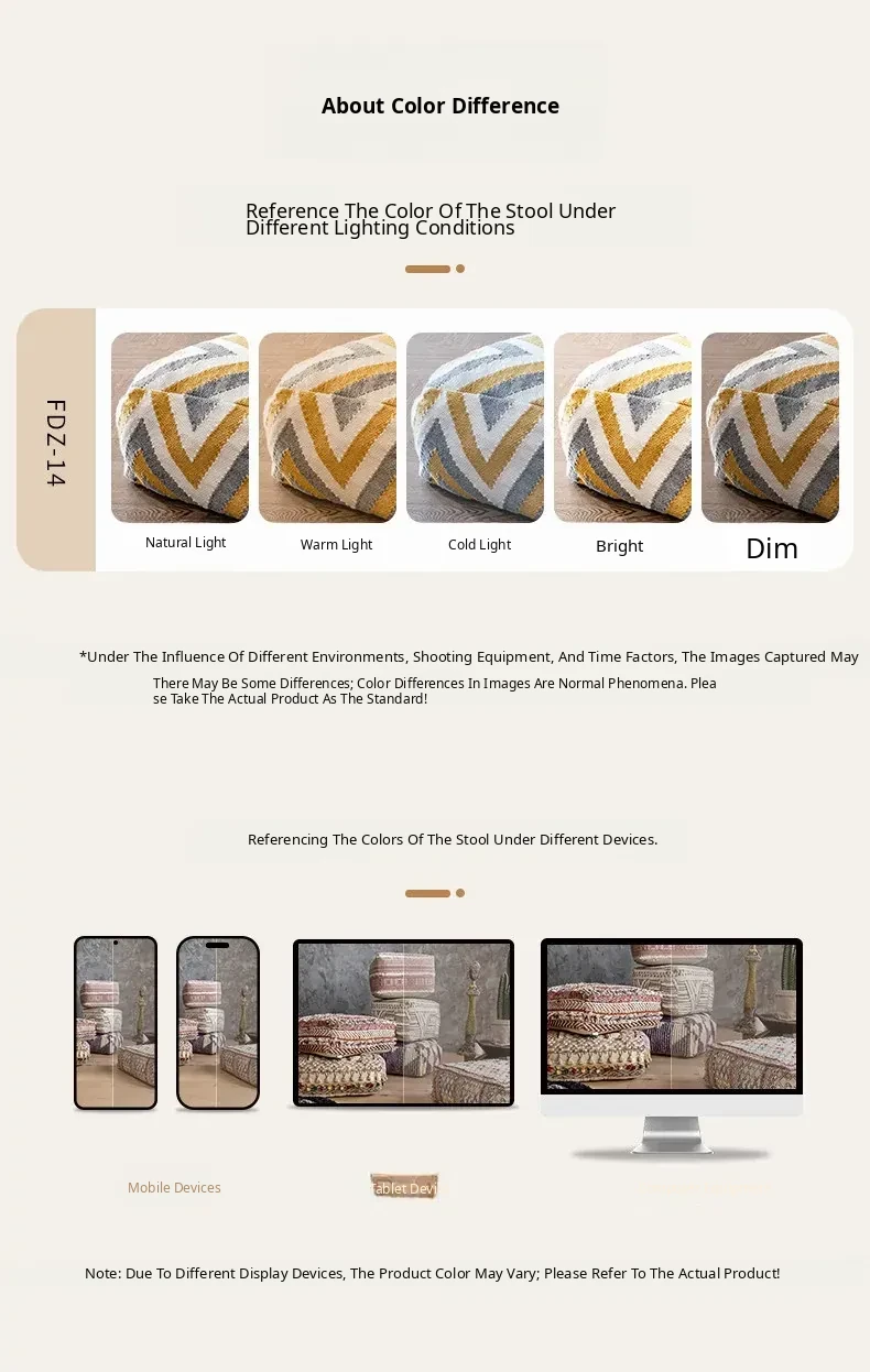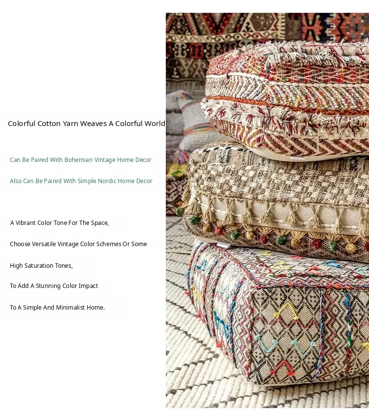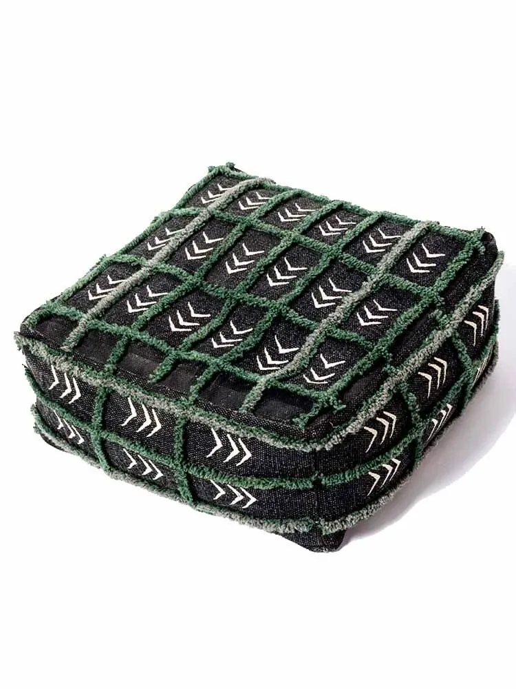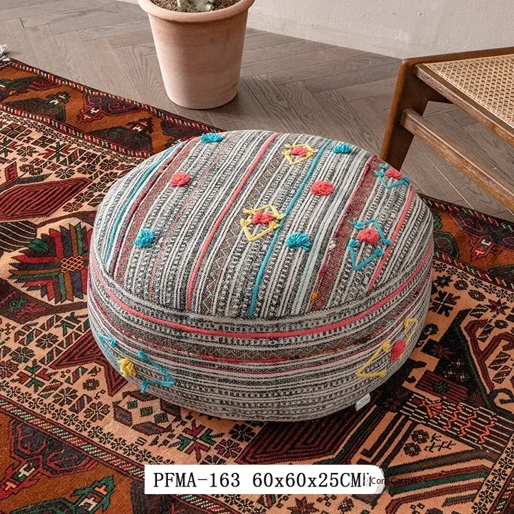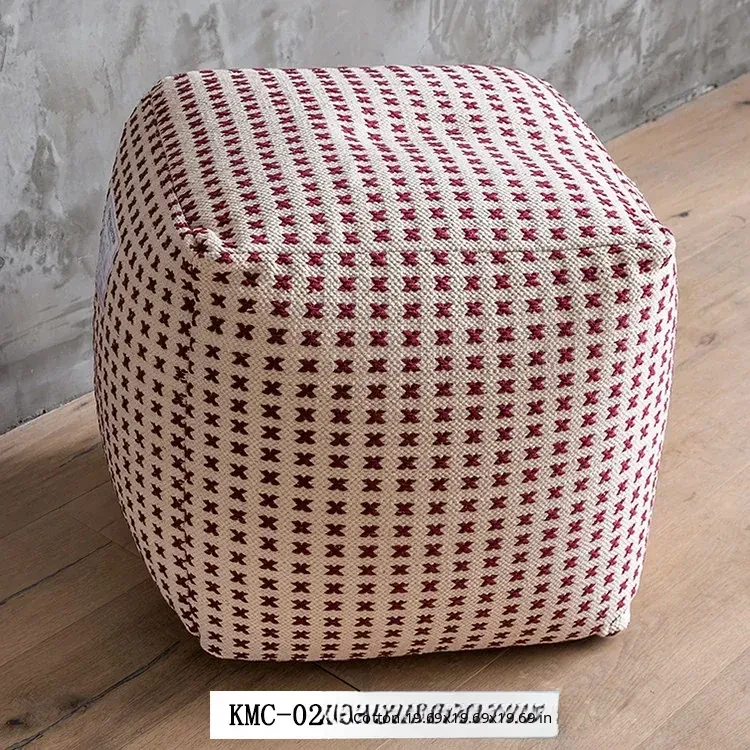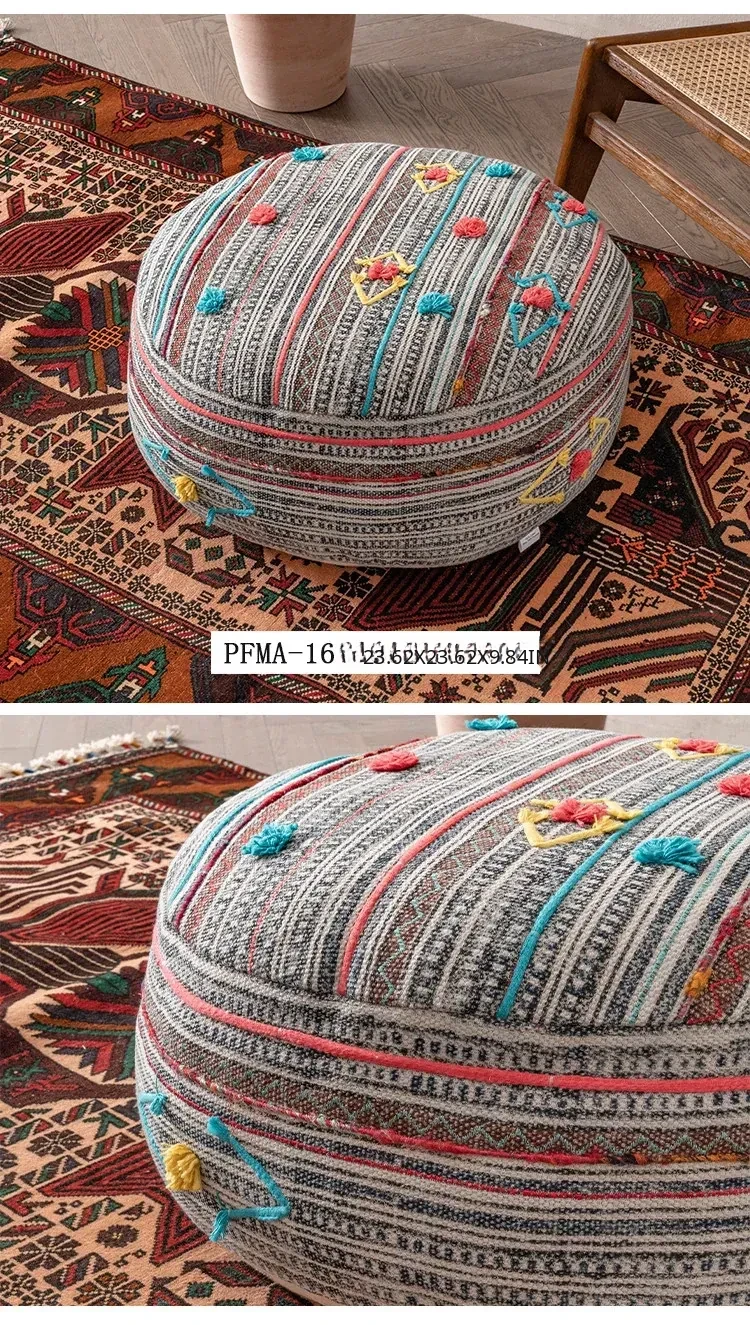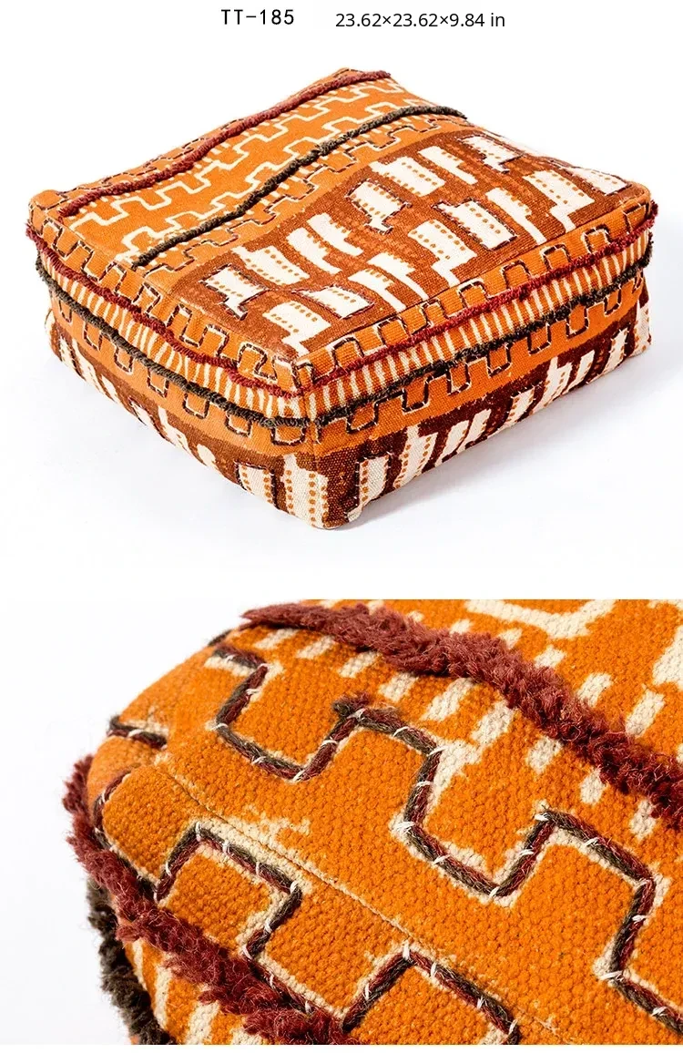 Imported from India: Trendy Nordic Style Low Stool with Ethnic Hand-Embroidered Design - Perfect for Home Décor and Comfortable Footrest.