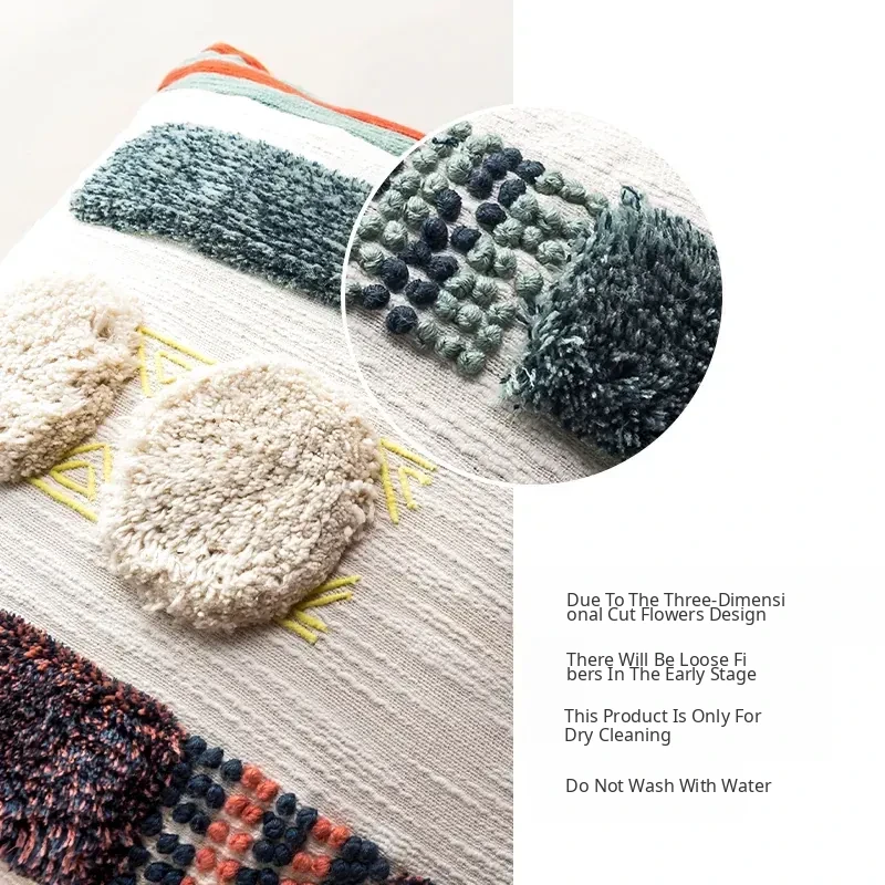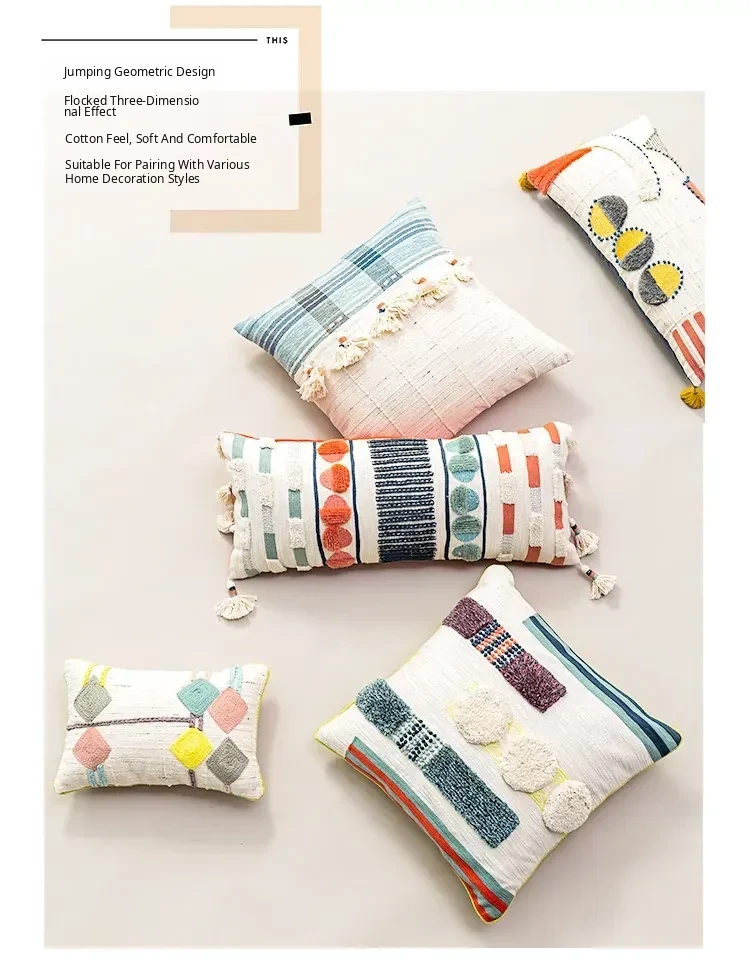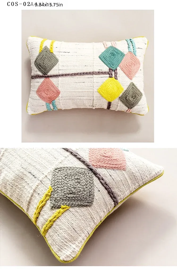 Imported Handmade Floral Embroidered Pillow - Nordic Ins Creative Design Sofa Cushion, Long Car Lumbar Support Pillow, Stylish Waist Pillow for Comfort and Style