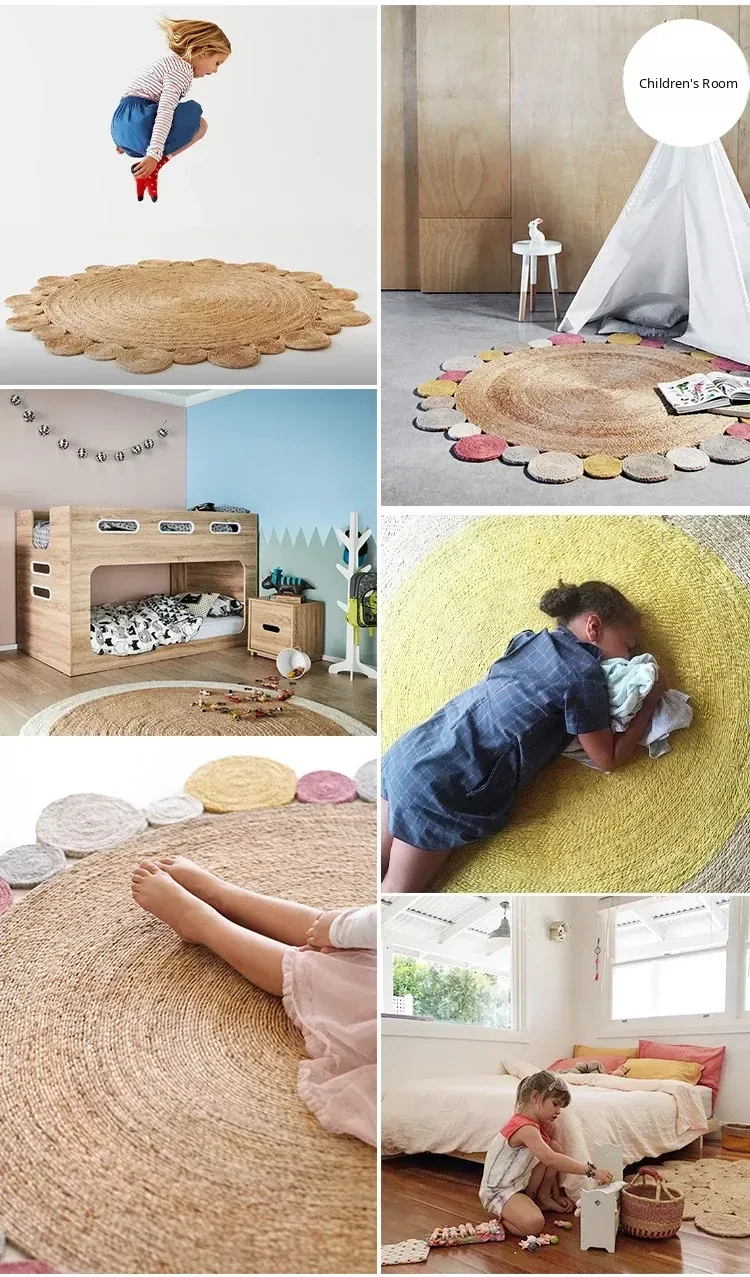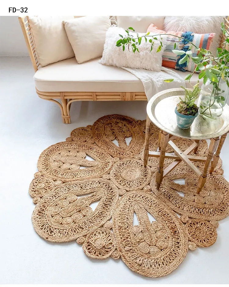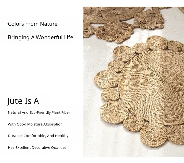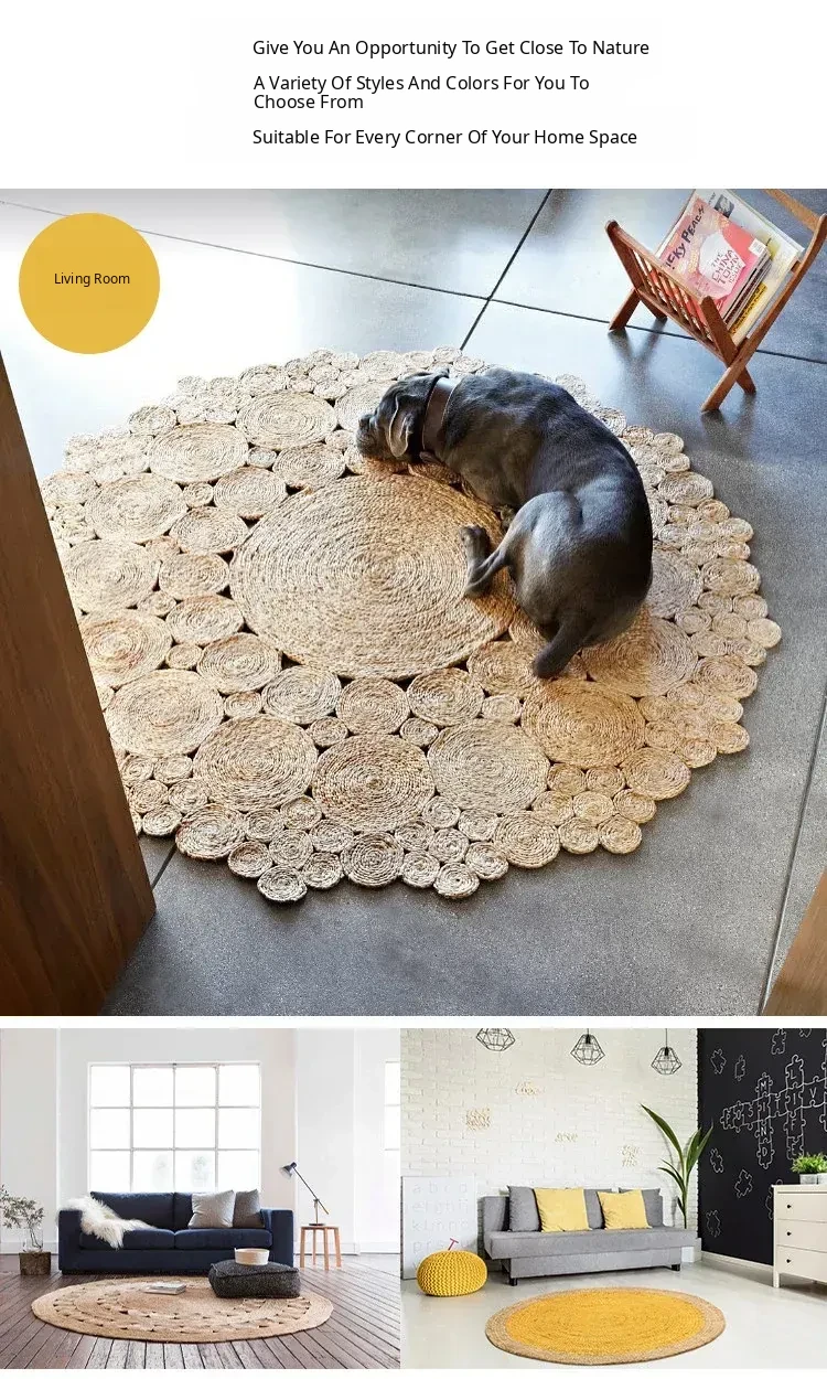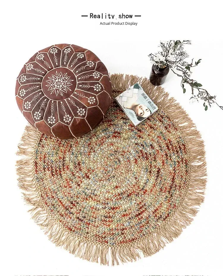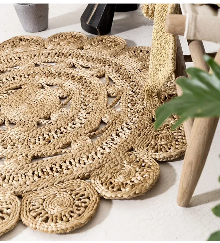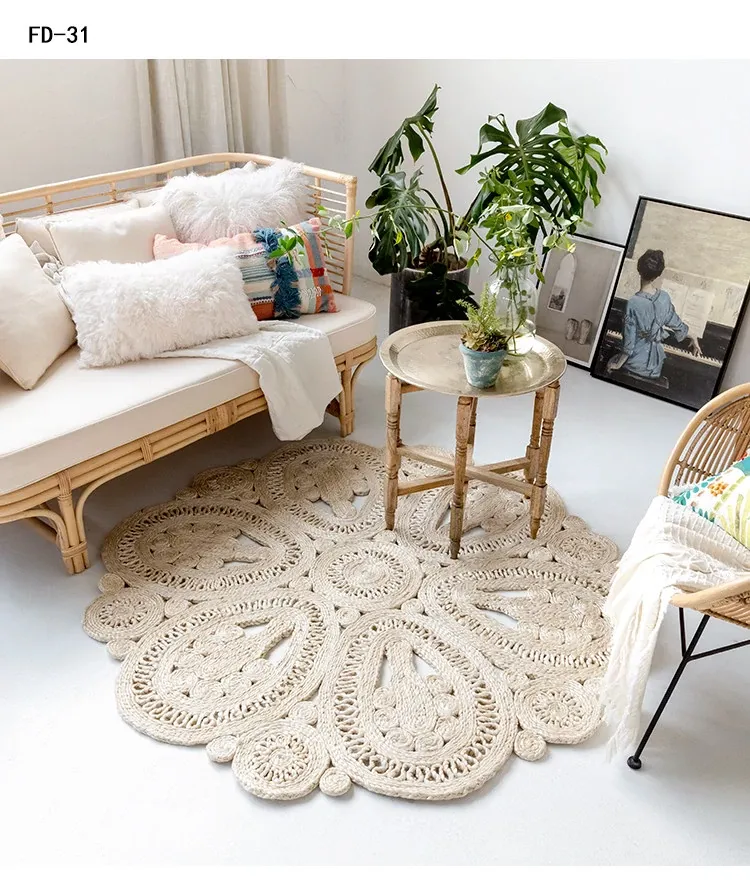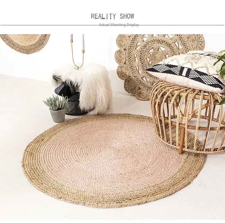 Imported Handmade Jute Rustic Farmhouse Area Rug for Living Room - Scandinavian Minimalist Design, Perfect as Coffee Table Mat, Door Mat, or Kids' Carpet and Tapestry.