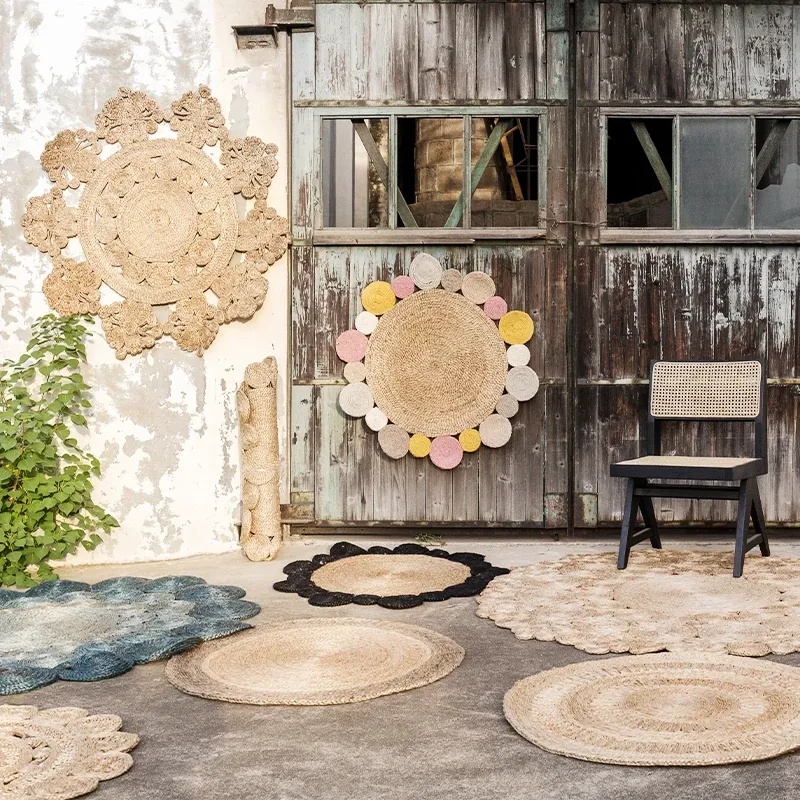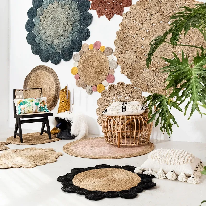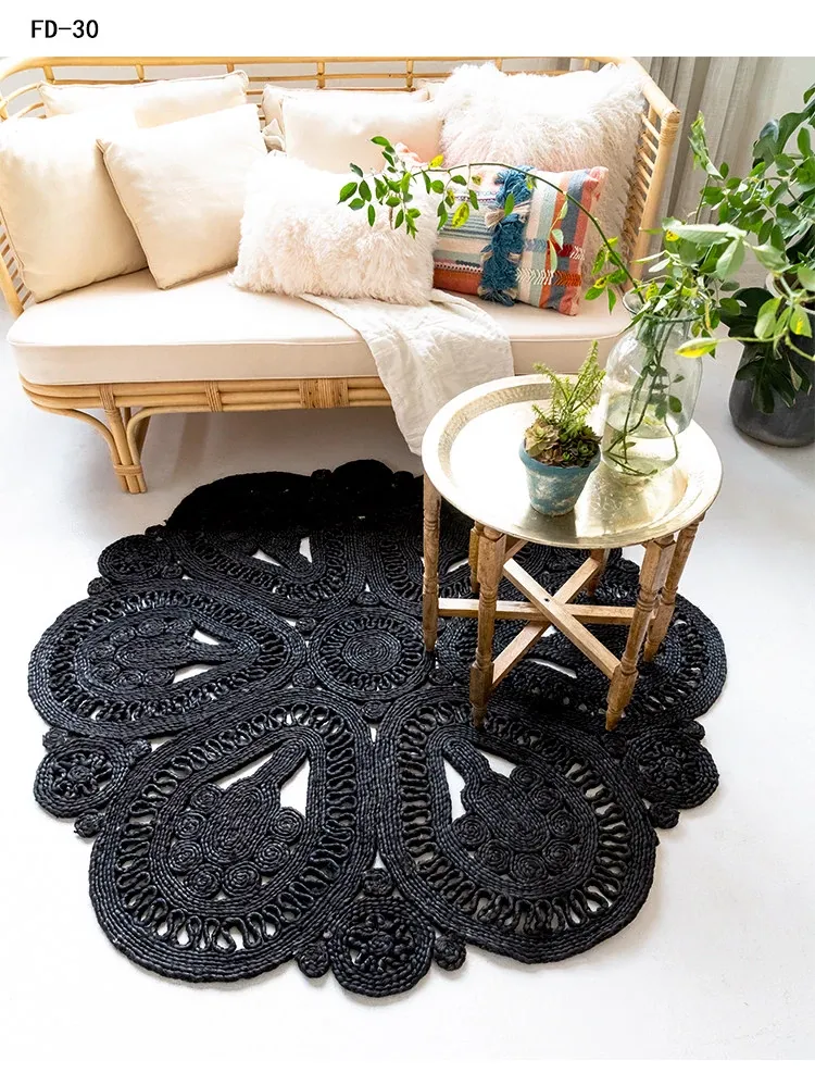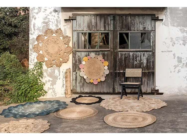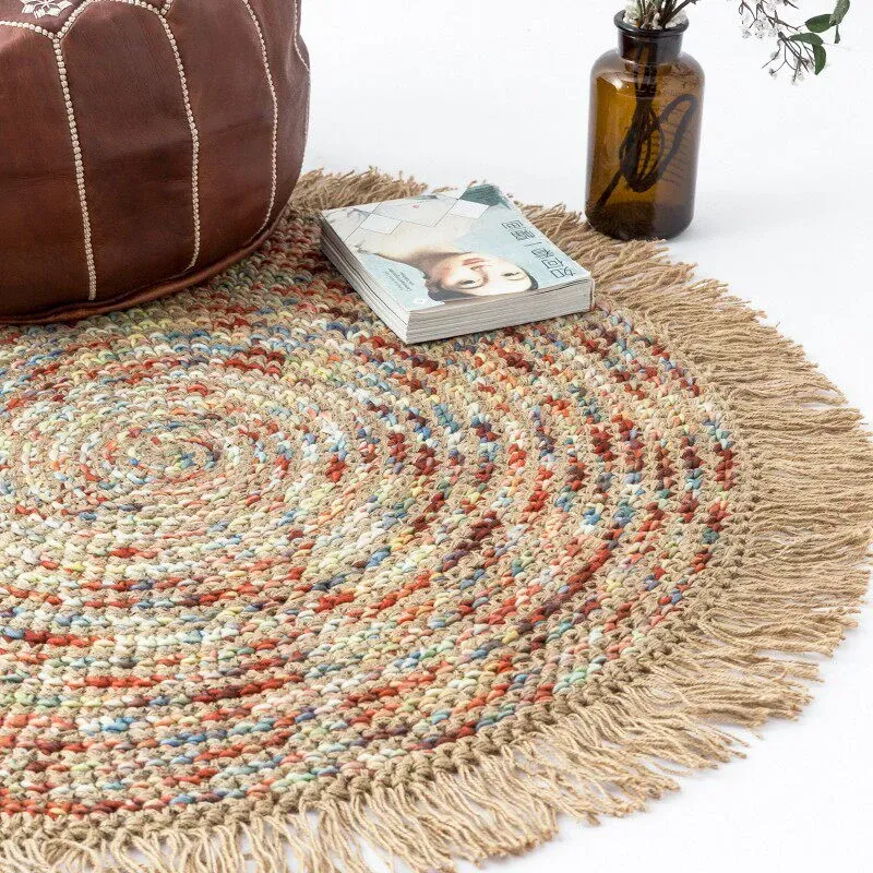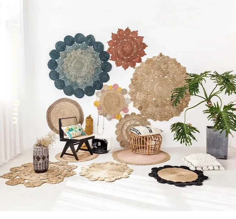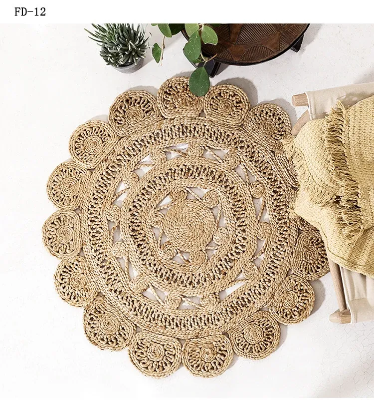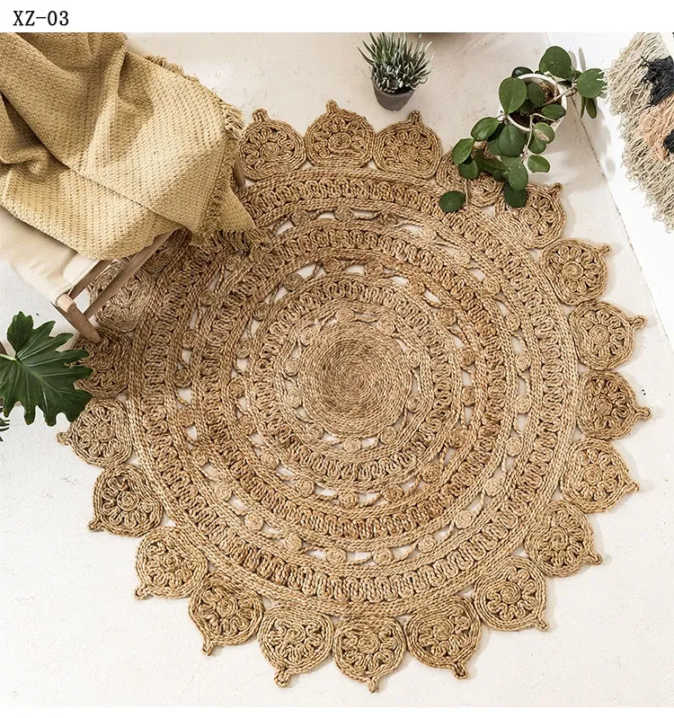 Imported Handmade Jute Rustic Farmhouse Area Rug for Living Room - Scandinavian Minimalist Design, Perfect as Coffee Table Mat, Door Mat, or Kids' Carpet and Tapestry.