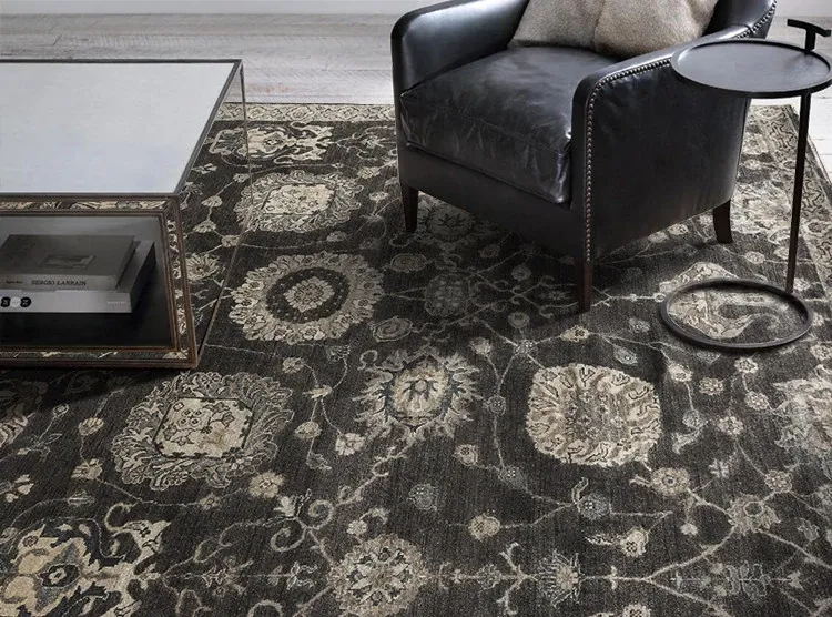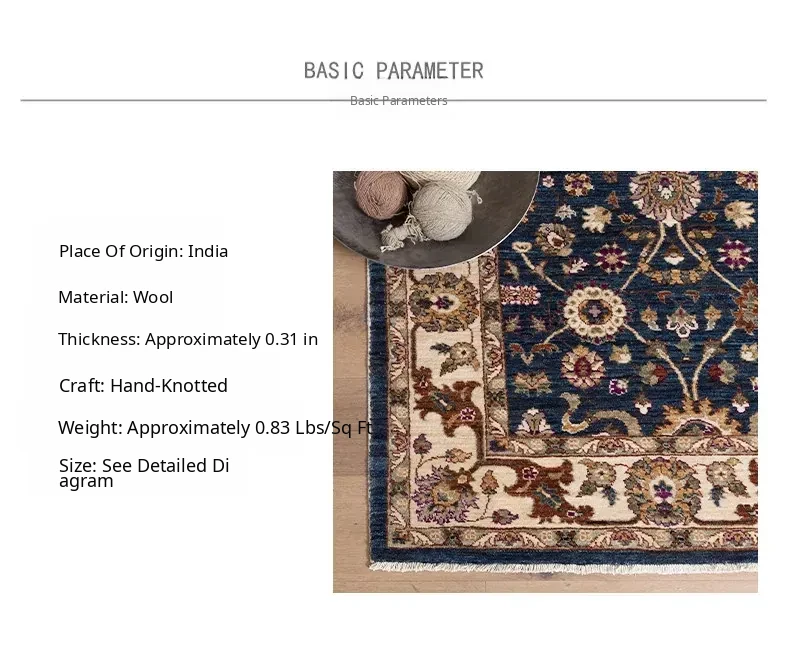 Imported Handmade Knotted Wool Luxury Area Rug - Large Palace-Style Carpet for Villas, Perfect for American and European Living Rooms and Bedrooms