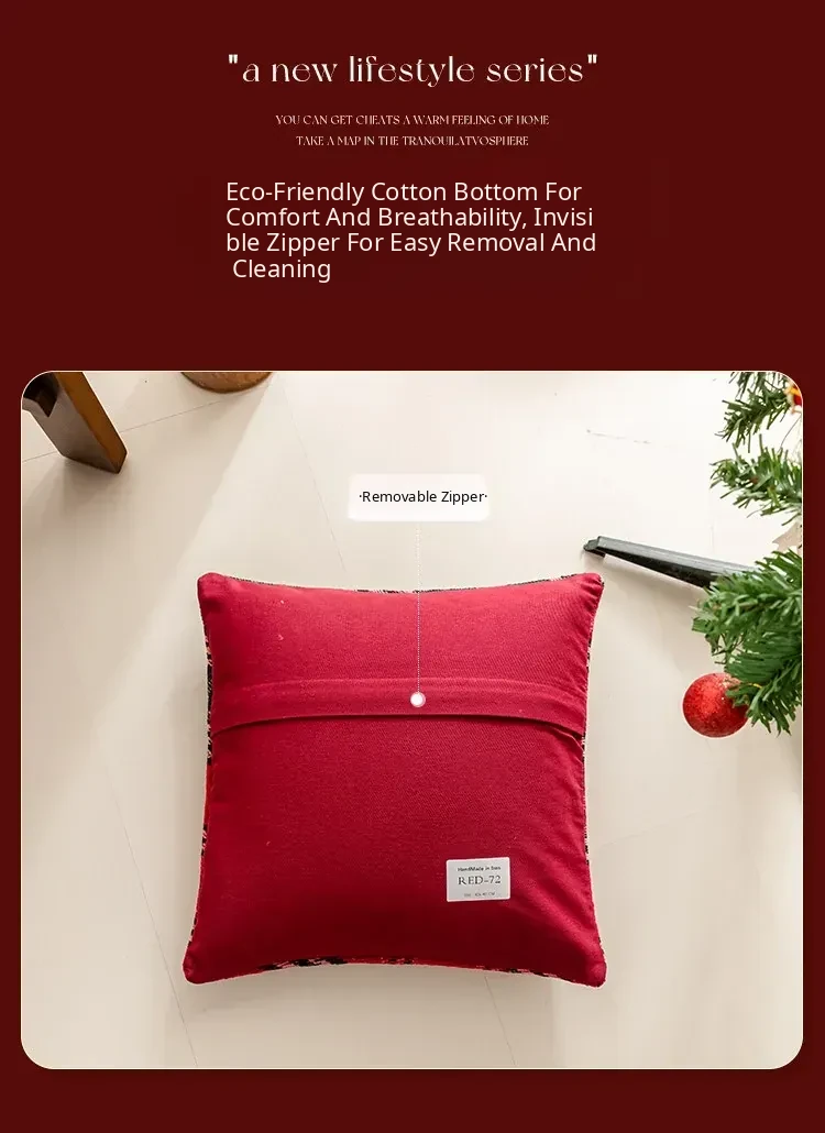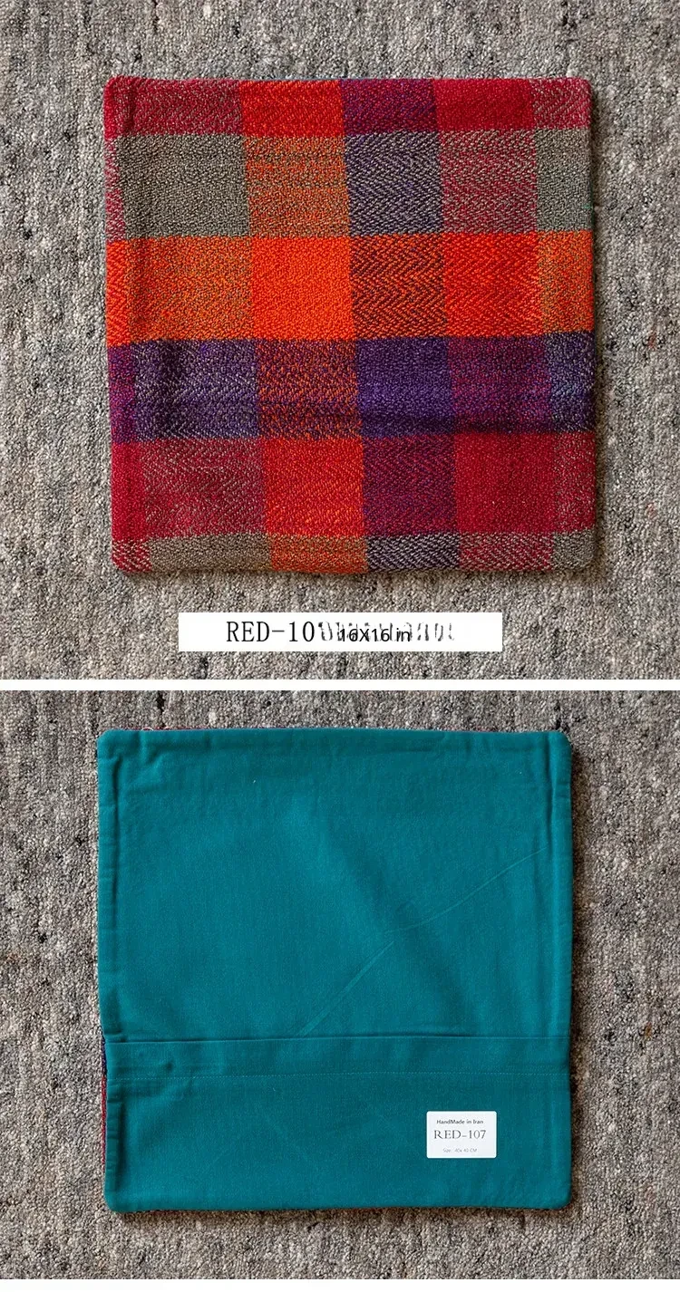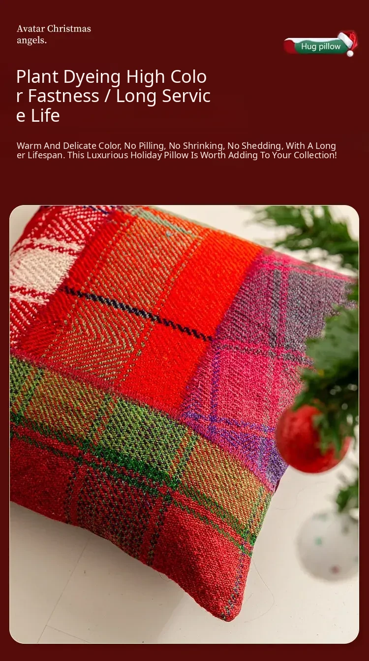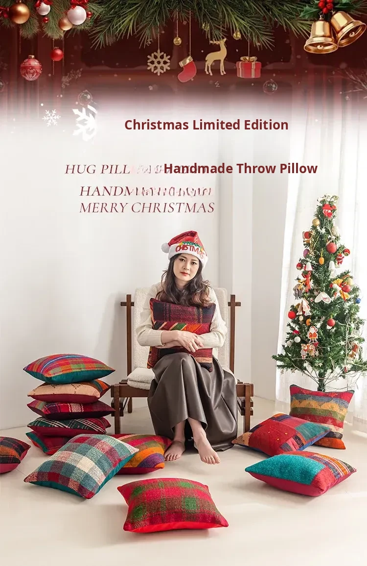 Imported Handmade Wool Sofa Cushion - Persian Scottish Red Christmas Backrest Pillow for Festive New Year Celebrations