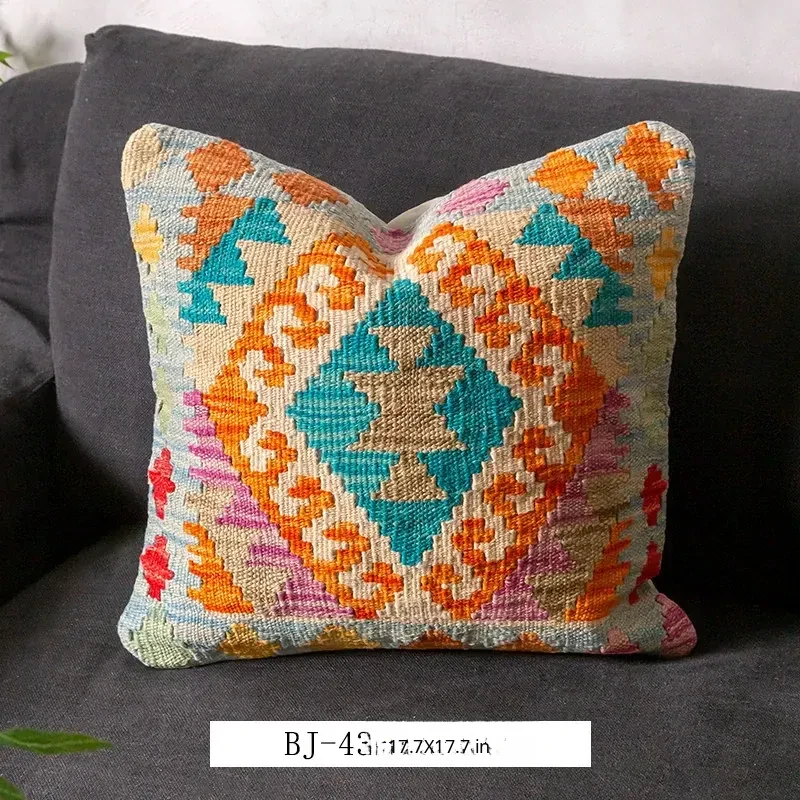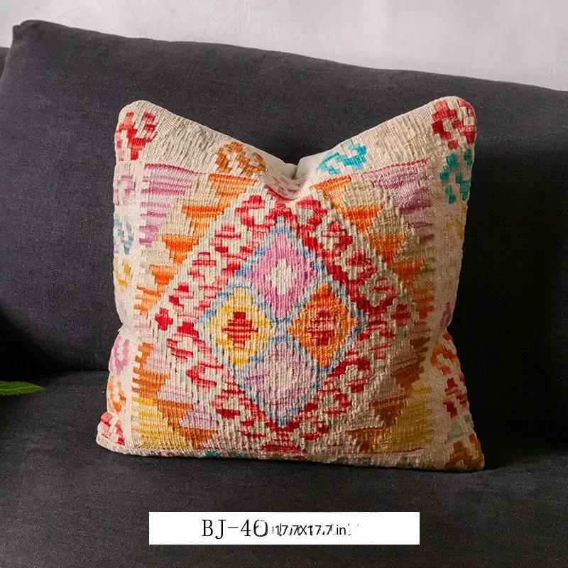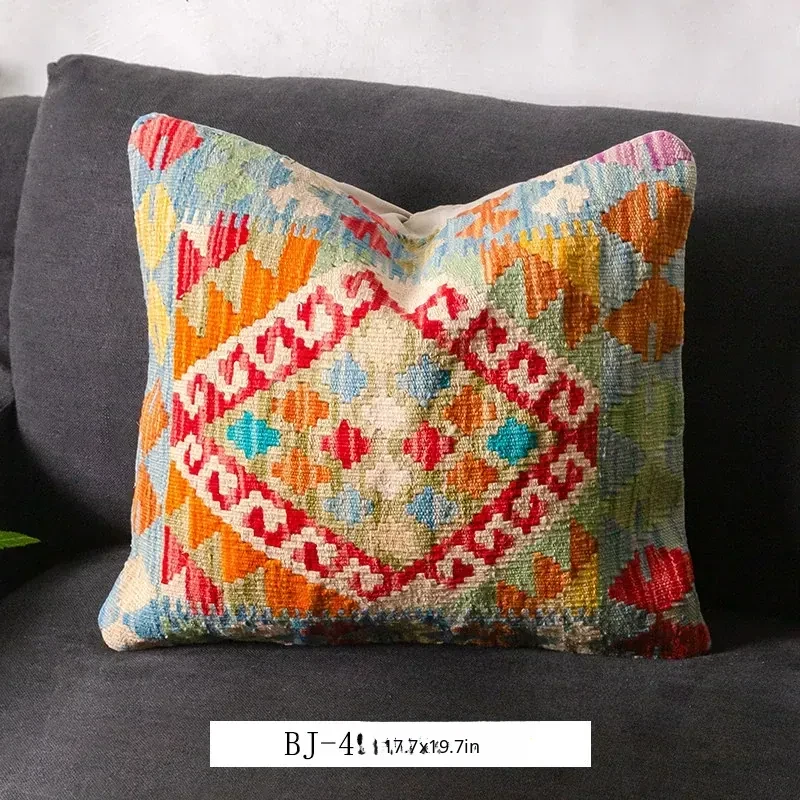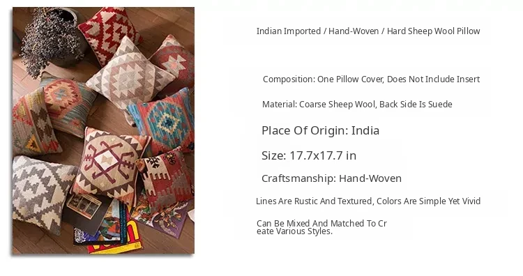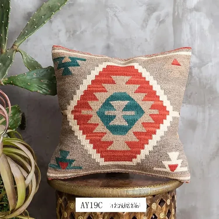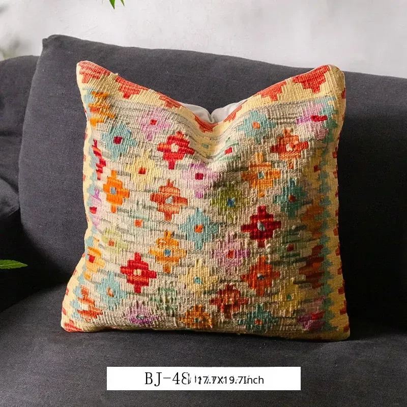 Imported Indian American Country/National Style Handwoven Kilim Hard Wool Cushion Cover/Pillow Case - Perfect for Adding a Rustic Touch to Your Home Decor!