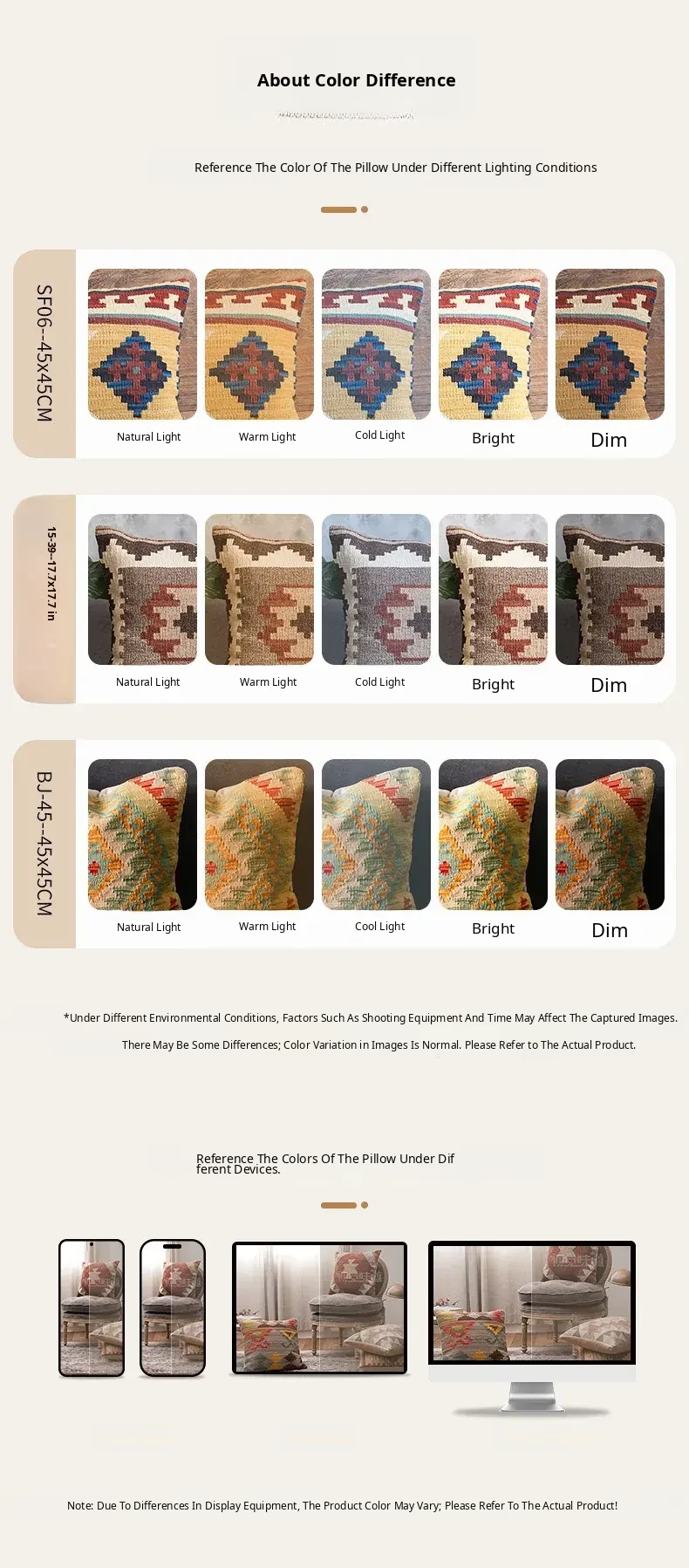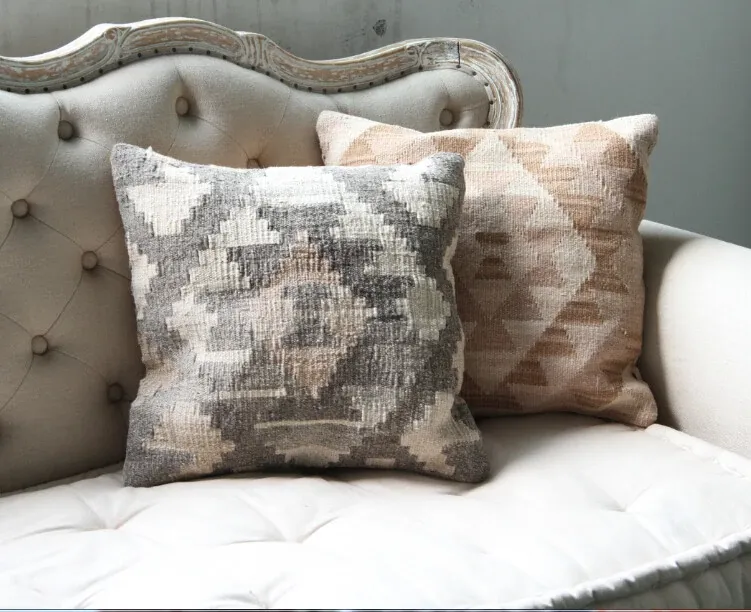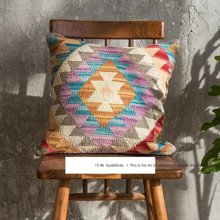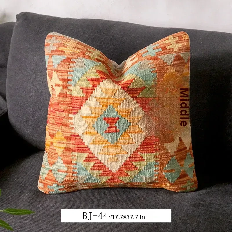 Imported Indian American Country/National Style Handwoven Kilim Hard Wool Cushion Cover/Pillow Case - Perfect for Adding a Rustic Touch to Your Home Decor!