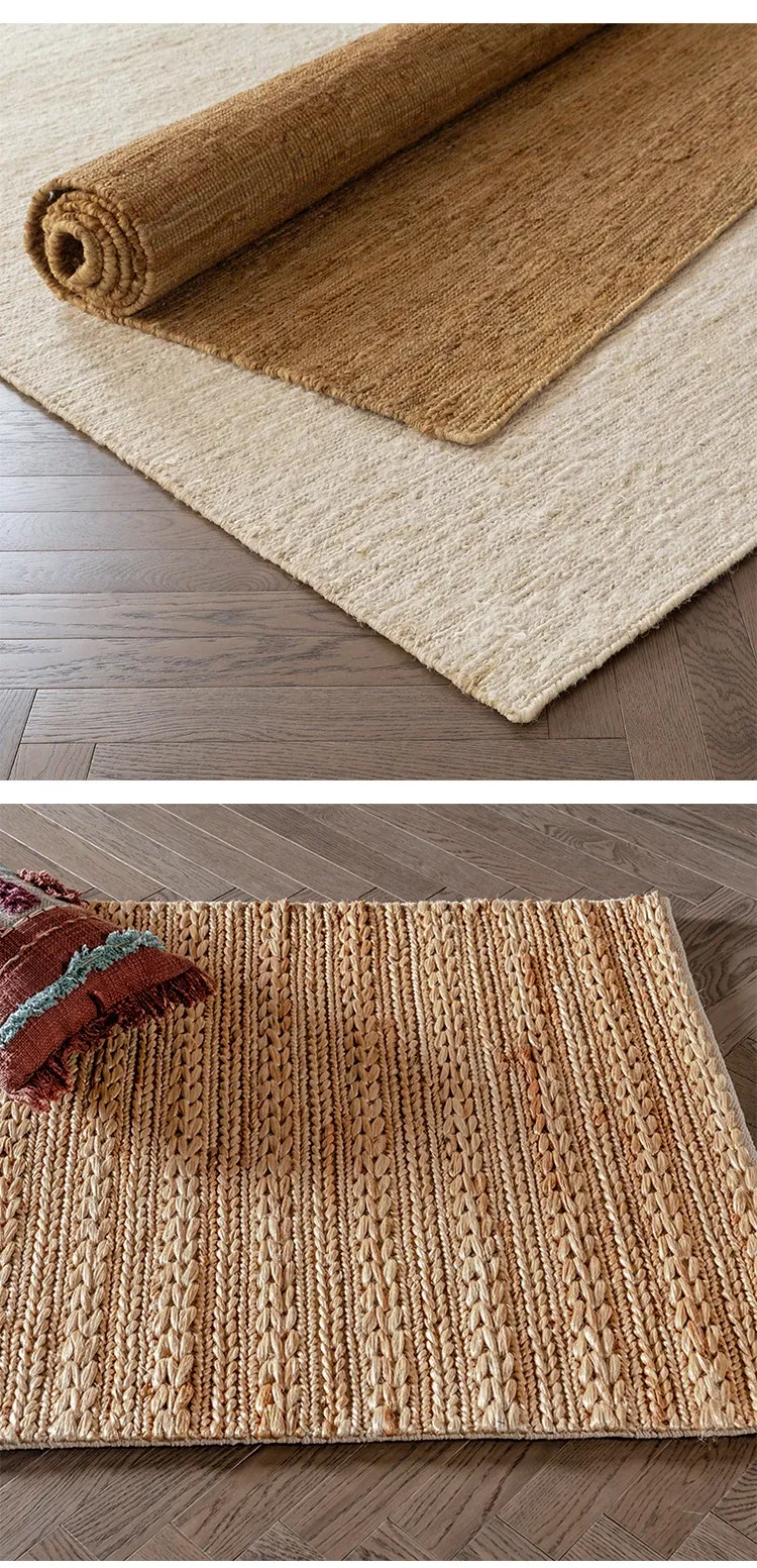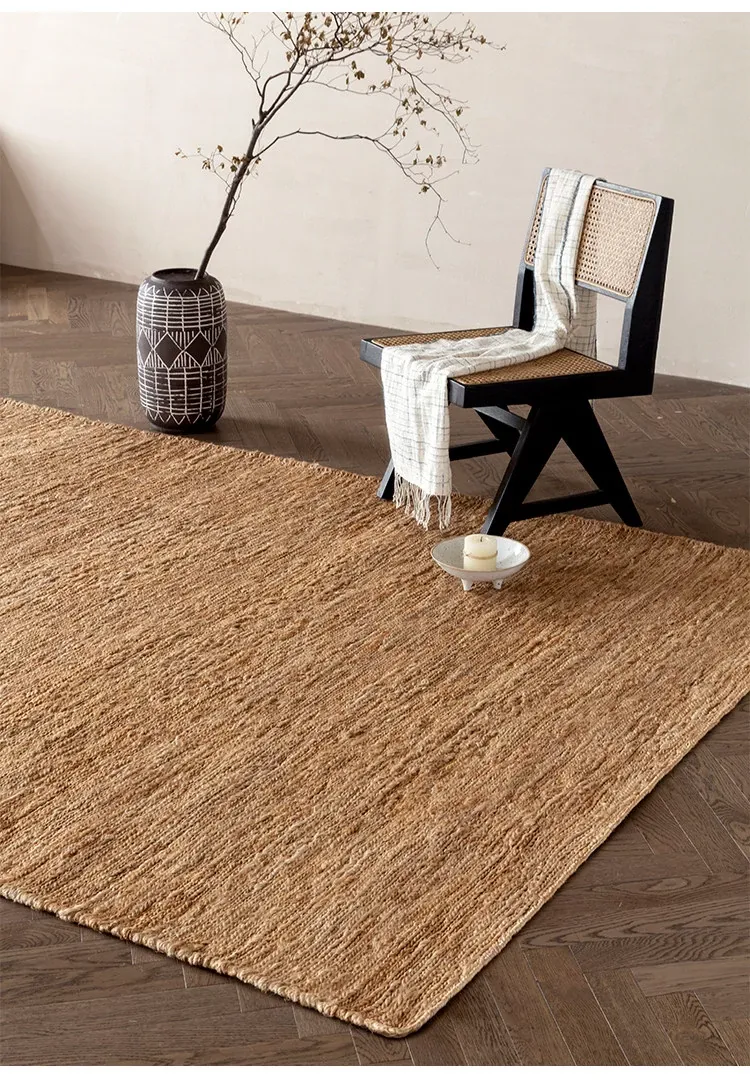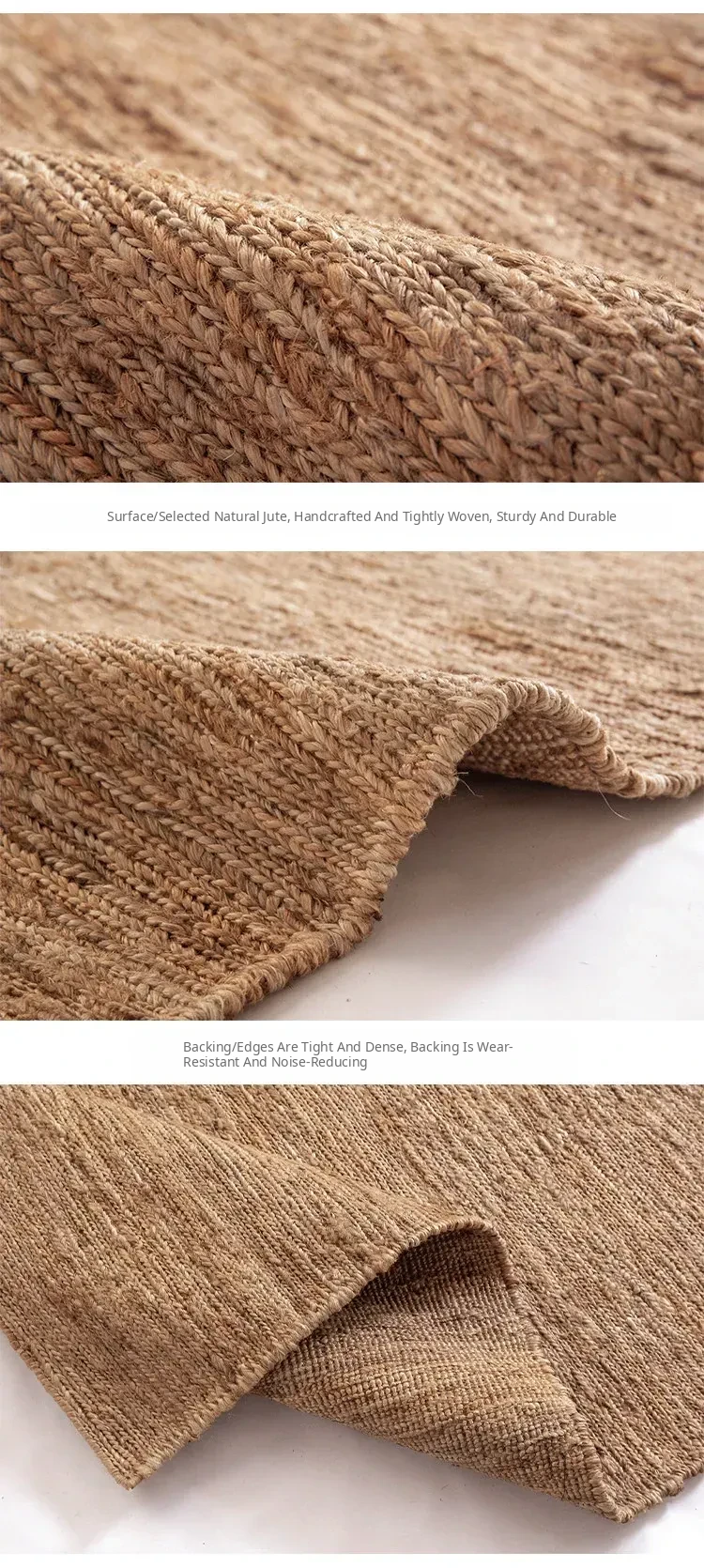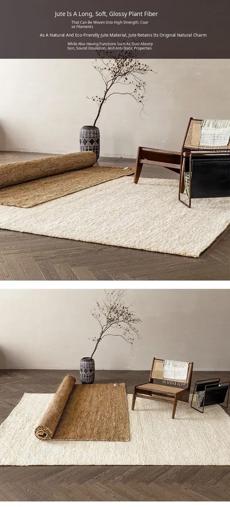 "Imported Jute Area Rug - Modern Minimalist Rustic New Chinese Style for Living Room, Perfect for Japanese Sofa and Coffee Table, Handcrafted Elegance"