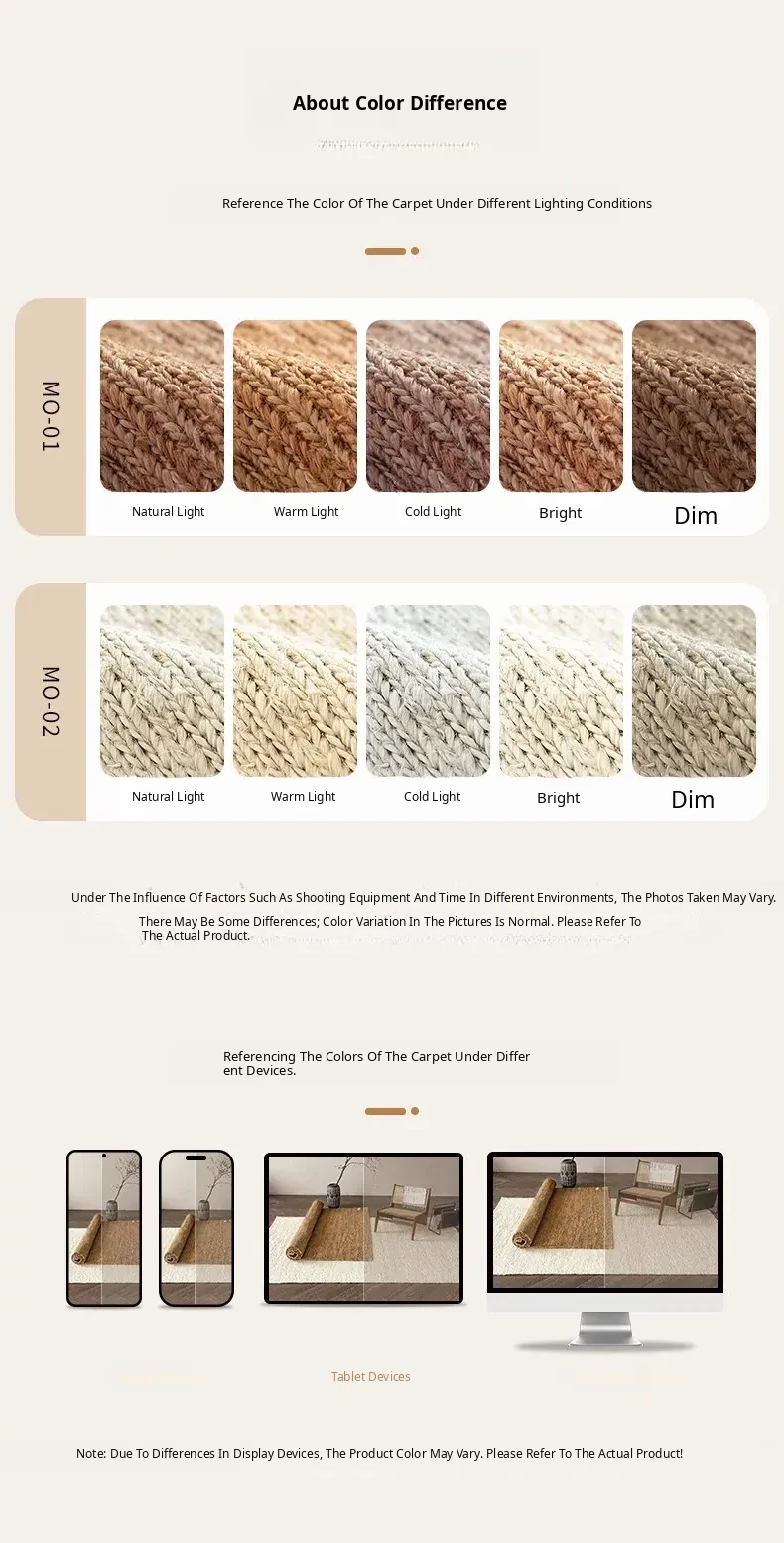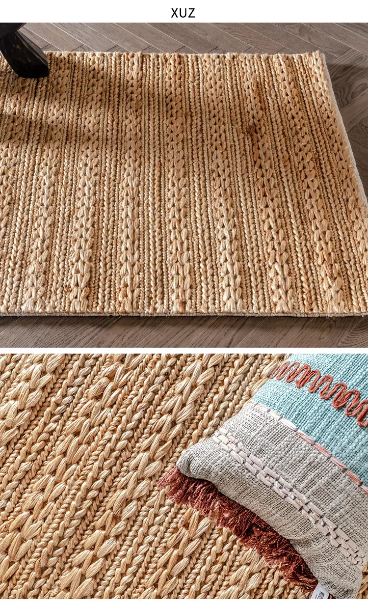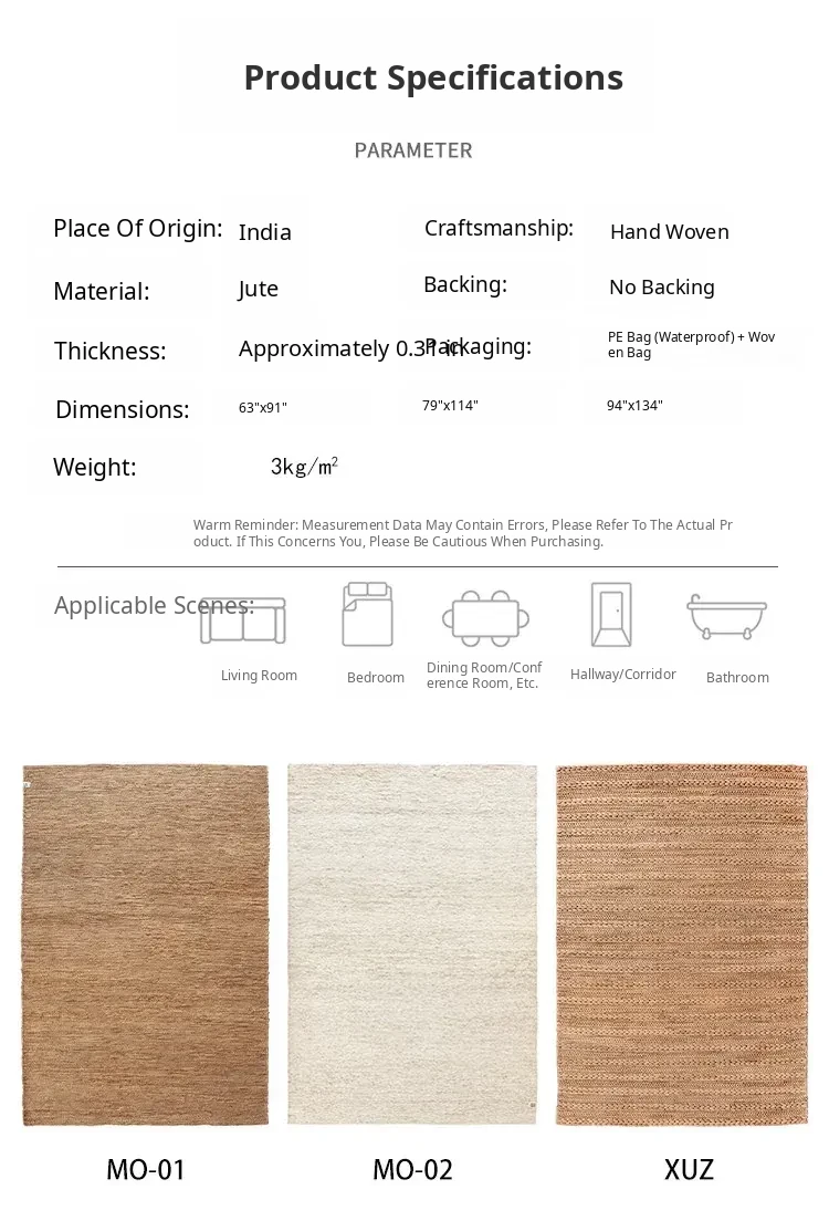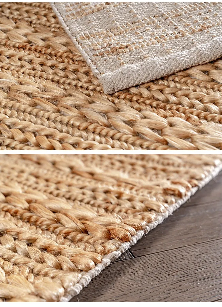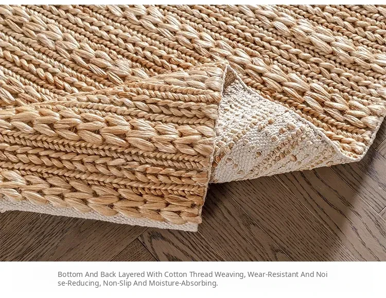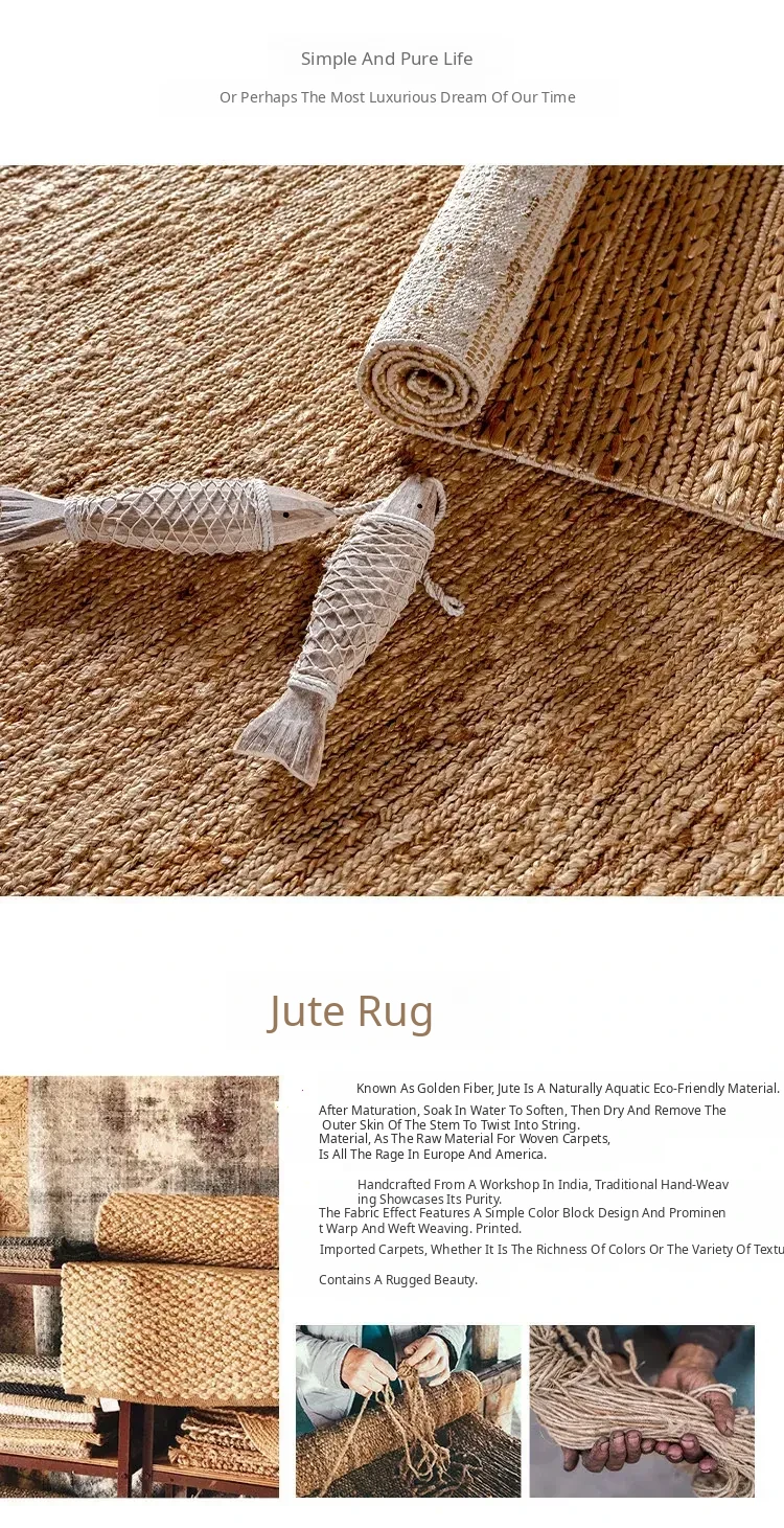 "Imported Jute Area Rug - Modern Minimalist Rustic New Chinese Style for Living Room, Perfect for Japanese Sofa and Coffee Table, Handcrafted Elegance"