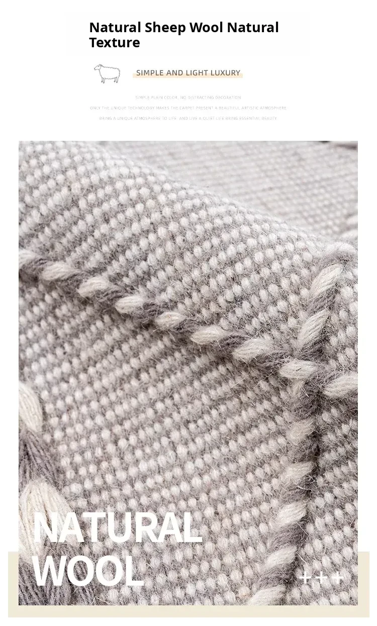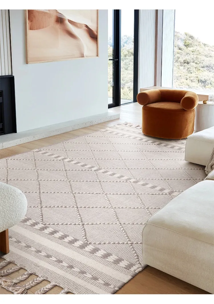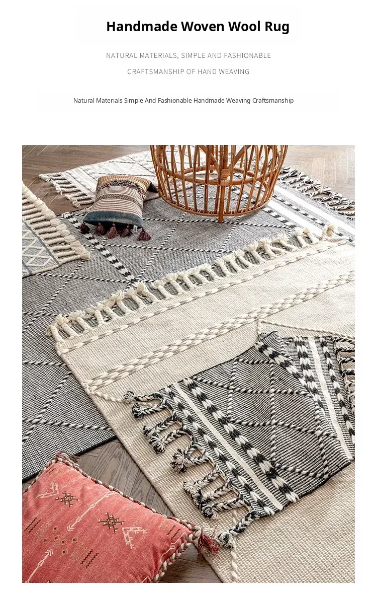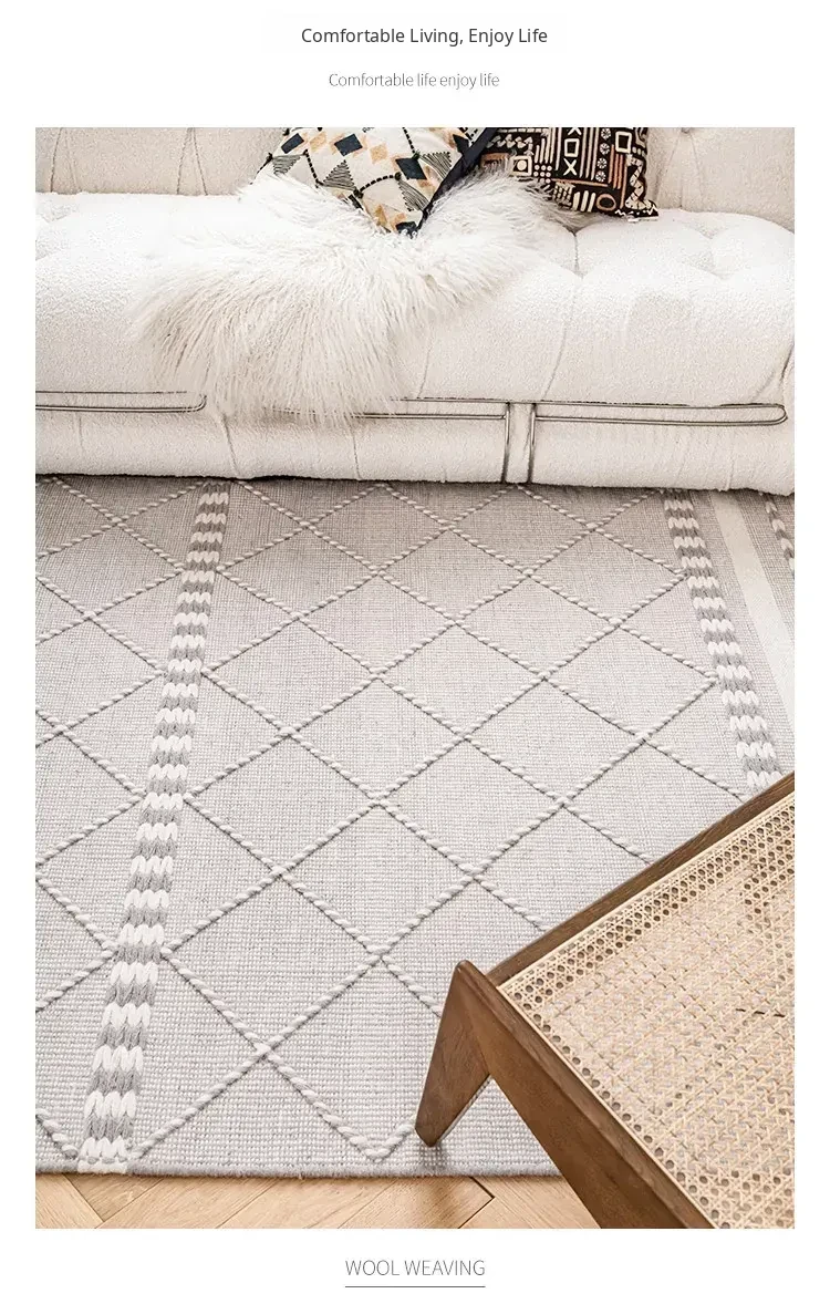 Imported New Wool Handmade Modern Minimalist Living Room Carpet - Eco-Friendly, No Glue, Bedroom Bedside INS Style Mat