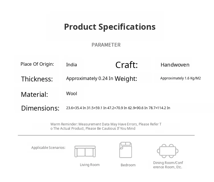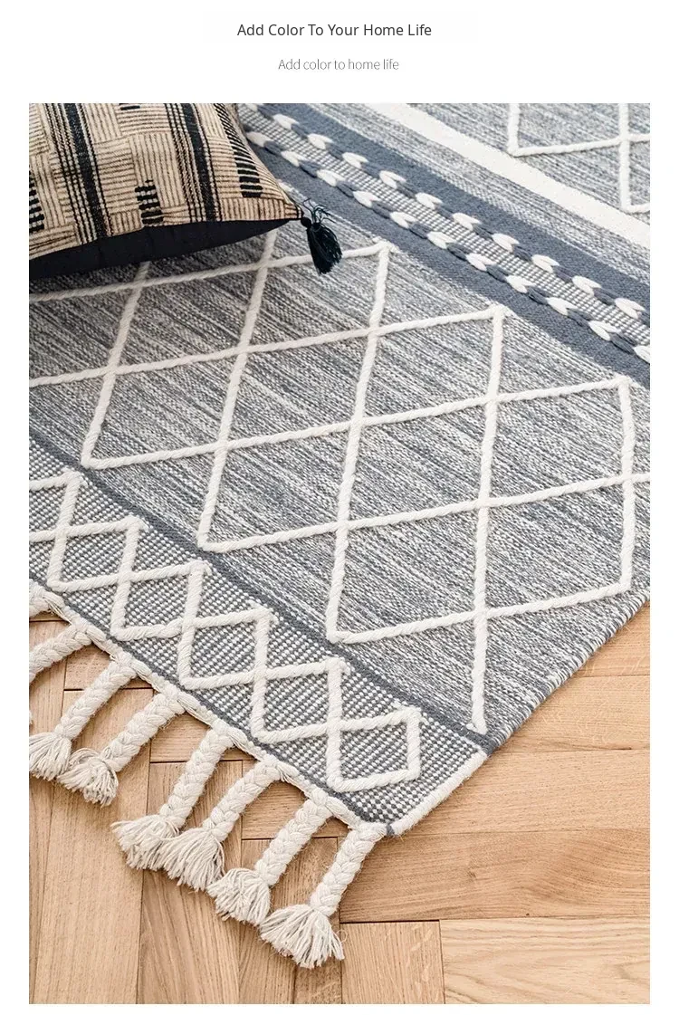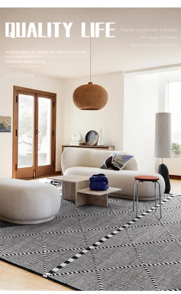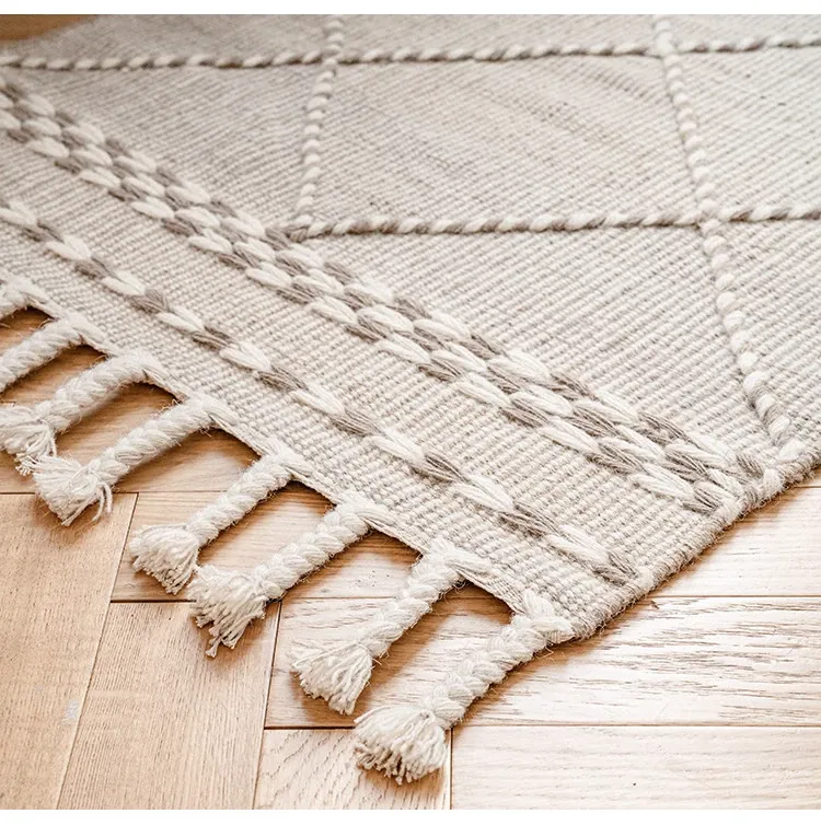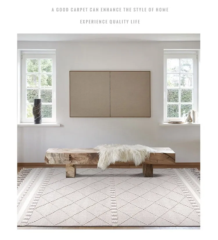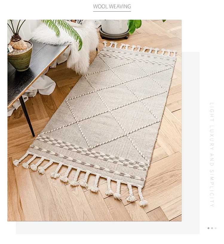 Imported New Wool Handmade Modern Minimalist Living Room Carpet - Eco-Friendly, No Glue, Bedroom Bedside INS Style Mat