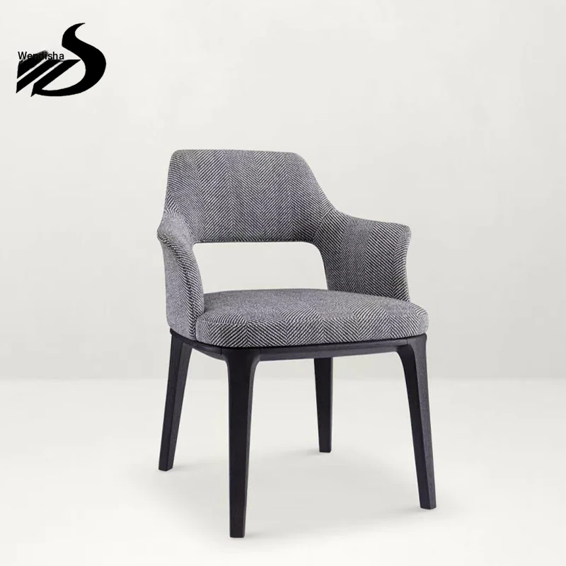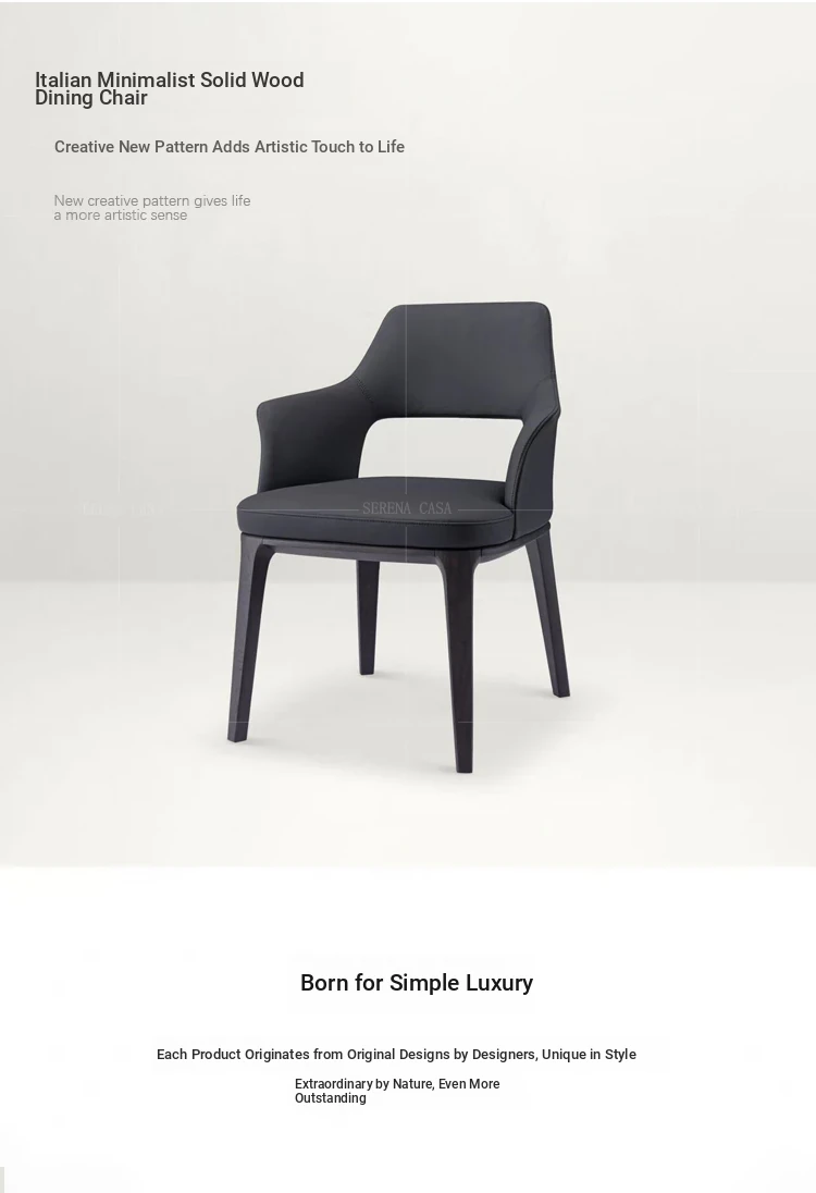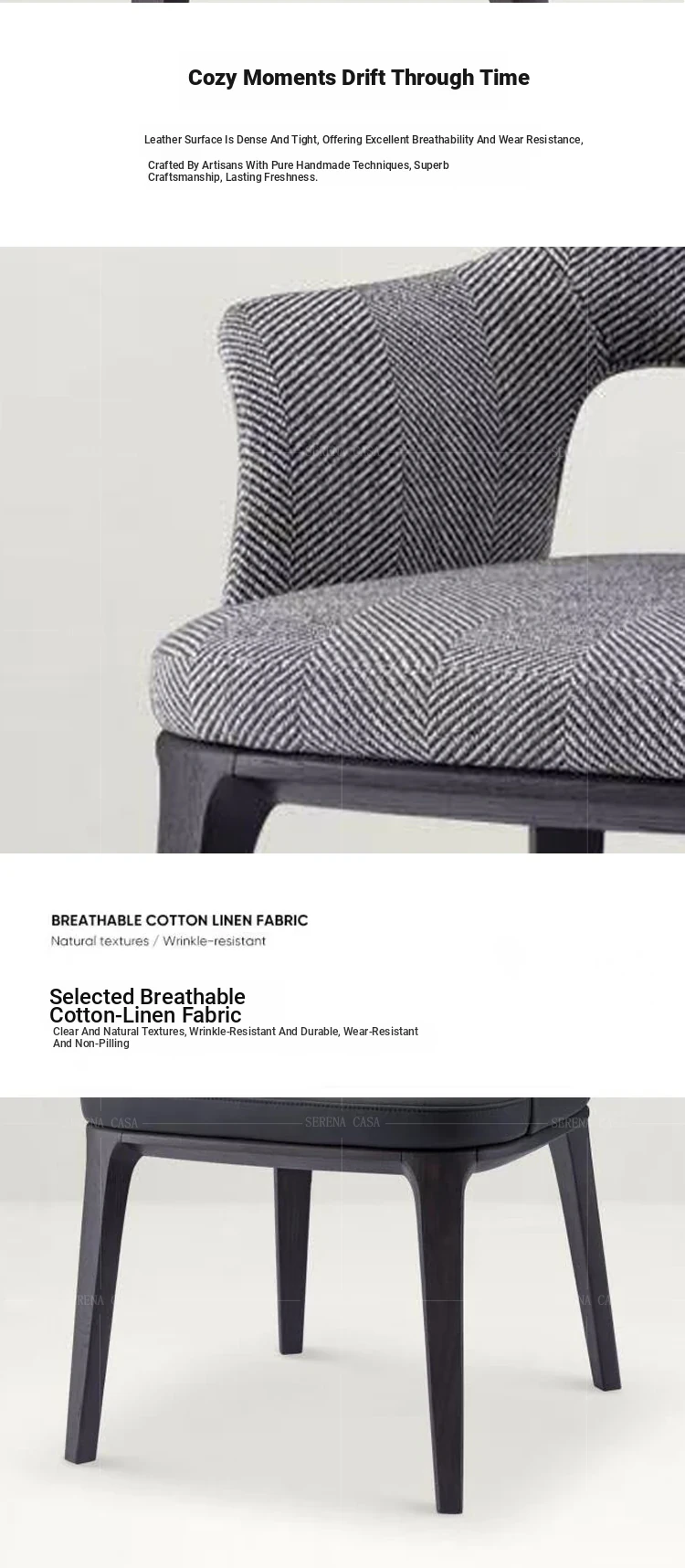 Italian Luxury Minimalist Dining Chair – Modern Solid Wood Armchair for Home, Hotels, and Meetings with Stylish Fabric Backrest – Perfect for Elegant Dining Spaces